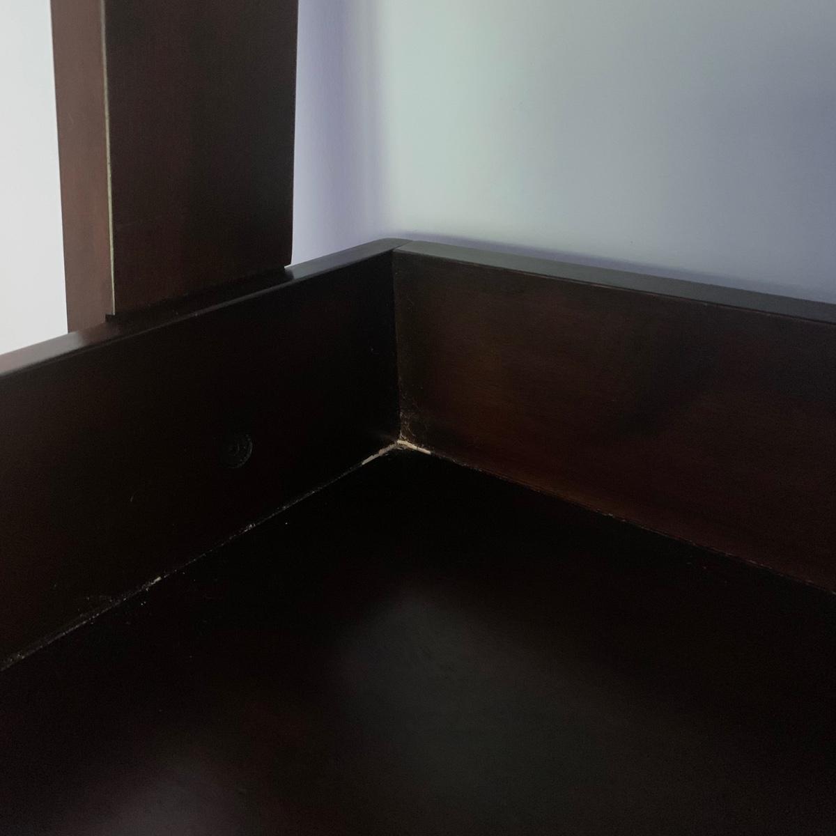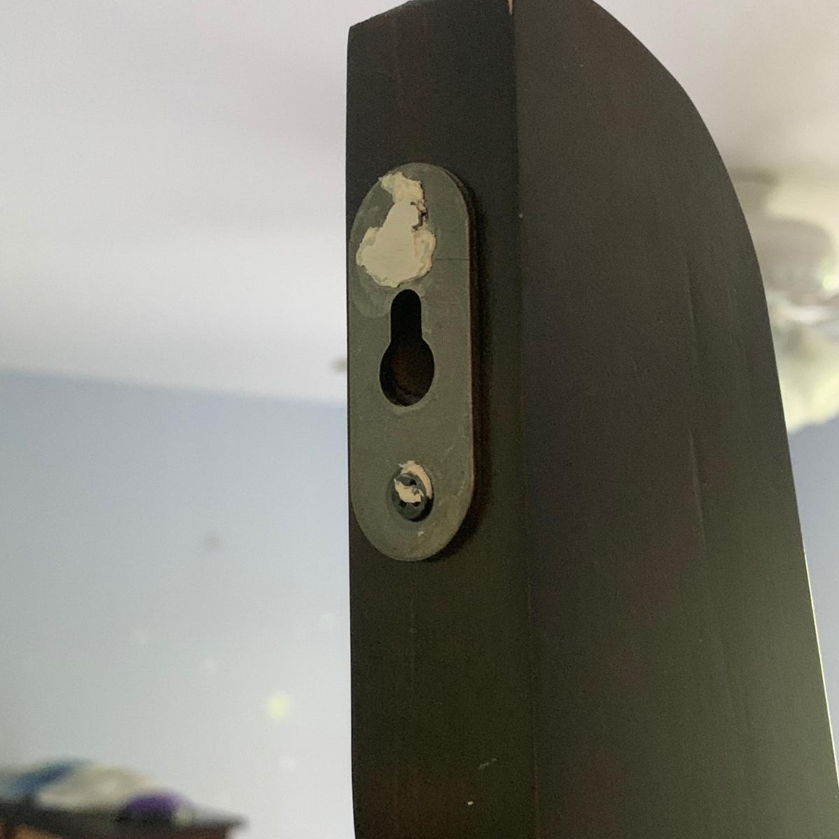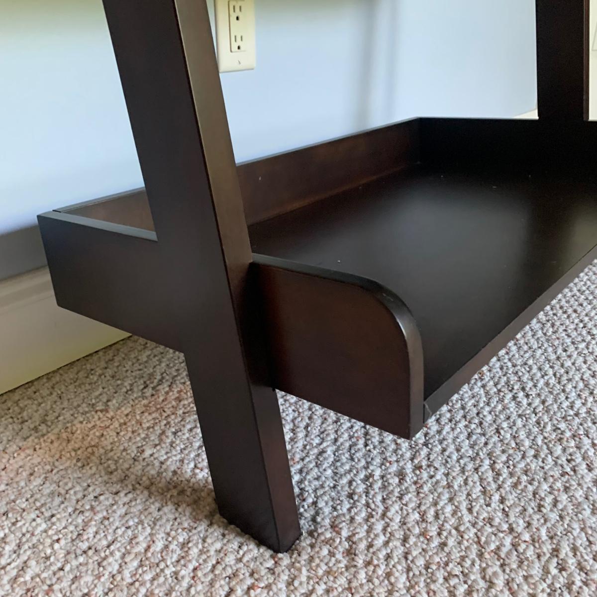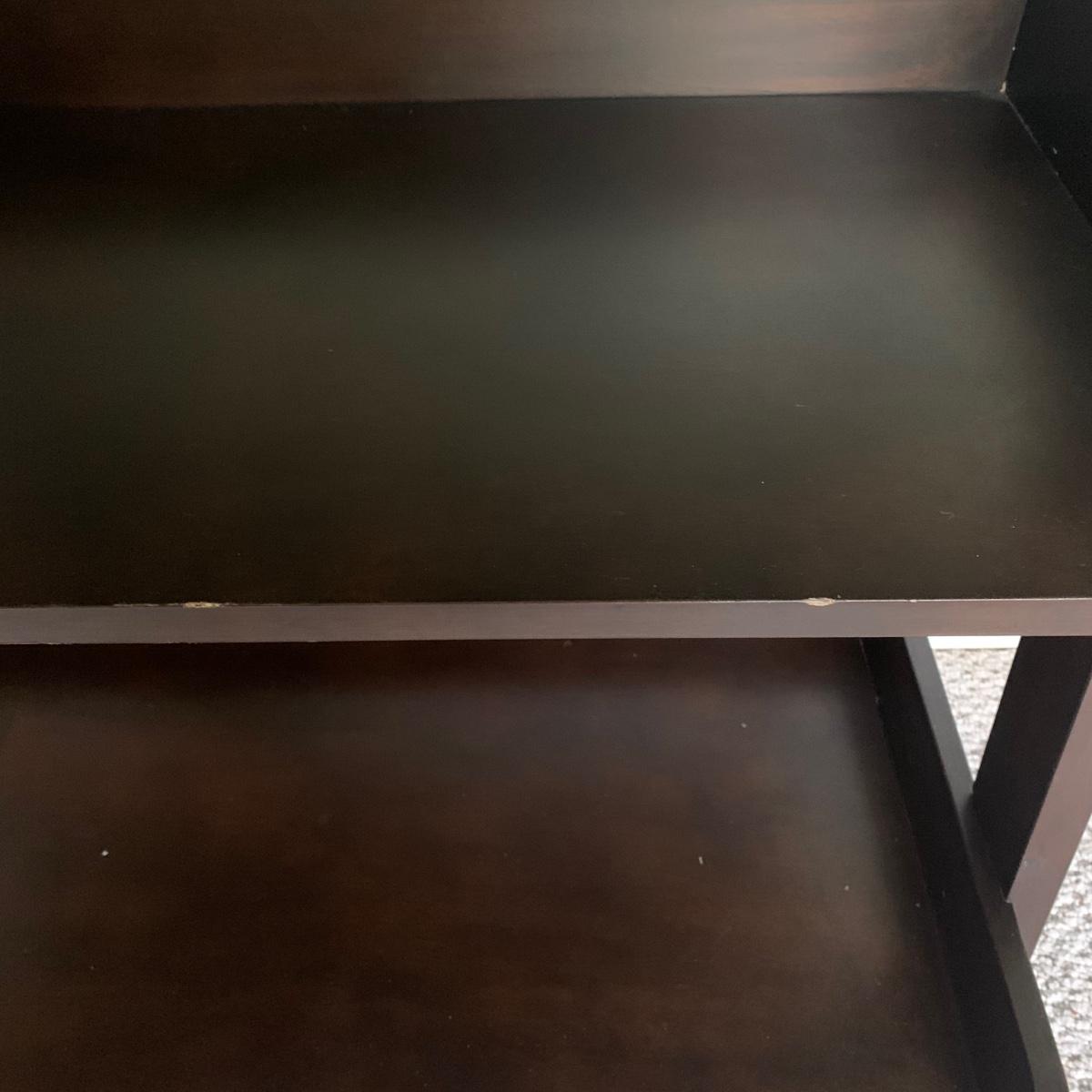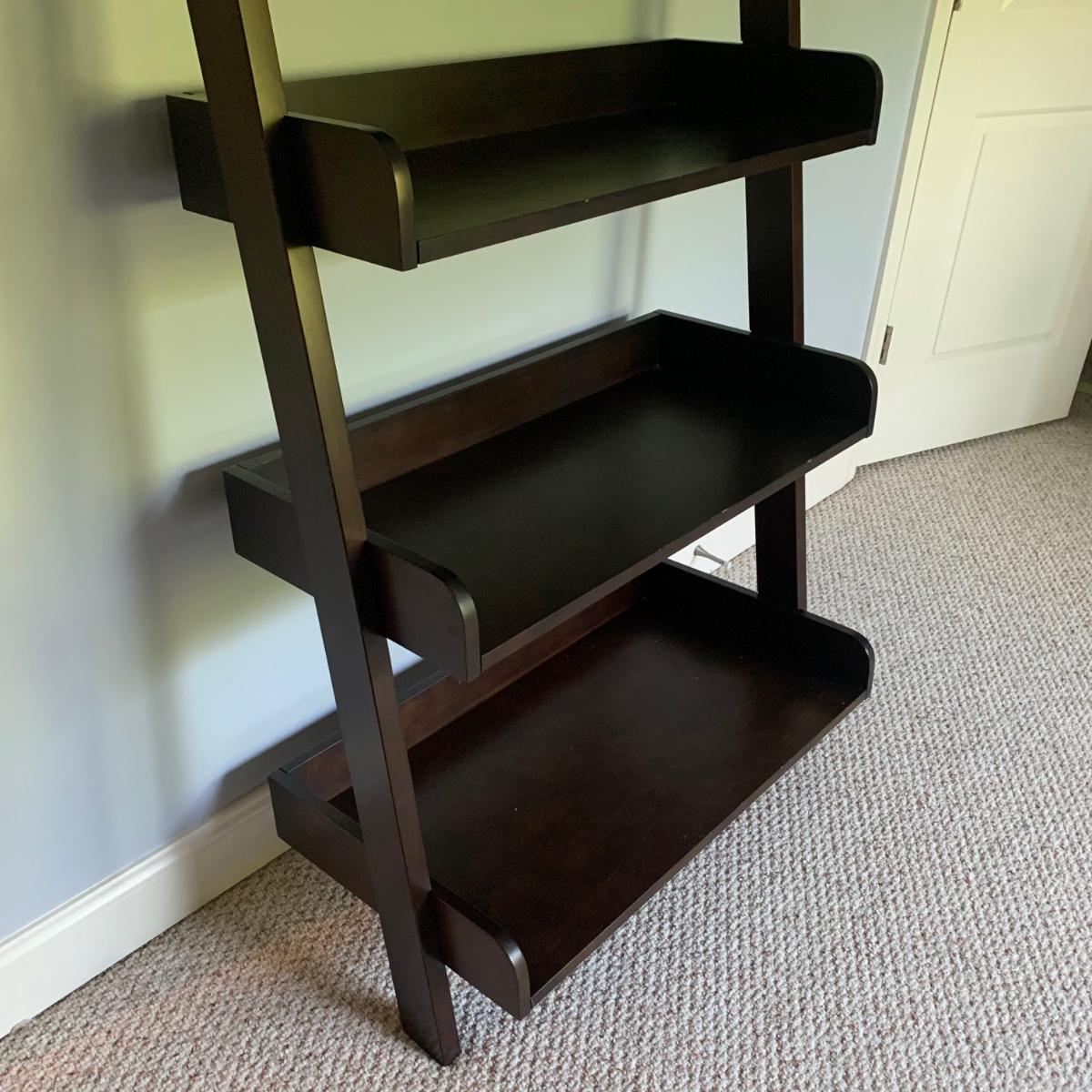 Ladder style bookshelf with five shelves. Unit is made of dark stained wood and measures approximately 33.5” x 18” x 74”H. Please see photos for more details. Please note that a few shelves could use tightening. Local pickup only. Winning bidder must bring assistance to help move and load this item due to its weight and/or size. Shelf will need to be moved down a flight of stairs and throughout the home to the exit.