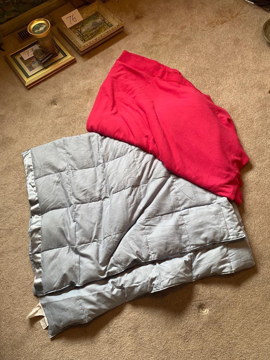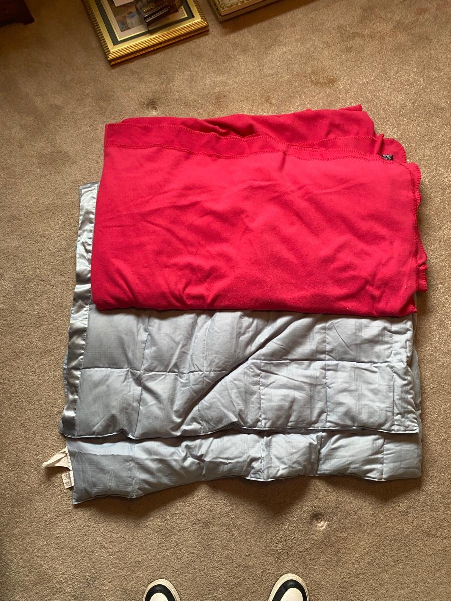 LARGE SOFT PINK BLANKET AND BLUE COMFORTER