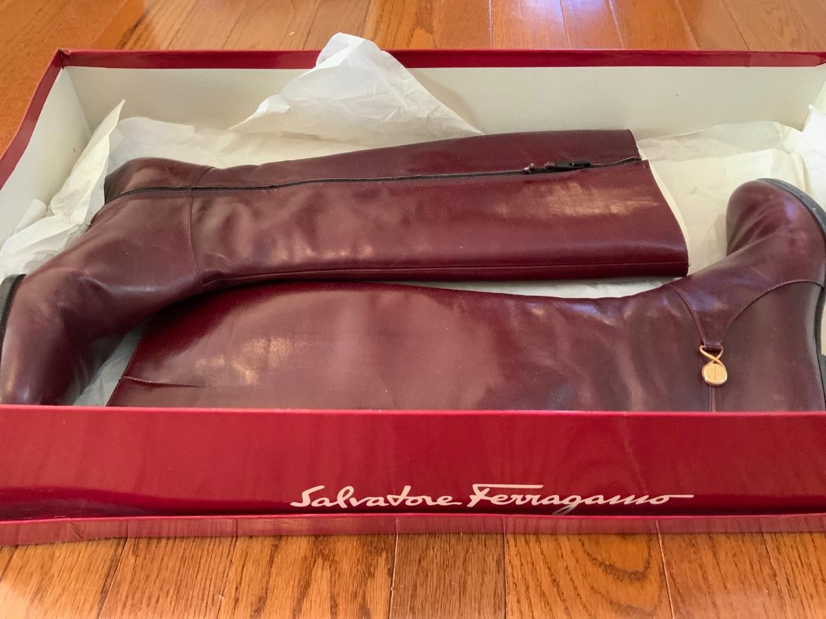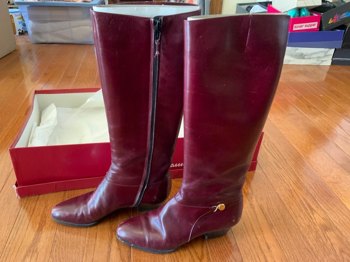 Ladies 4 1/2 B Vintage Salvatore Ferragamo Red Italian Tall Boot. Does not show much wear. Zippers work. With original box and receipt. Originally retailed for $375. Well taken care of