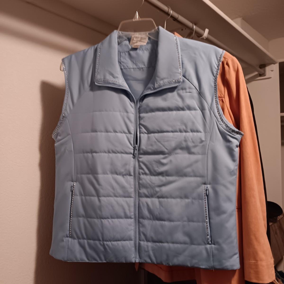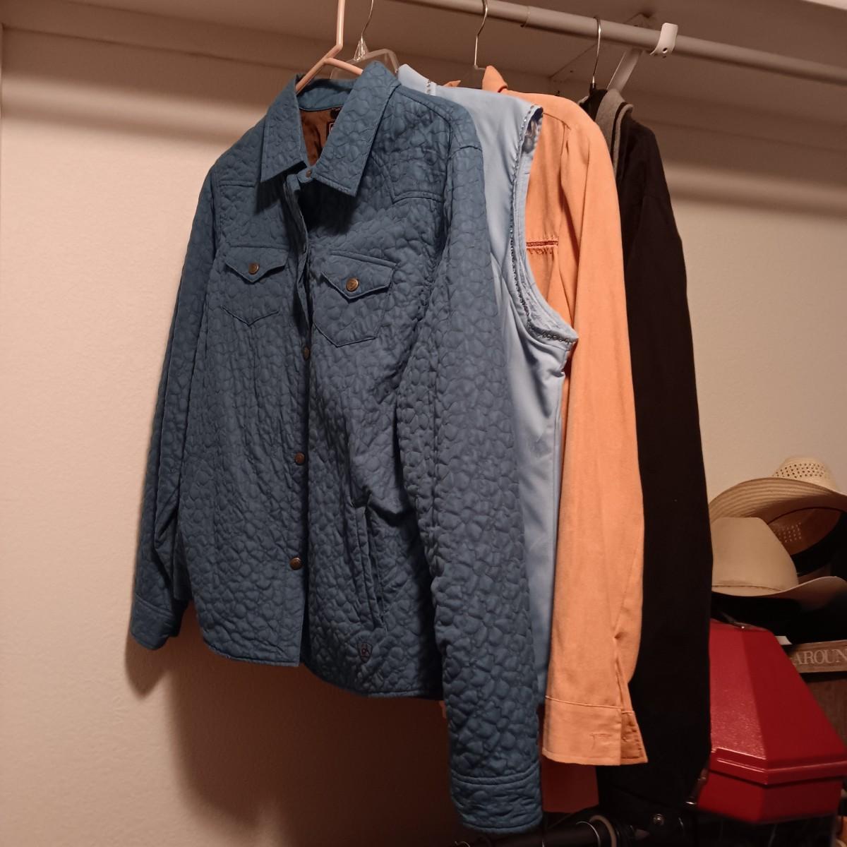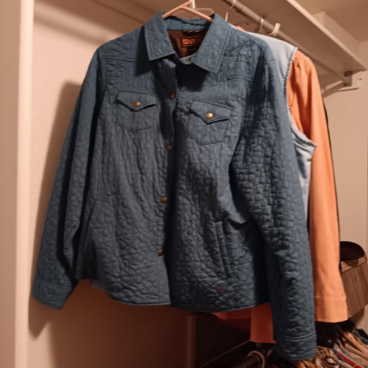 LADIES ARIAT JACKET (L), SIMPLY HOT VEST (L) PEACH COLORED JACKET (12) AND A LIGHT JACKET (L)