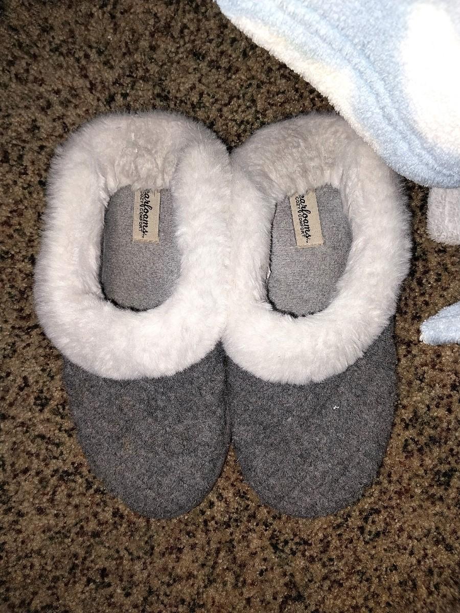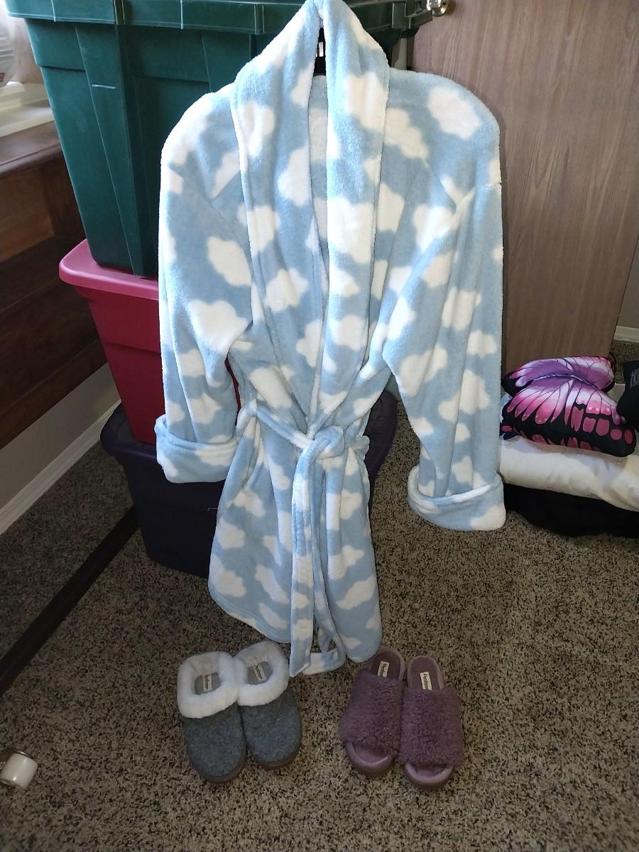 LADIES BATHROBE AND 2 PAIRS OF SLIPPERS