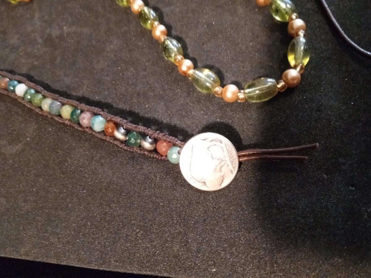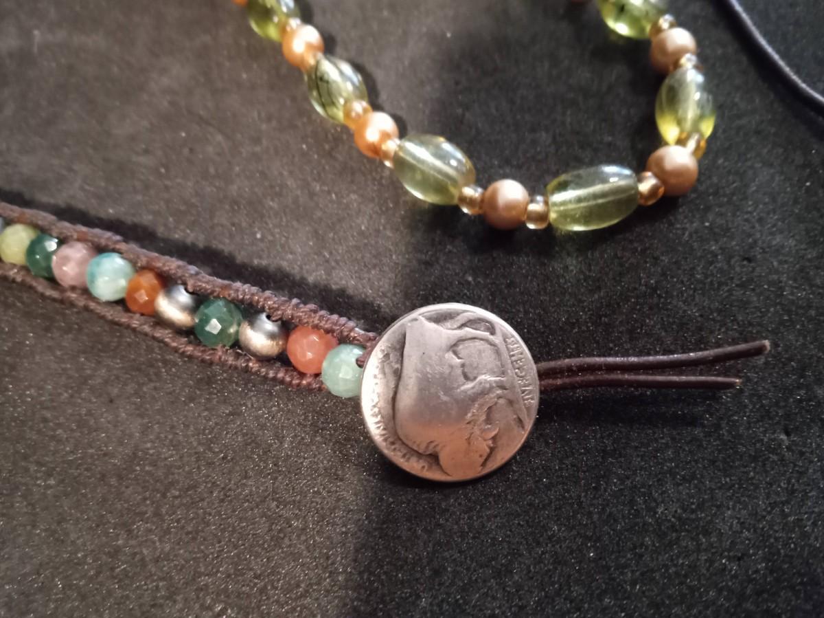 GLASS BEADED BRACELET WITH A BUFFALO HEAD NICKLE CLASP