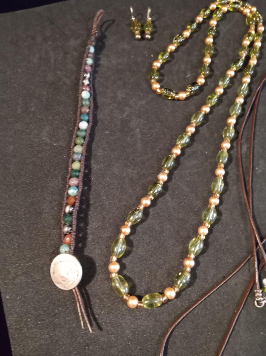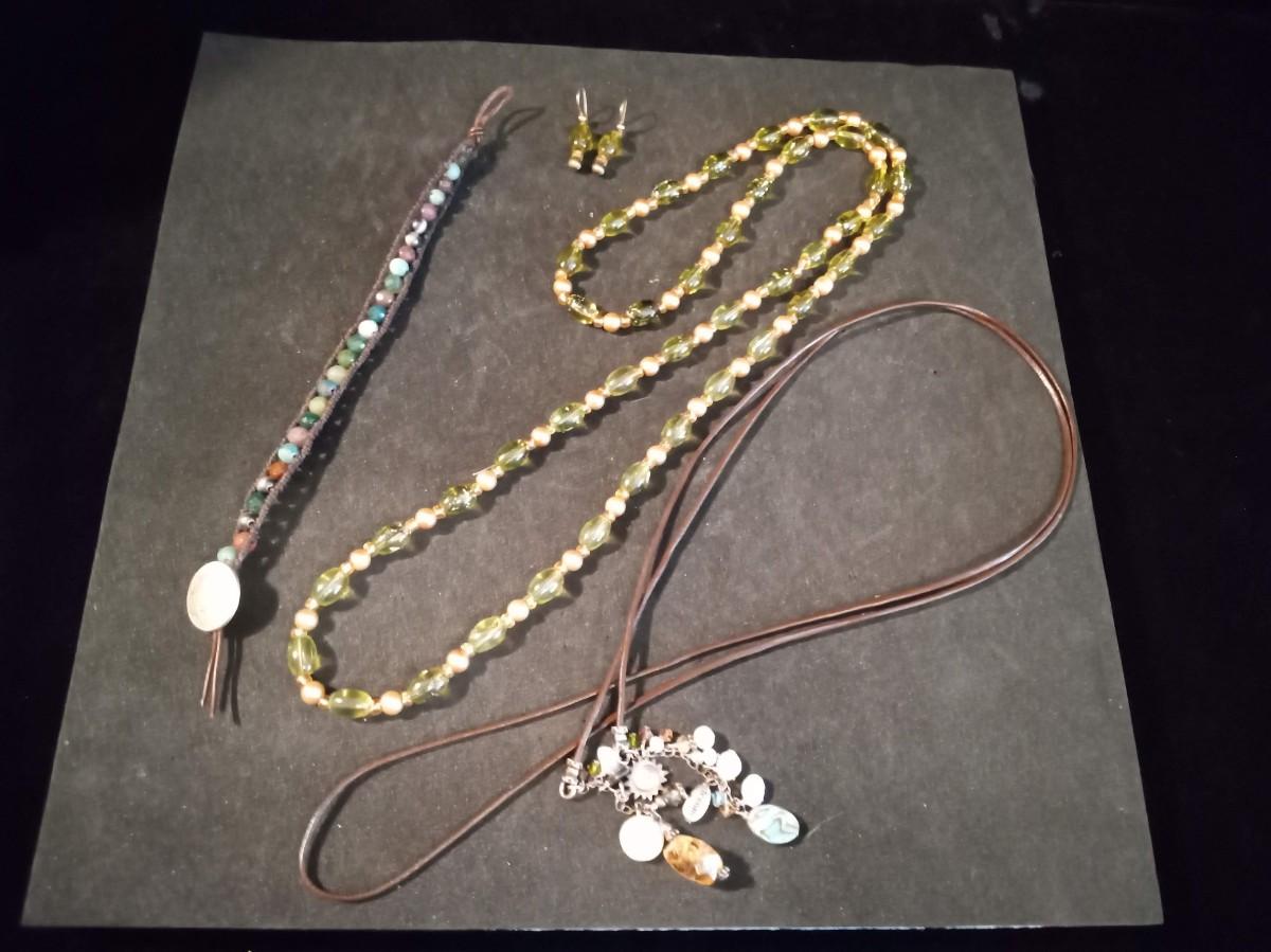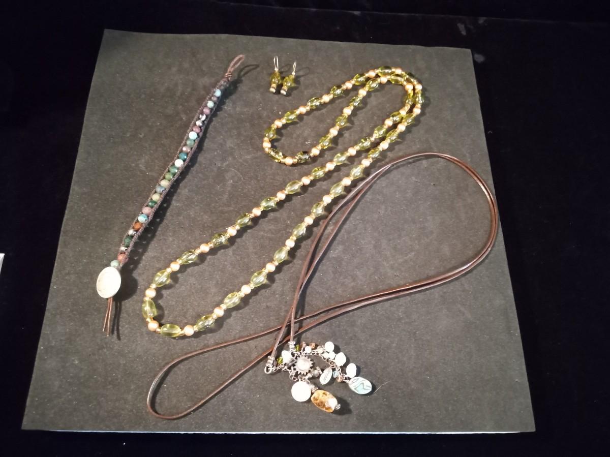 LONG CORD WITH CHARMS, BEADS AND STONES
