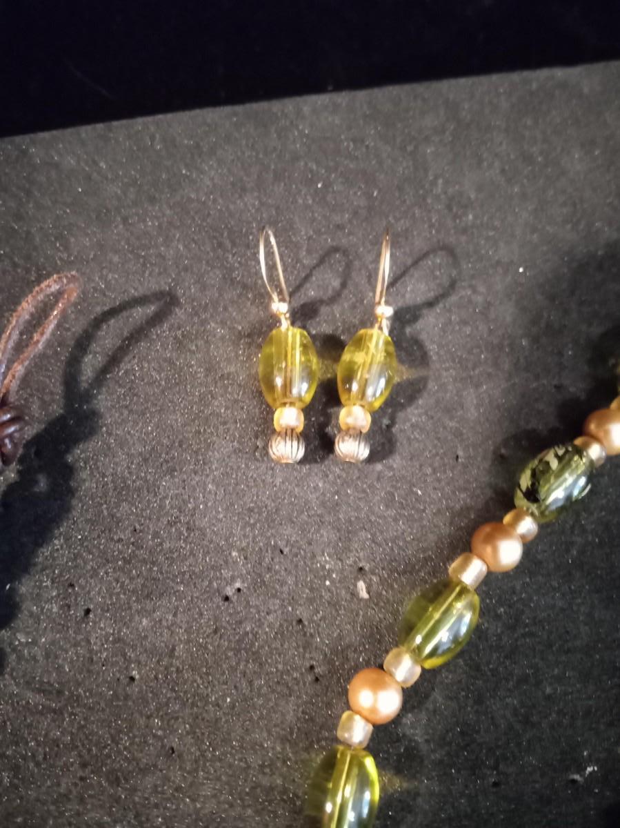 LIGHT GREEN LONG BEADED NECKLACE WITH MATCHING EARRINGS