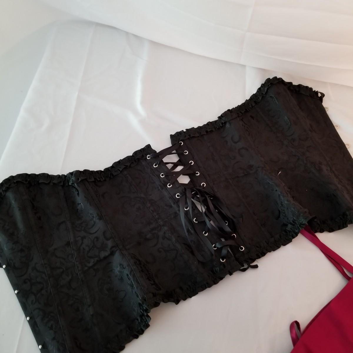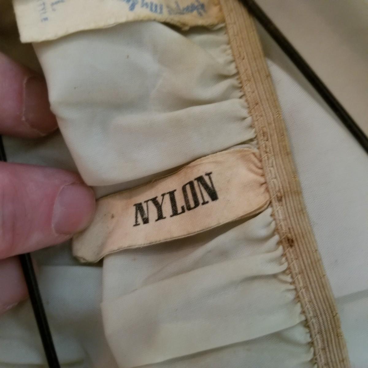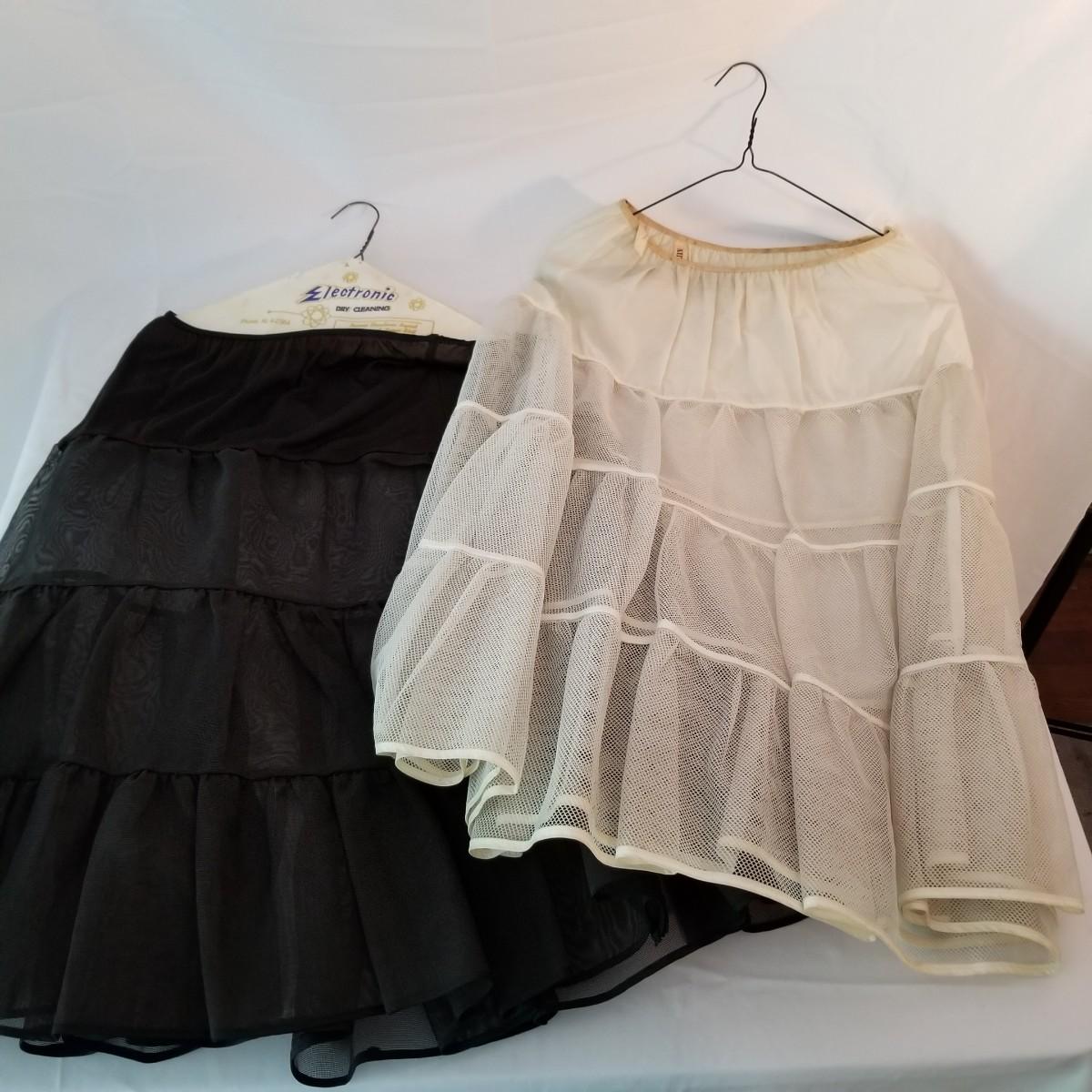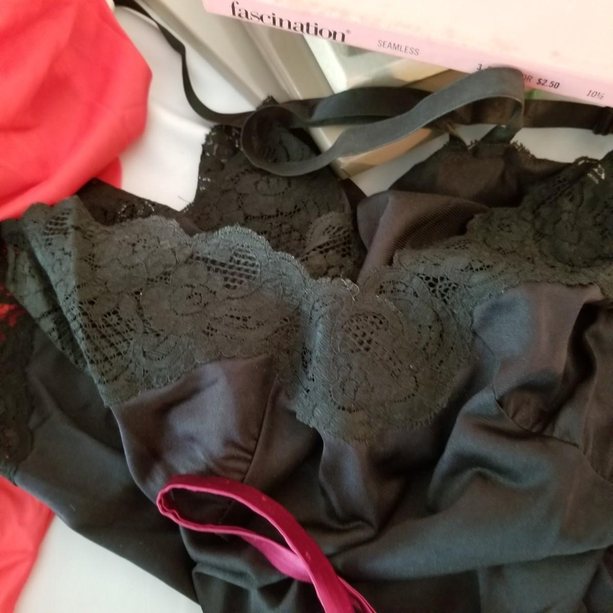 A large collection of ladies undergarments sz large. Pants, full and half slips, pantalettes in several colors, hosiery, etc. Two older basque style support garments/corsets. Also several pair of new Hanes hosiery. Over forty-five pieces in all. See photos for detail. Shipping available.