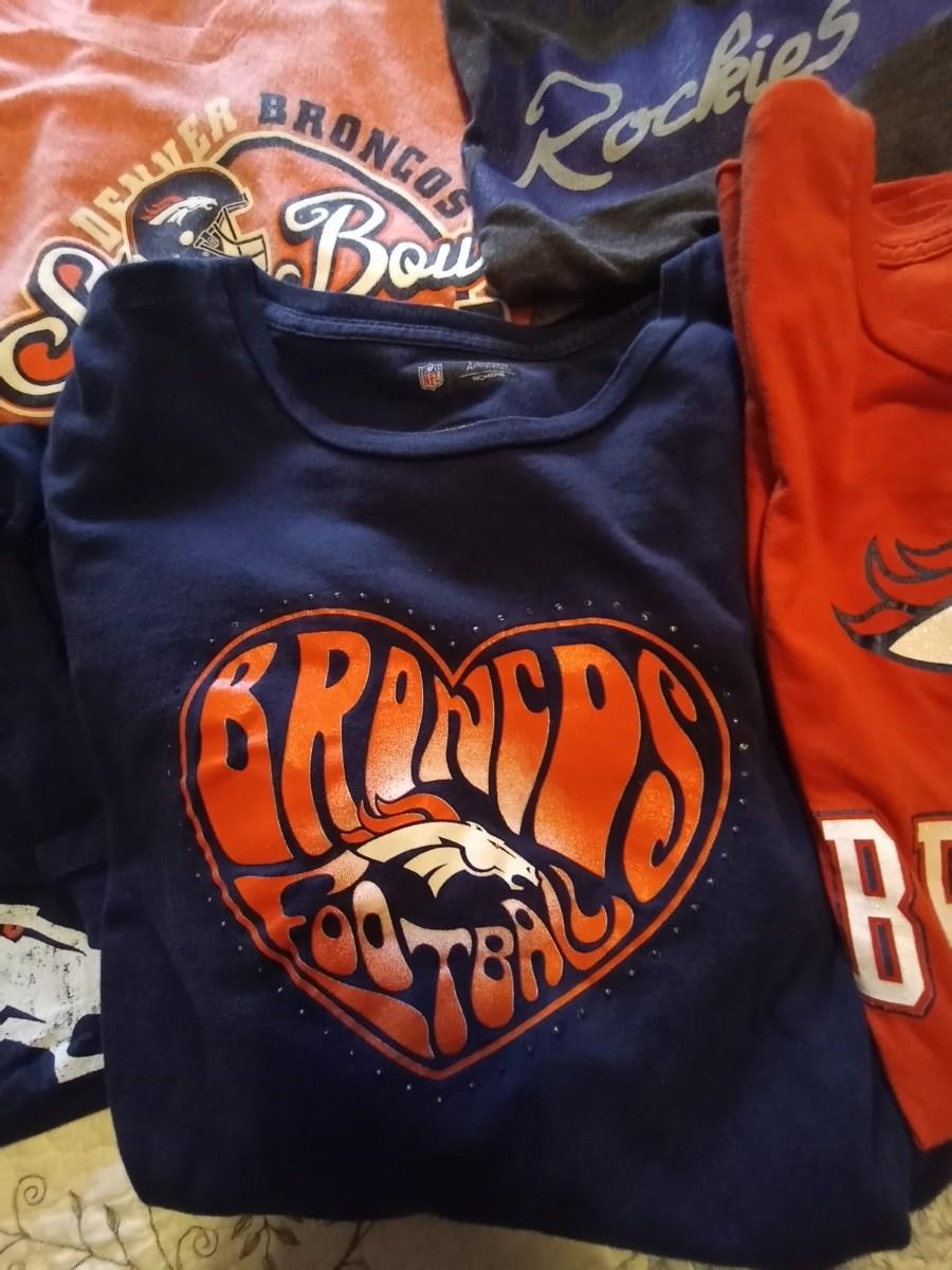LADIES BRONCO AND ROCKIES SHIRTS M/L SIZES