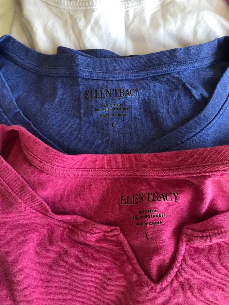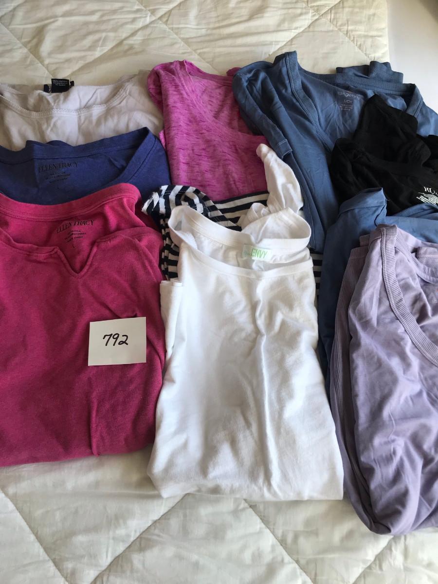 On clothing: New, some with tags! Please see photos for quantity, colors, size, and condition. Please, also most items are Large or XL in women's clothing.
