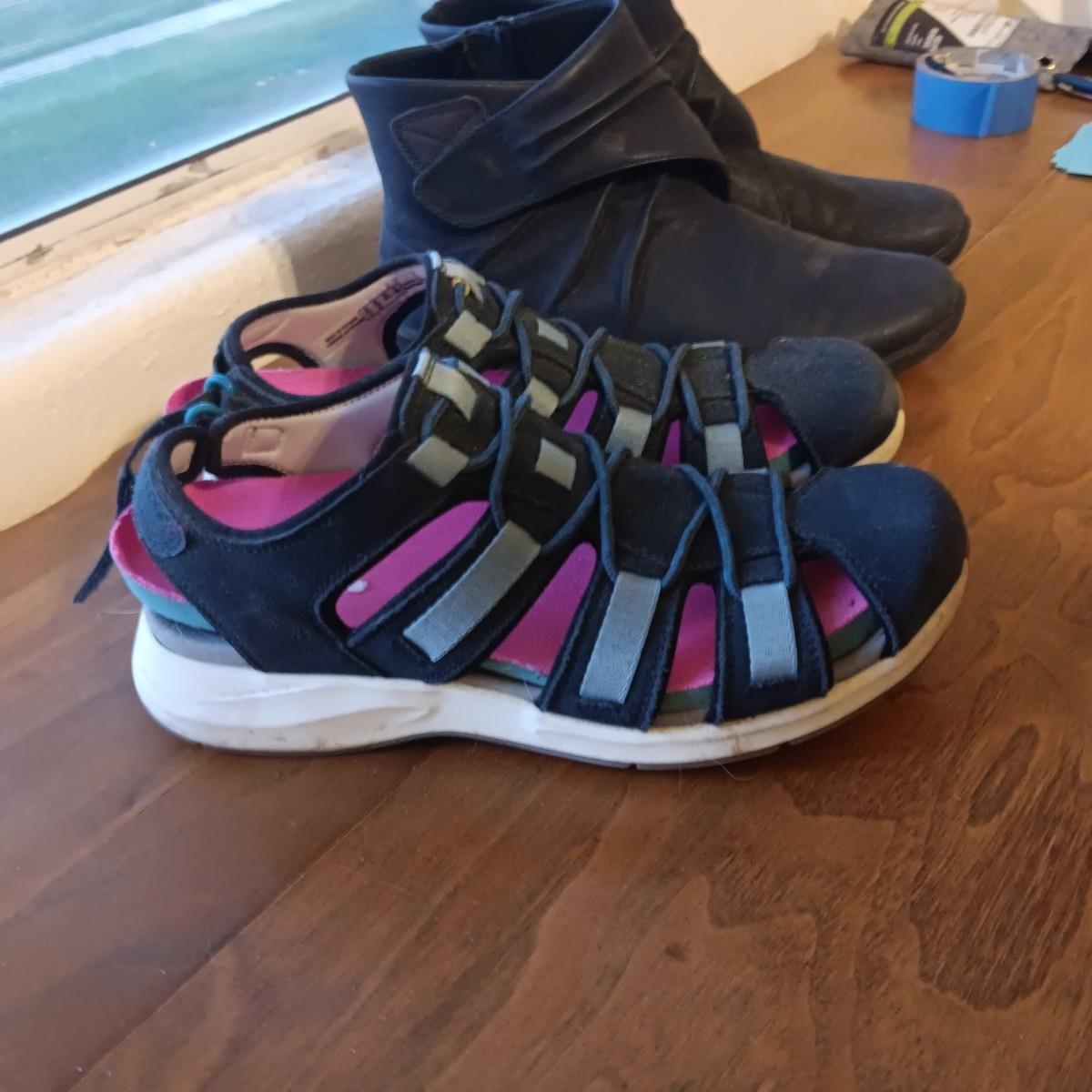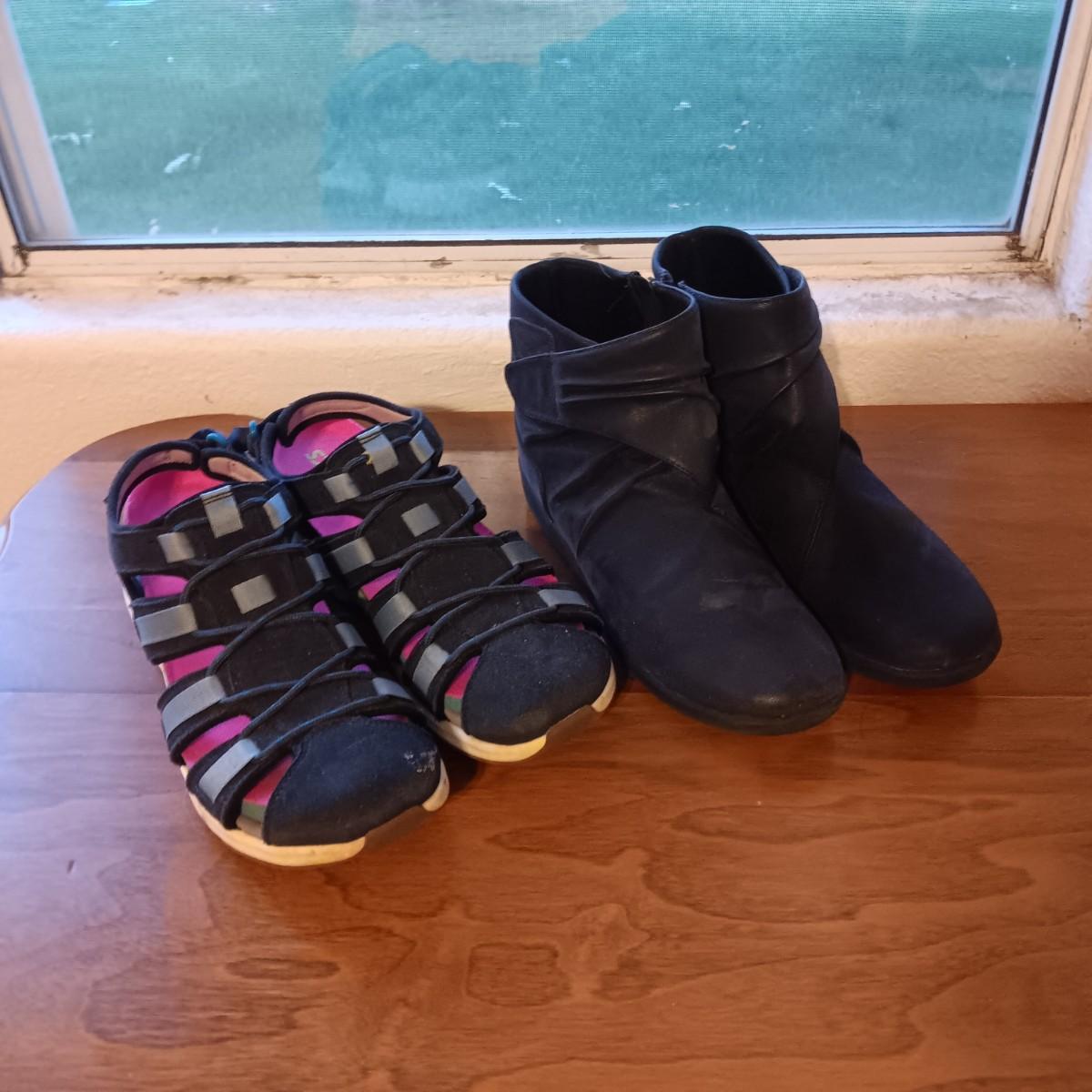 LADIES CLARKS ASICS AND SHORT BOOTS BOTH SIZE 10