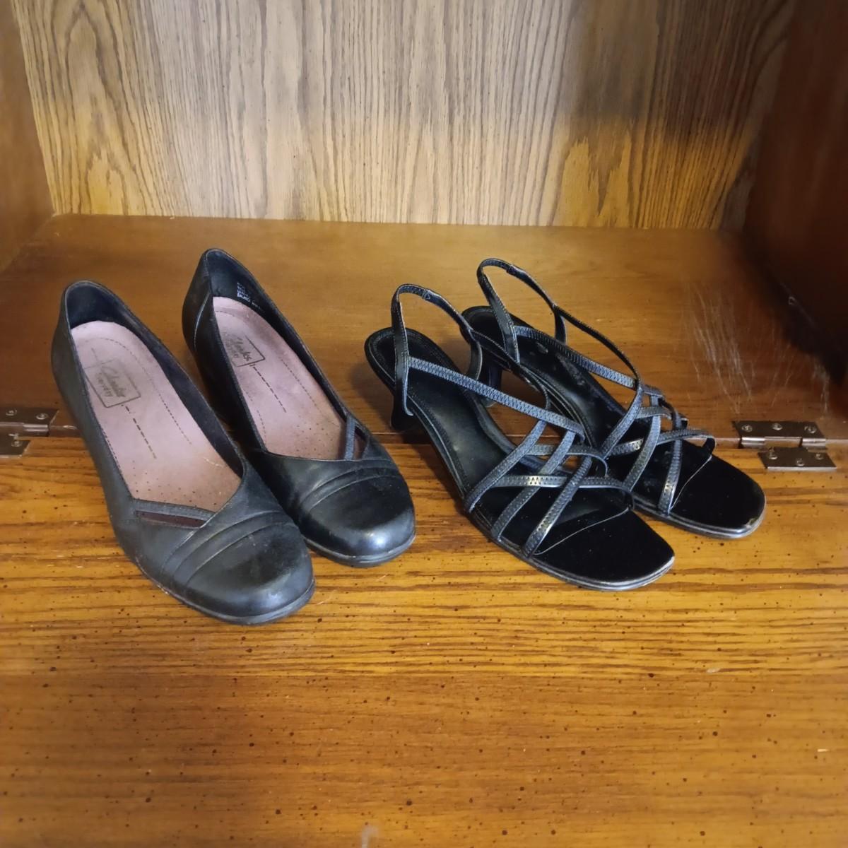 LADIES CLARKS DRESS SHOES (9) AND DRESS SANDALS (9.5)