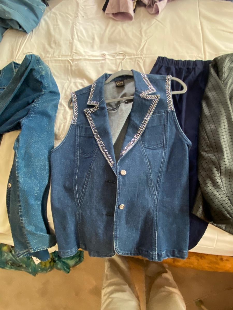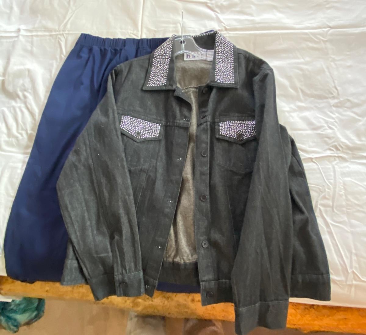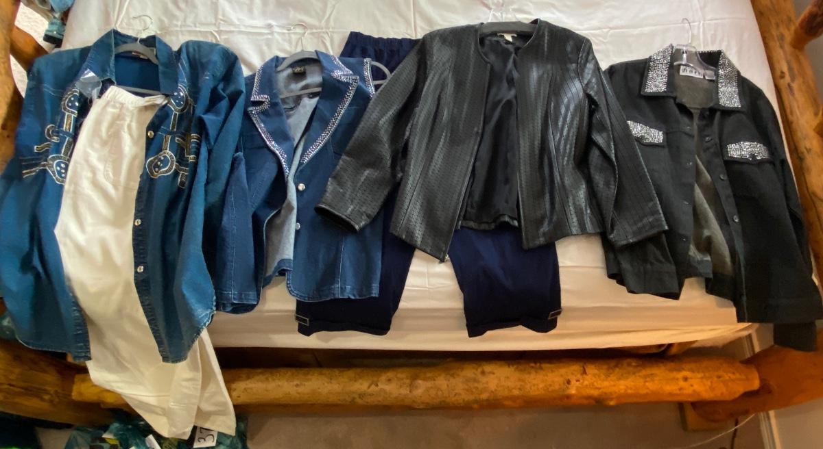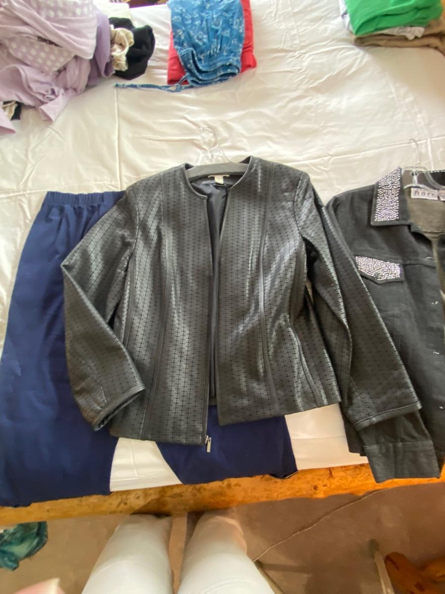 LADIES CLOTHING, LEATHER JACKET, VEST, AND PANTS