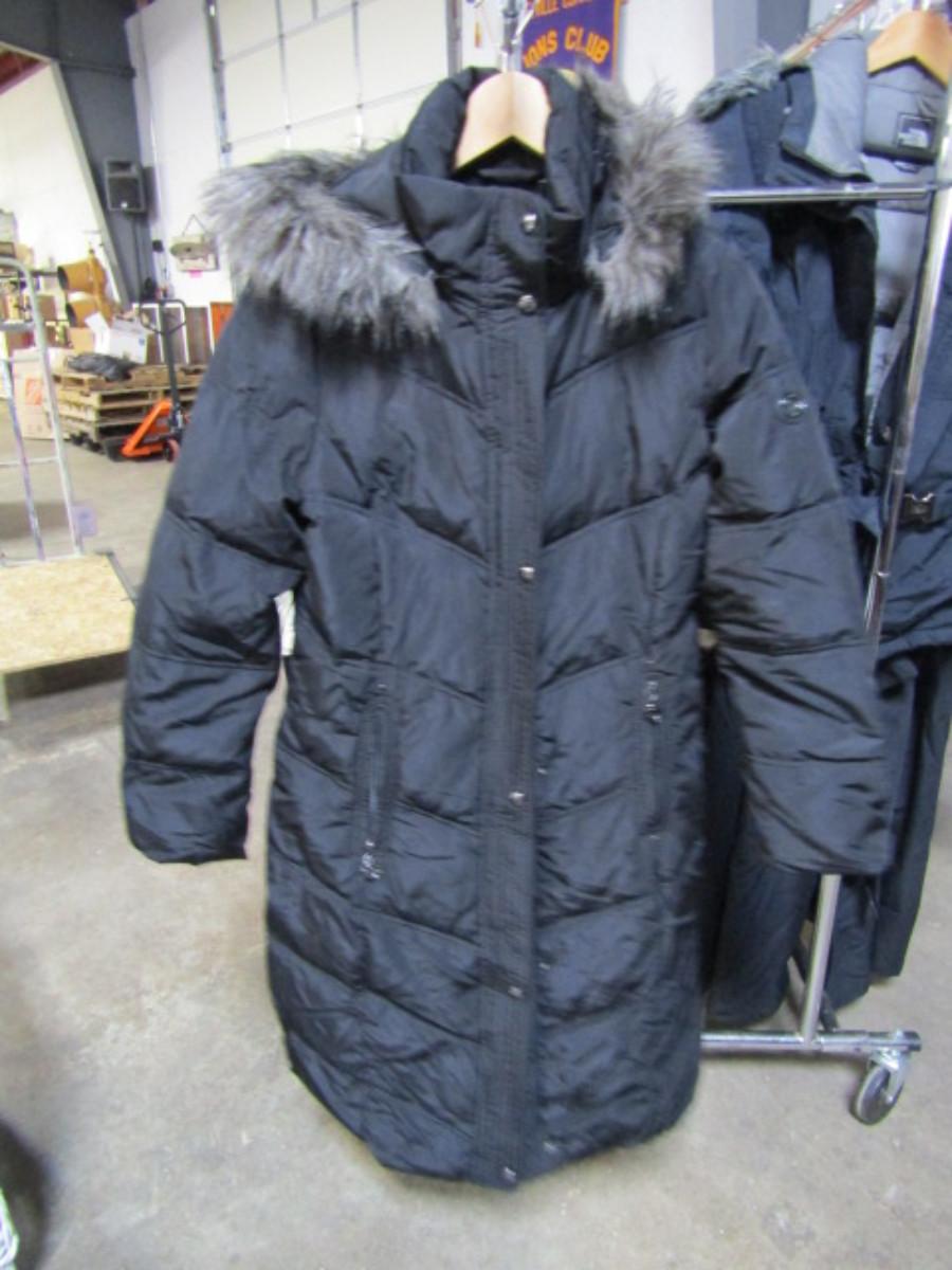 Ladies Coat with Hood and Faux Fur Trim Made by Calvin Klein- Size Small