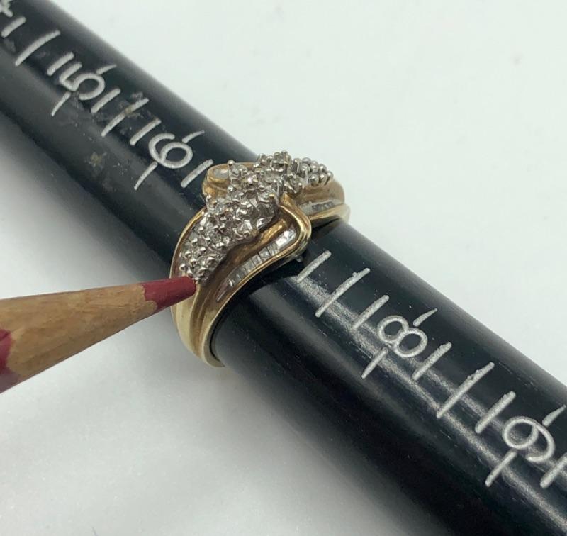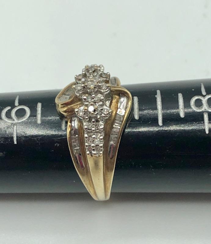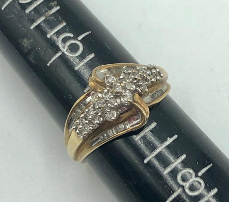Ladies ring, 10k yellow gold ring with diamonds, size 7