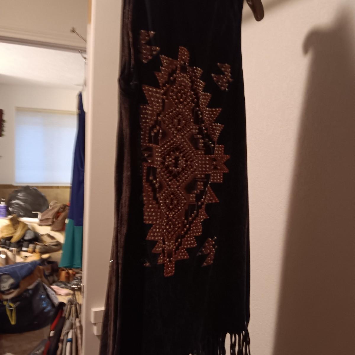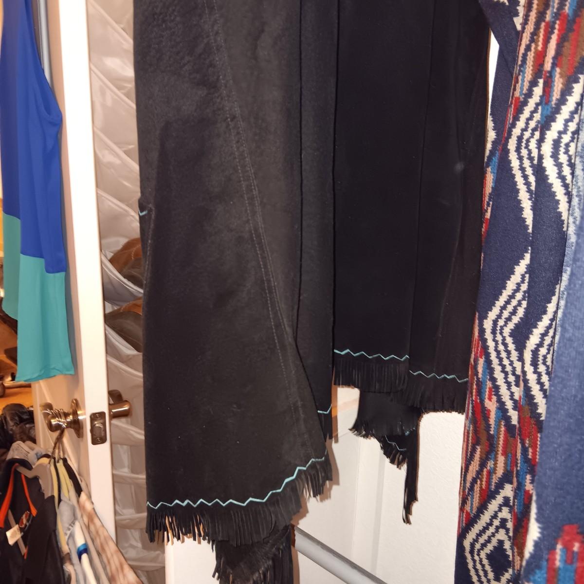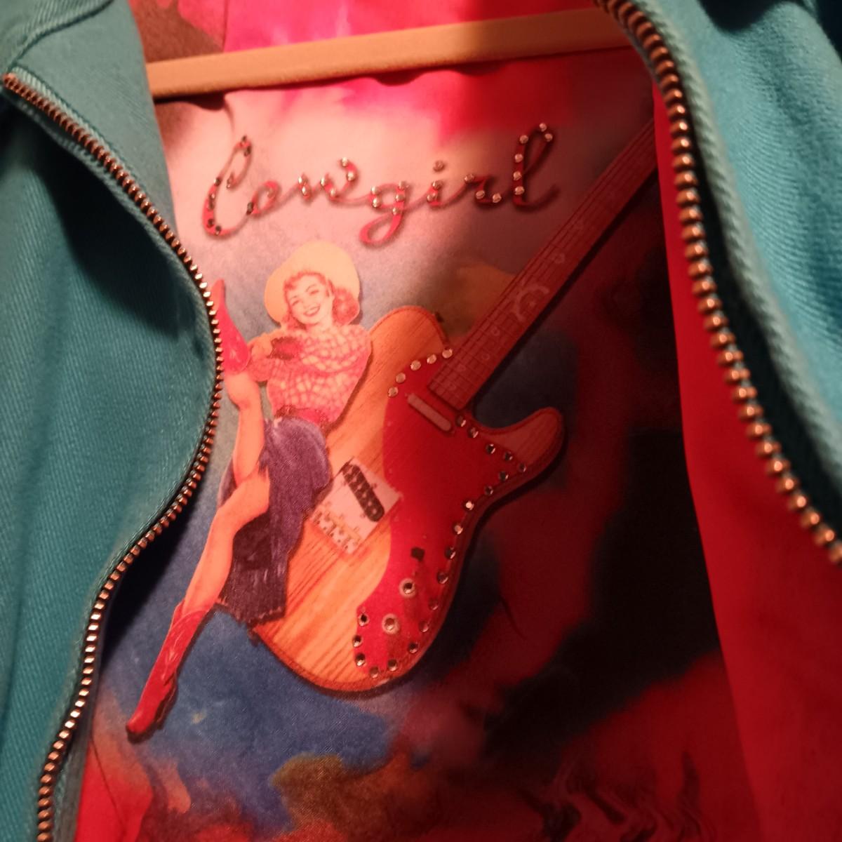 LADIES COWGIRL JACKET (M) PATRICIA WOLF LONG LEATHER VEST AND LONG SWEATER (L)