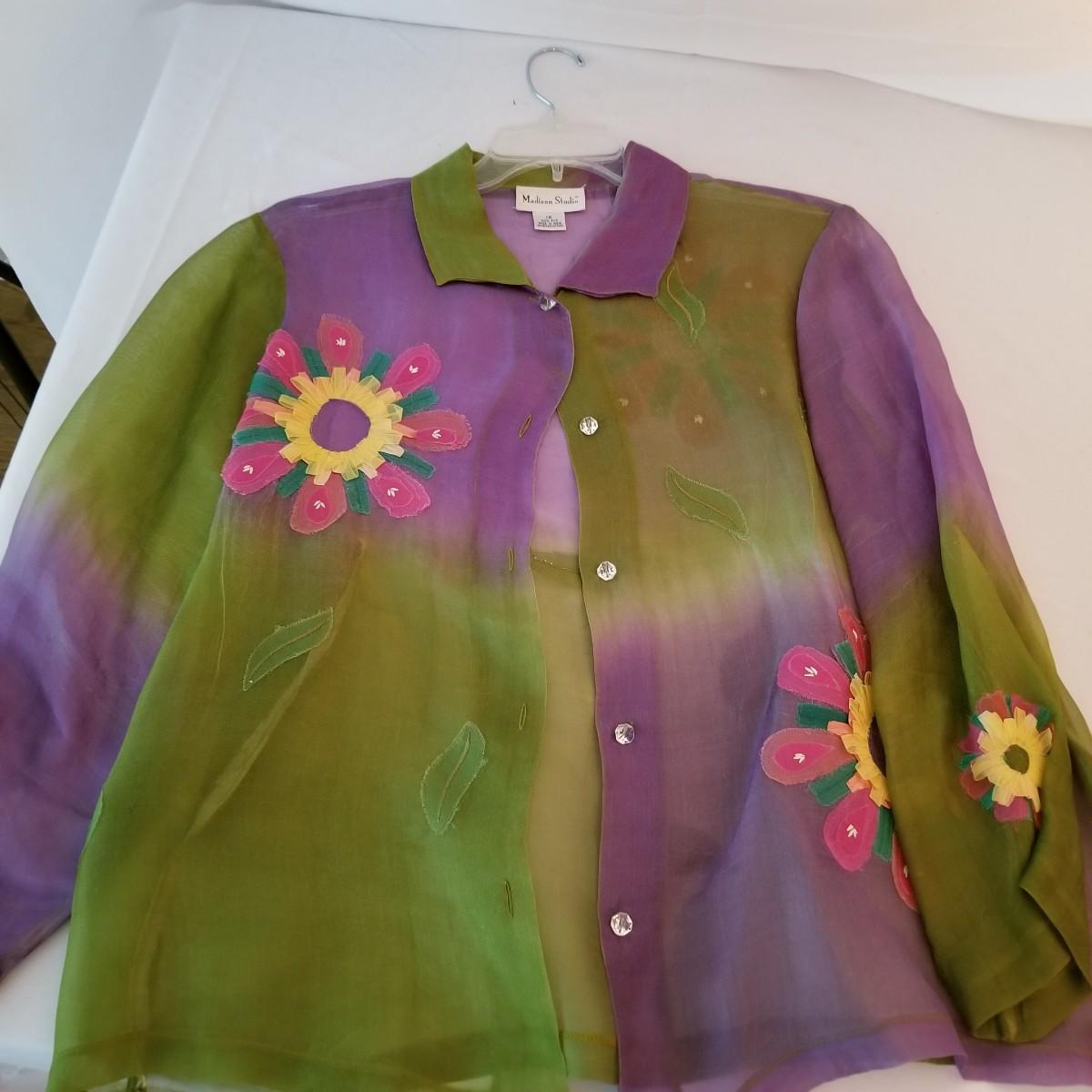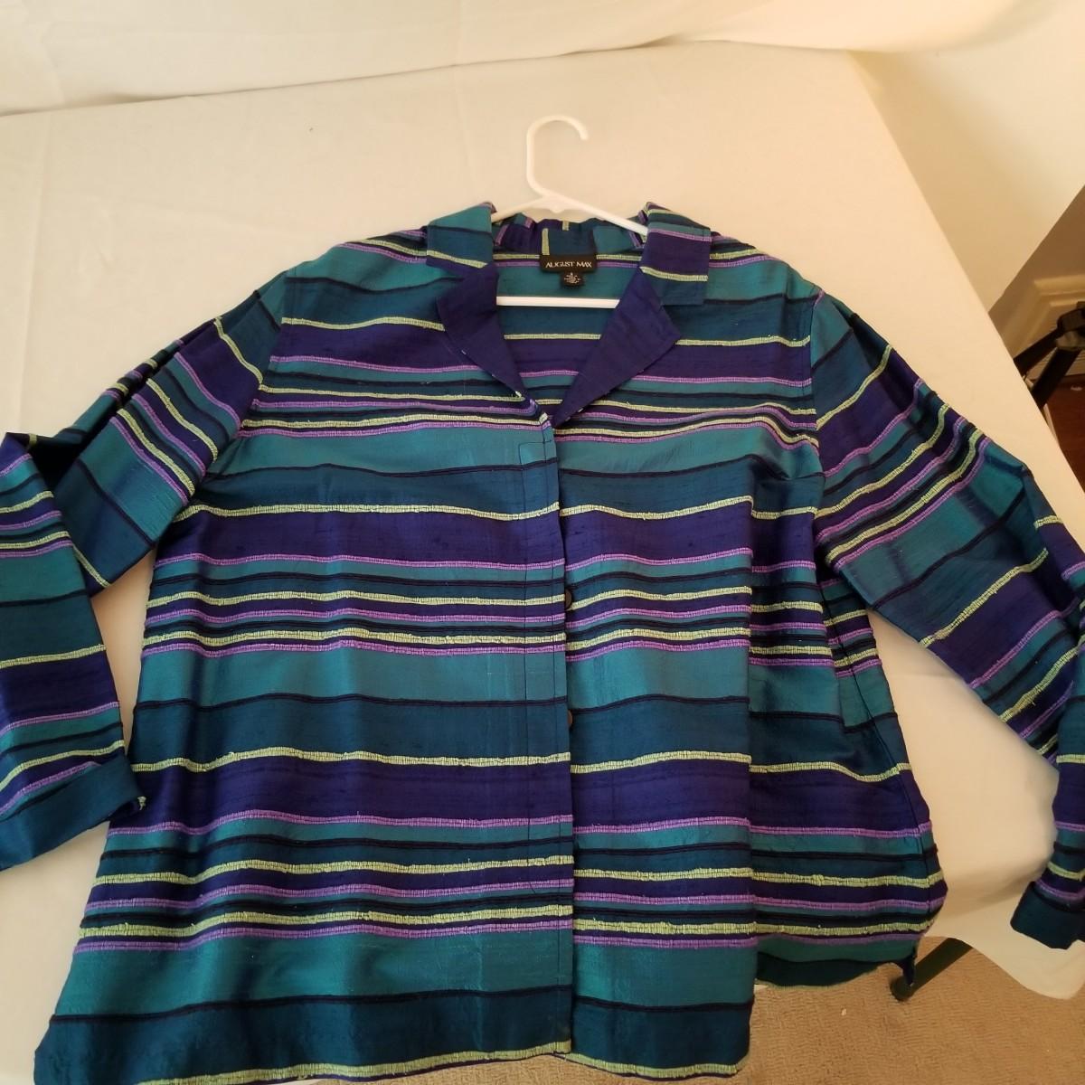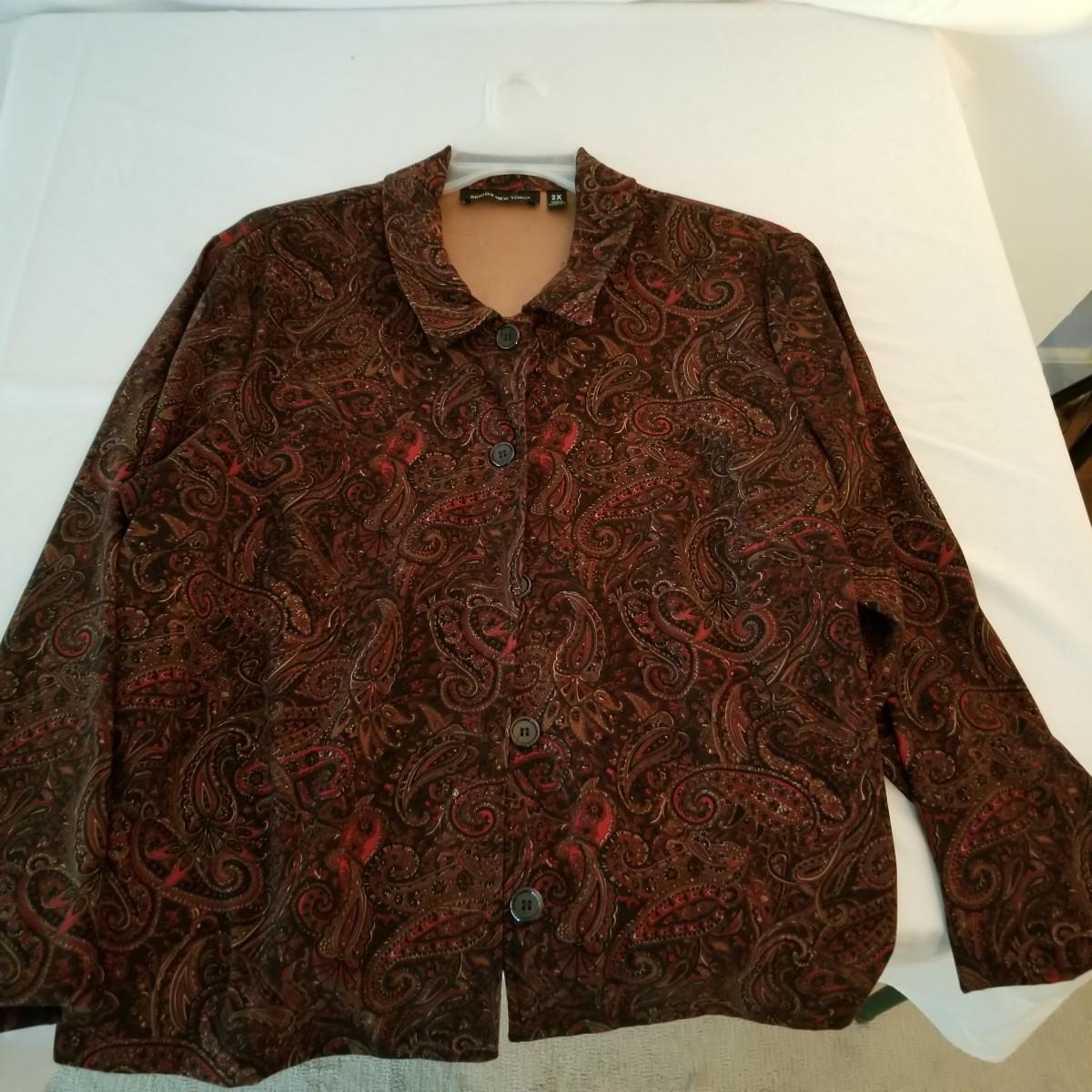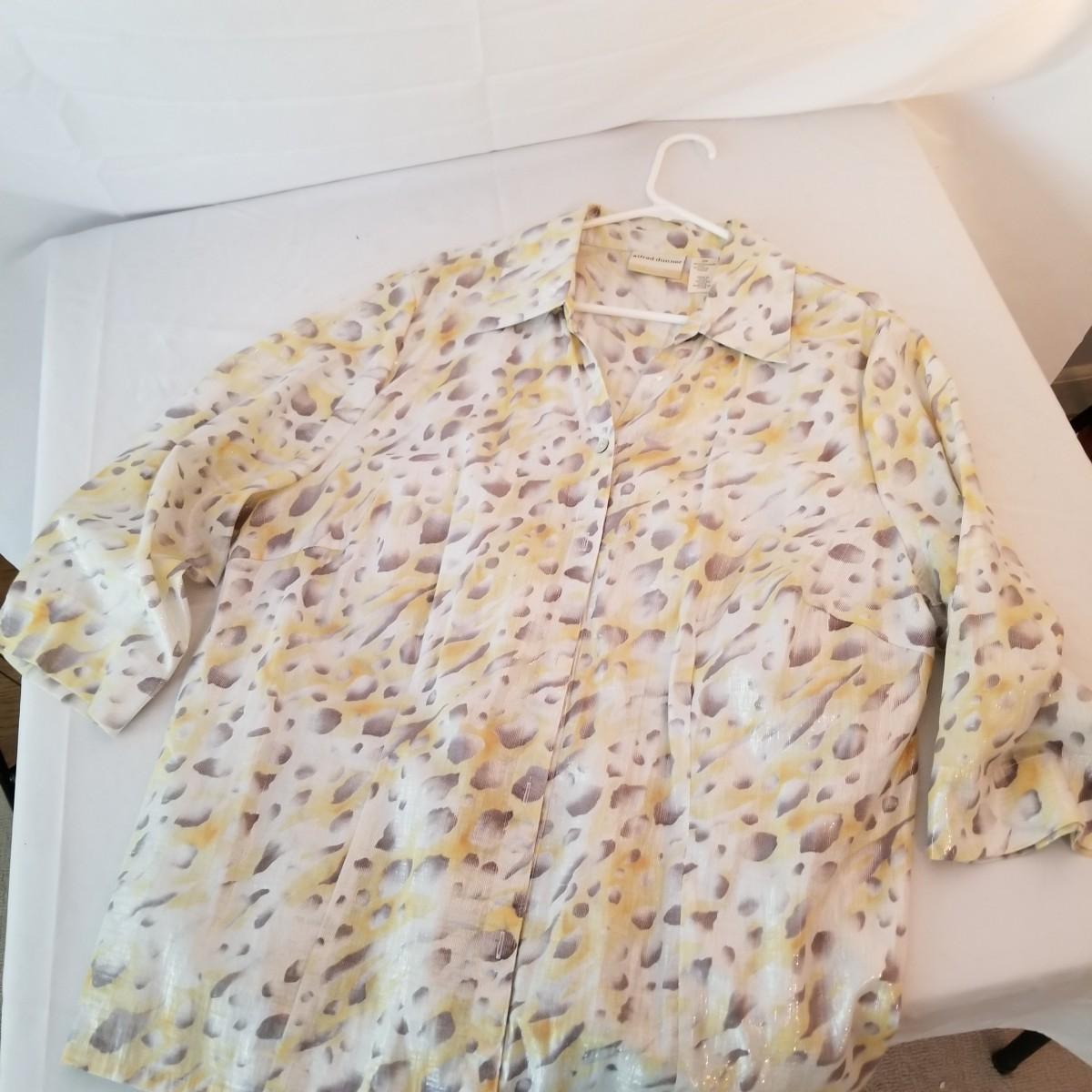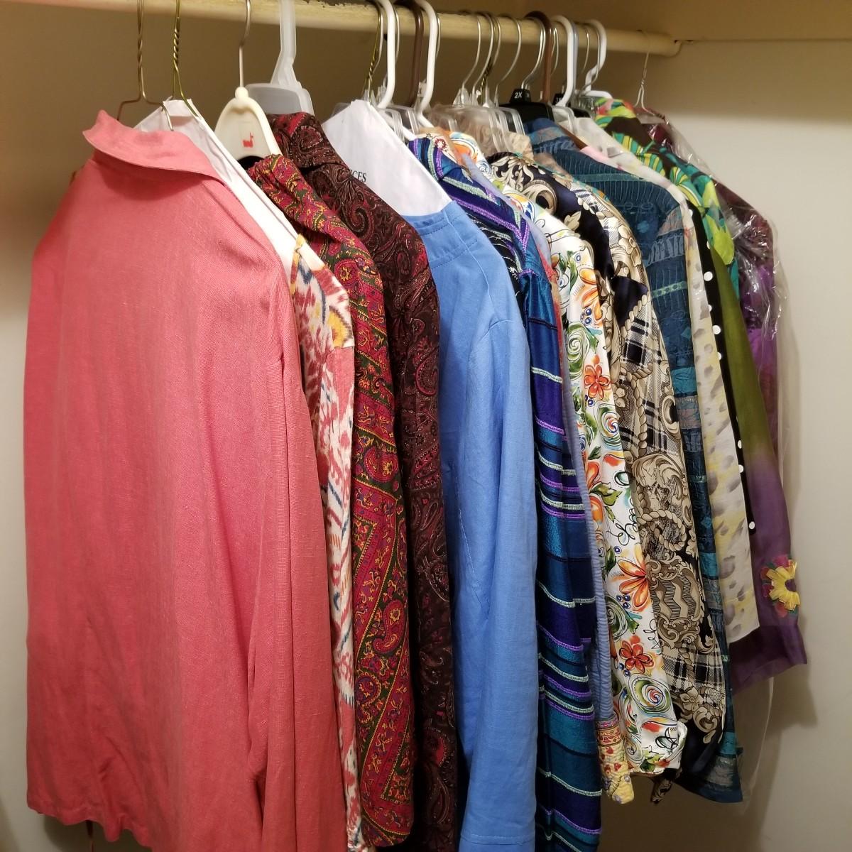 Twenty-eight articles of designer blouses, shirts and more. Erin London, Chico's, Ruby Rd, Jones New York, and more. Sizes range from 20W to 3X. Multi colors and patterns. All items on hangers. See photos for detail. Shipping available.