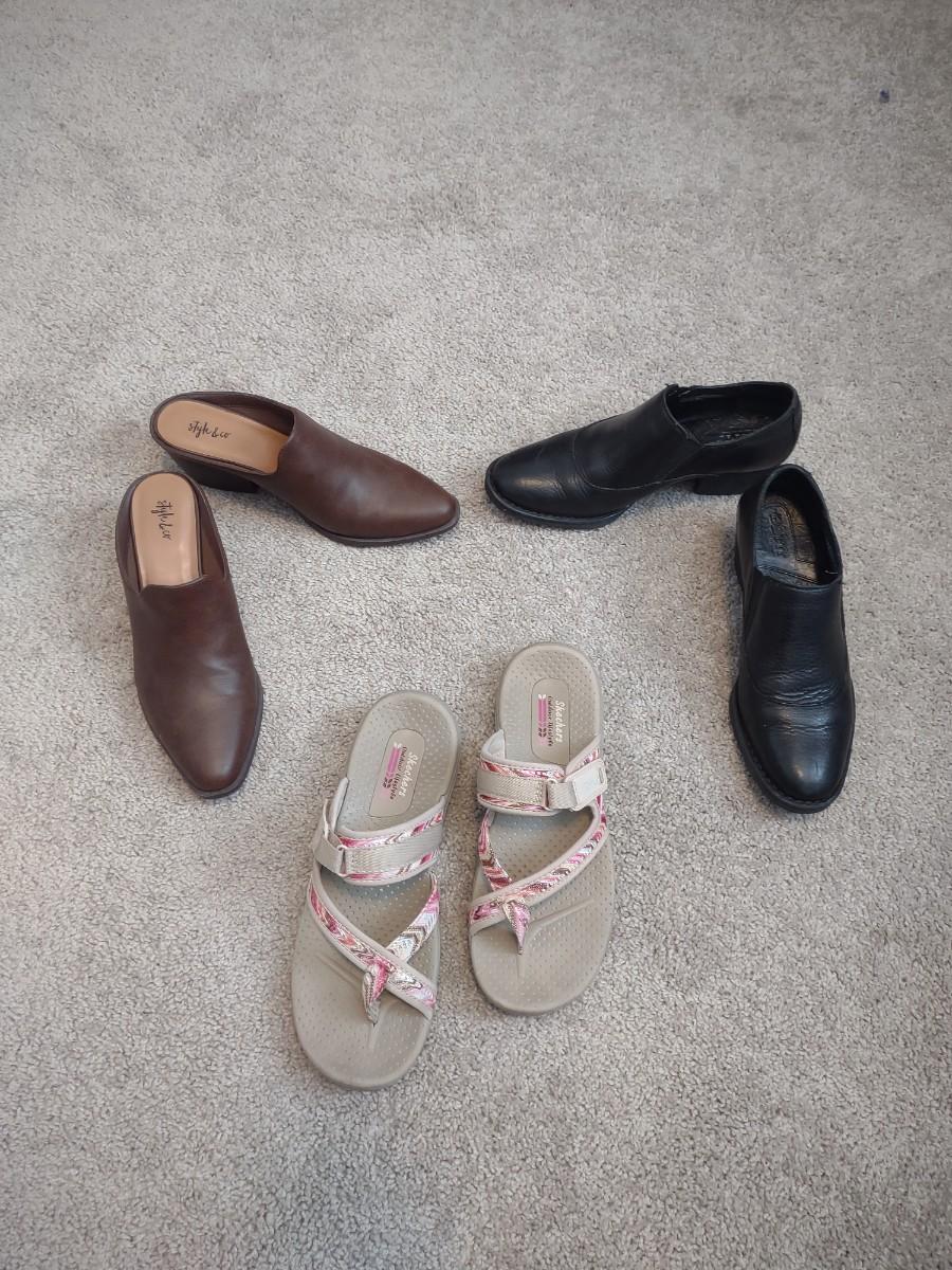 LADIES DRESS SHOES (BORN (8) & STYLE & CO) AND SKECHERS SANDALS (9)