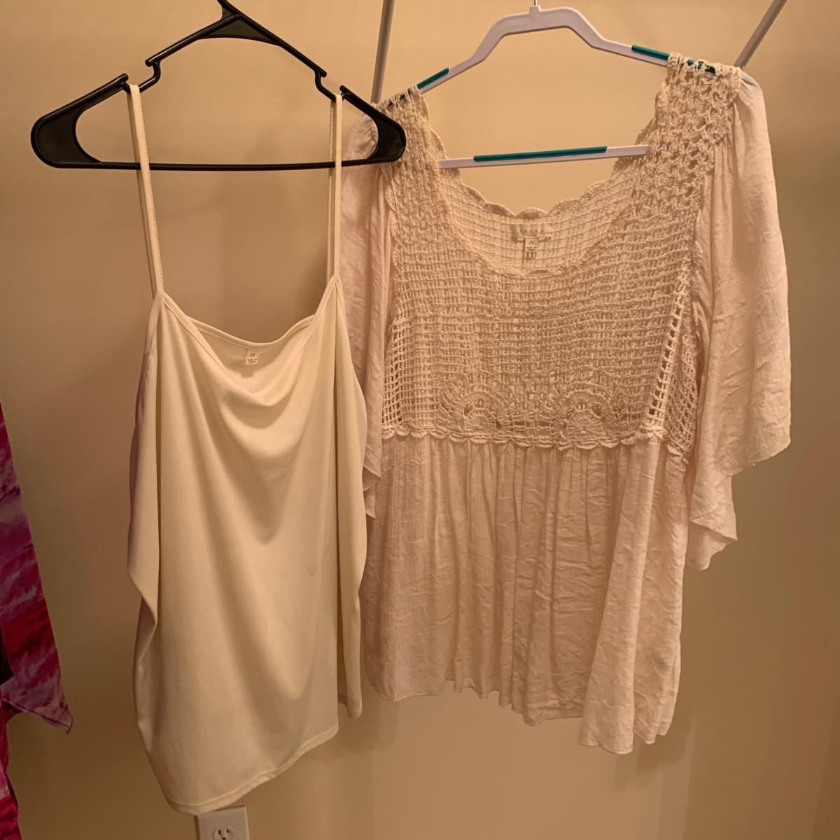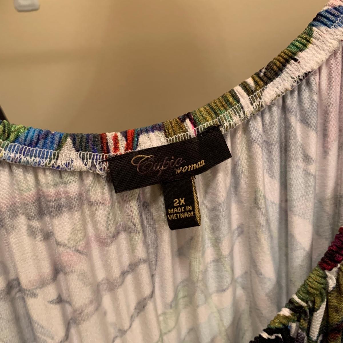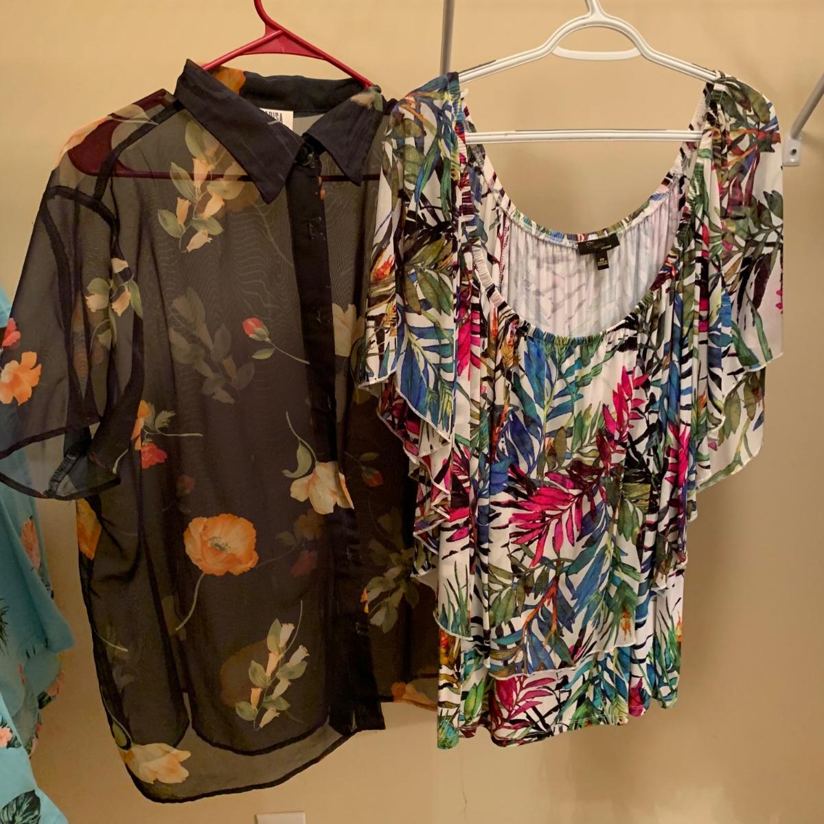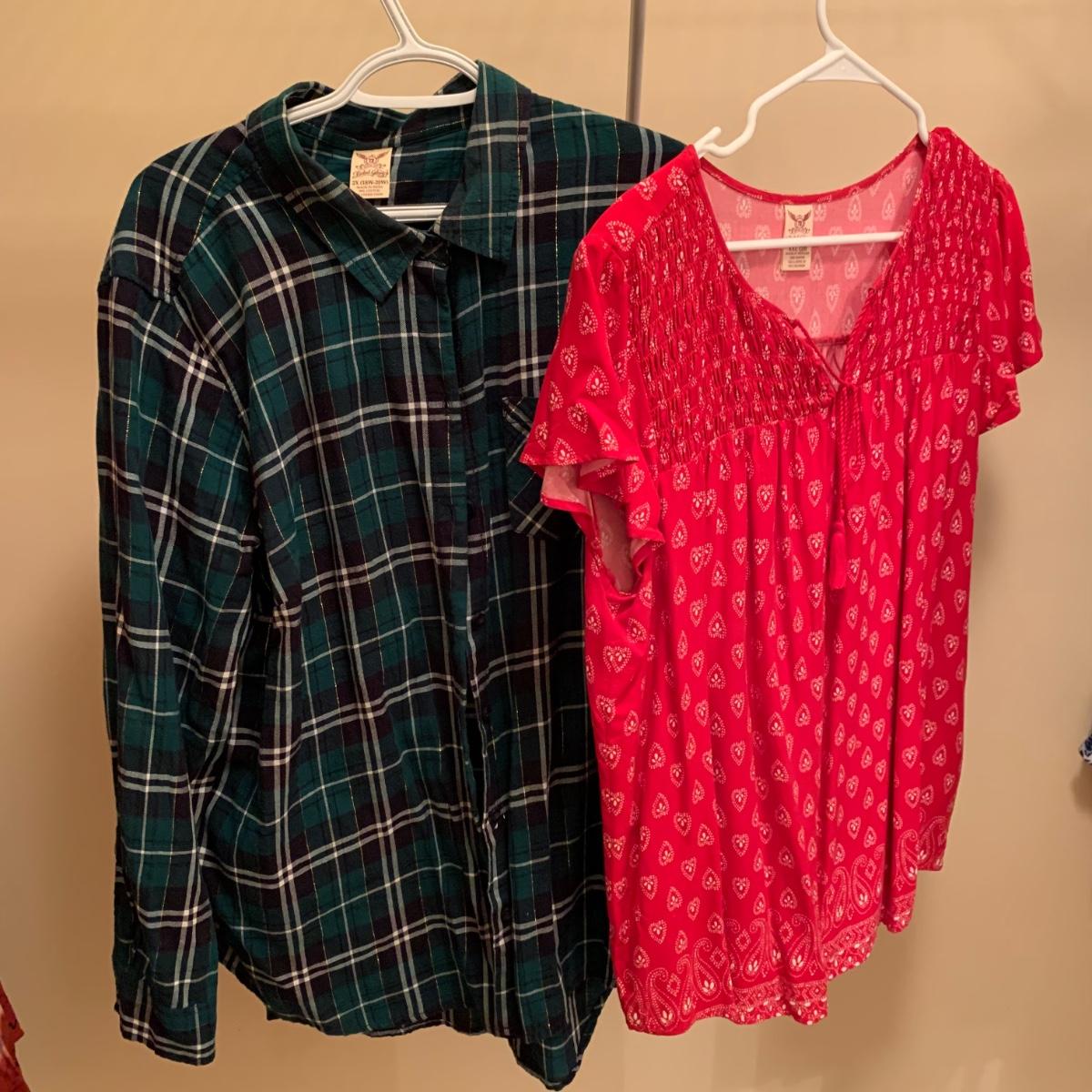 15 ladies tops, three dresses, a pair of size 16 Gloria Vanderbilt jean shorts, and a Style & Co. coat are included in this lot. Items are size XL/2X. Please see photos for inventory and details.