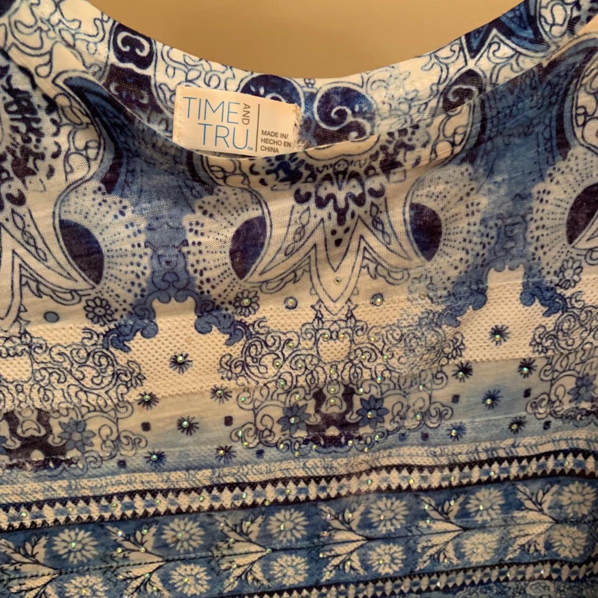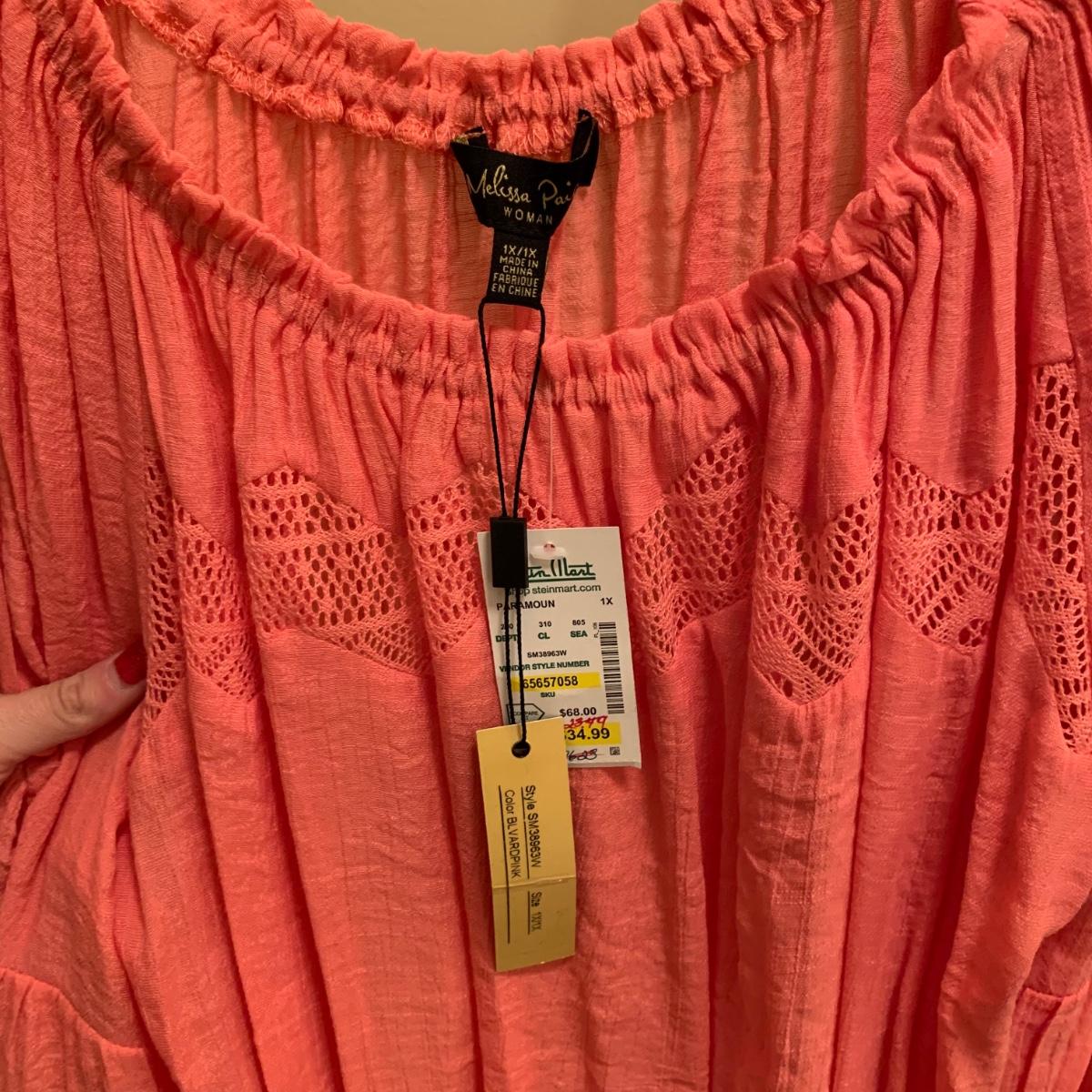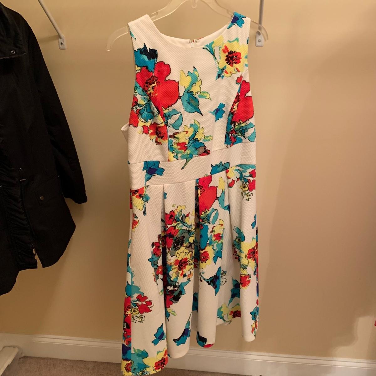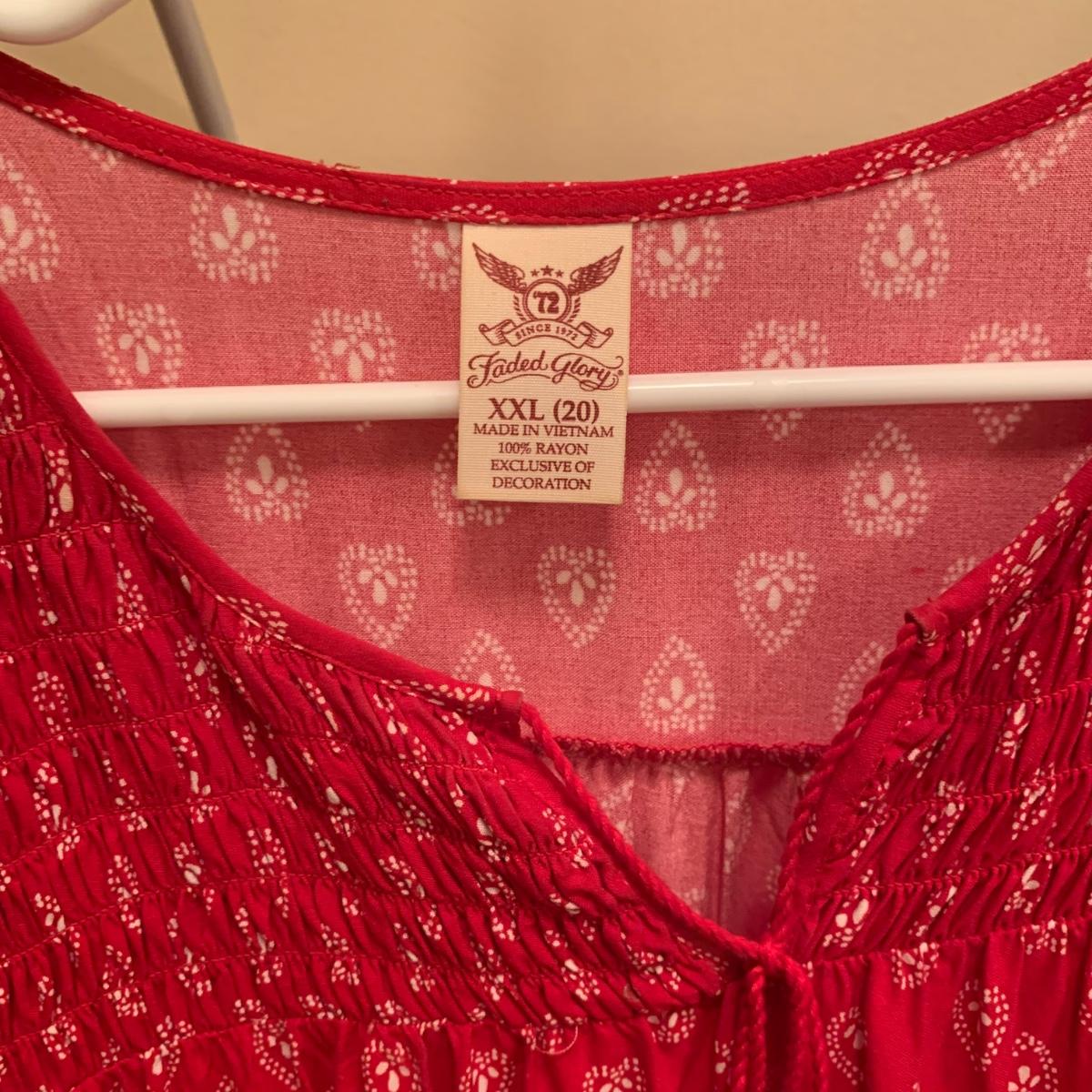 15 ladies tops, three dresses, a pair of size 16 Gloria Vanderbilt jean shorts, and a Style & Co. coat are included in this lot. Items are size XL/2X. Please see photos for inventory and details.