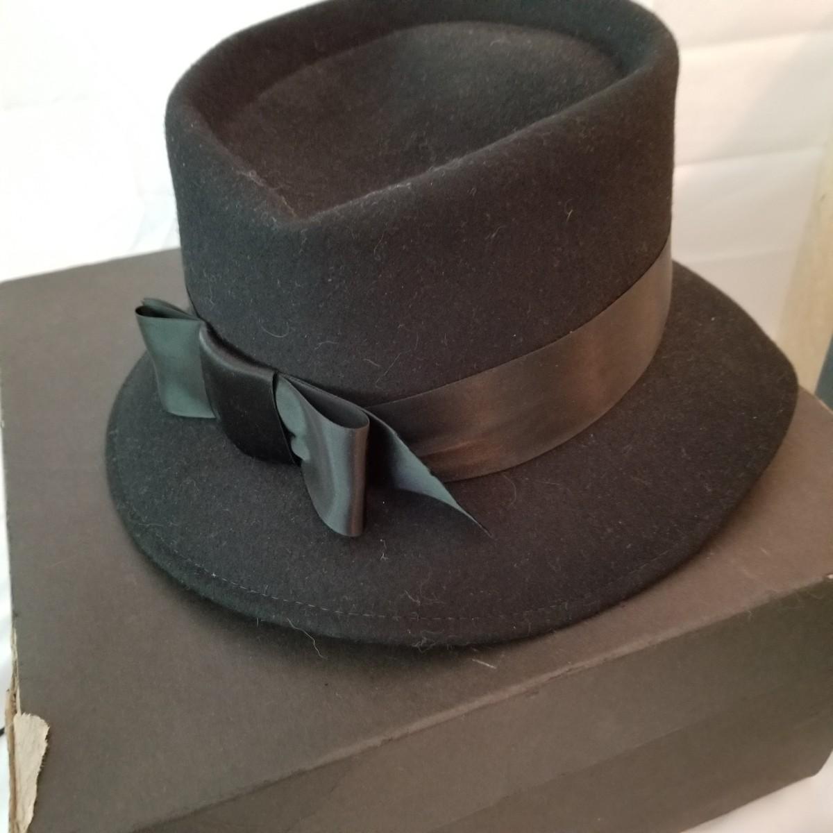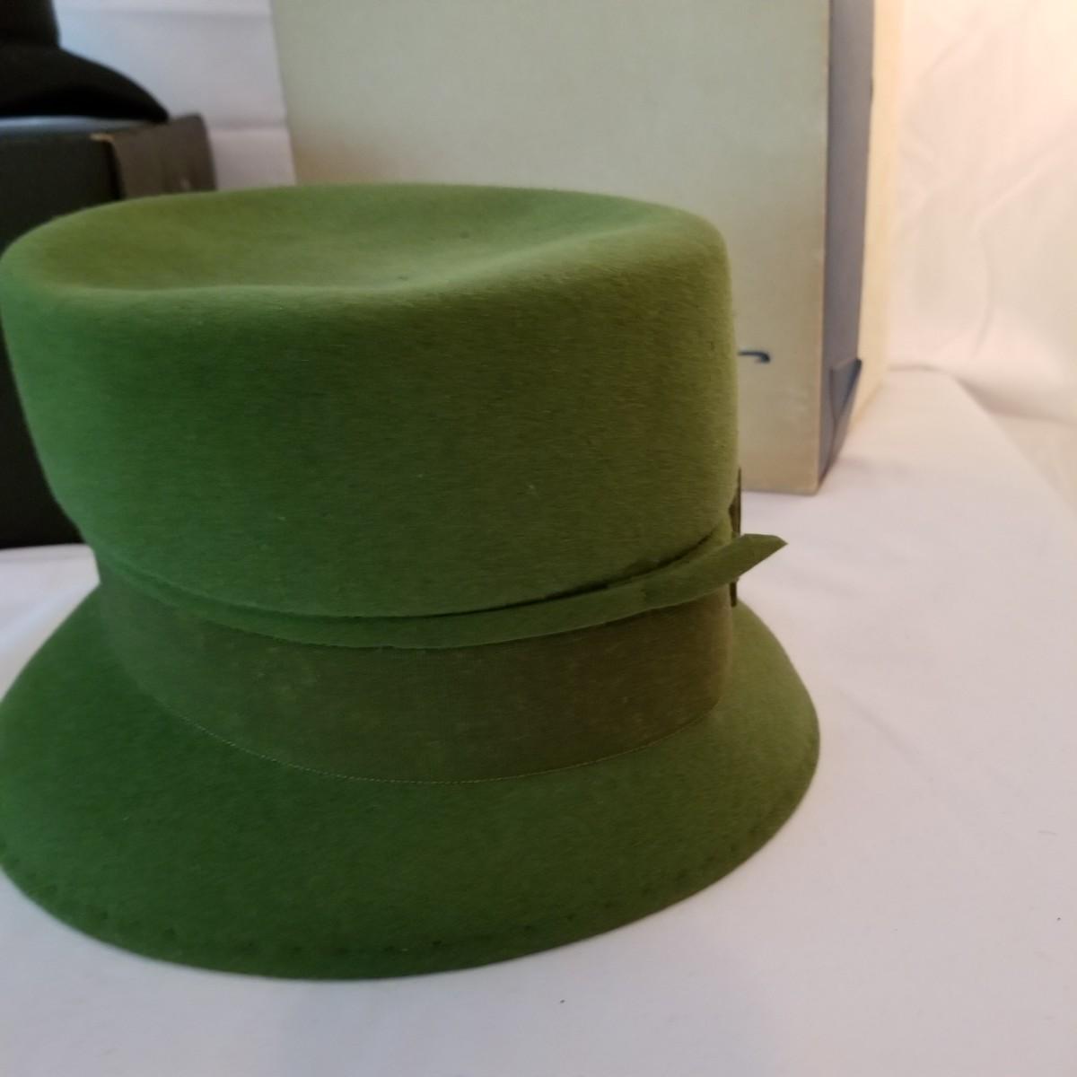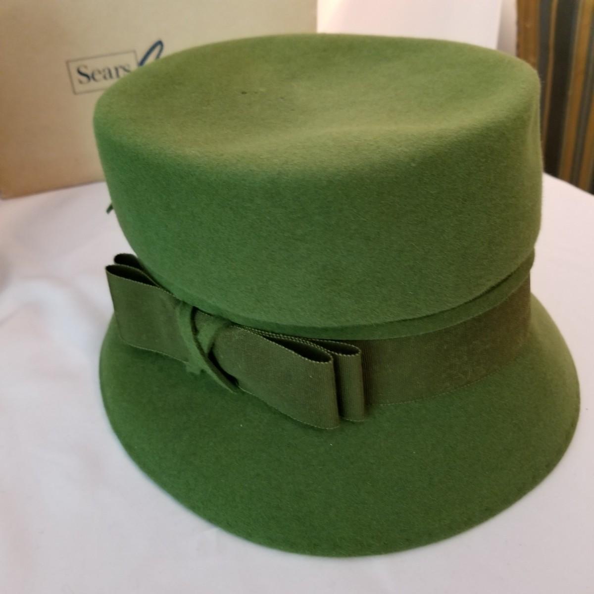 Two ladies high fashion hats, one from Sears and one from Kramer's Ladies Shop. Both items in good condition, in original boxes. See photos for detail. Shipping available.