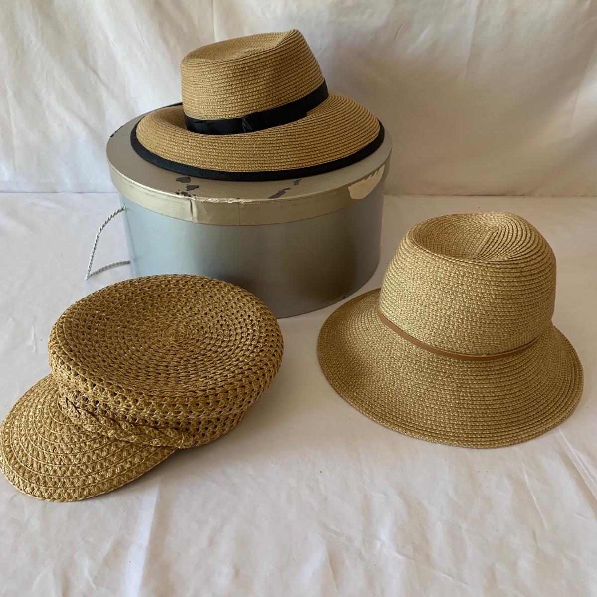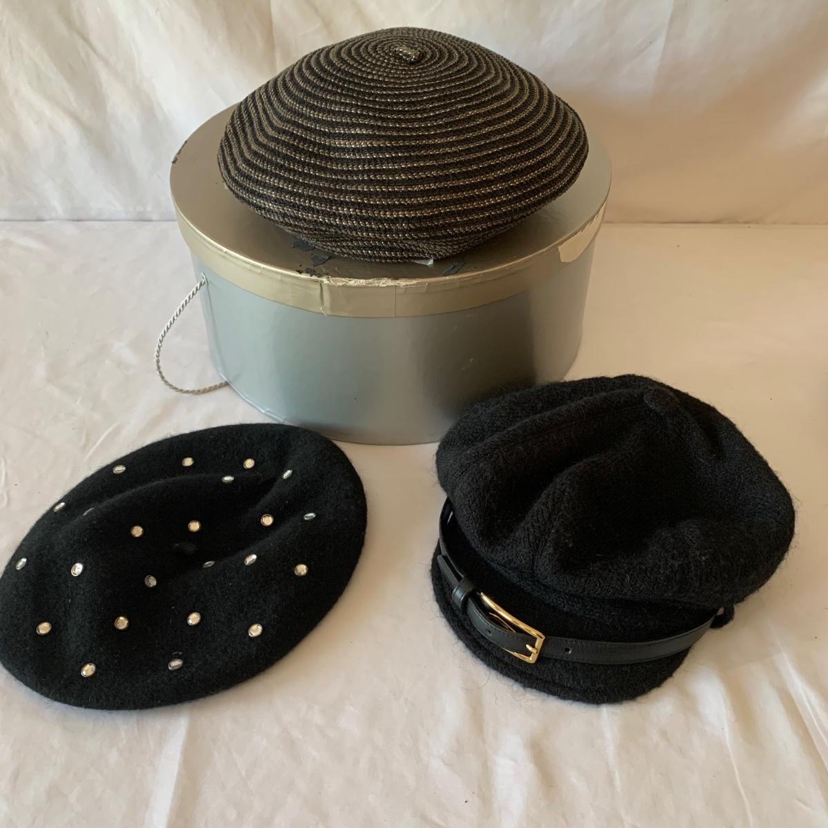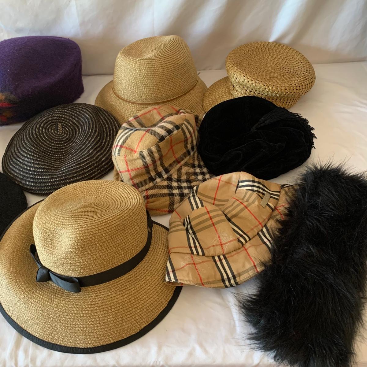 Large selection of ladies hats by Nordstrom, Burberry, Eric Javits, and more! Lot includes Nordstrom hat box and 14 hats; four of which are new with tags. Please see photos for more details. Measurements of hats with no labels: plaid wool- 24”, Black with sequins-23”, Black with brim 25”, Eric Javitts 23”, Eugine Kim/black with buckle 21”, purple Miriam Canter Feltmaker21”. : Shipping available.