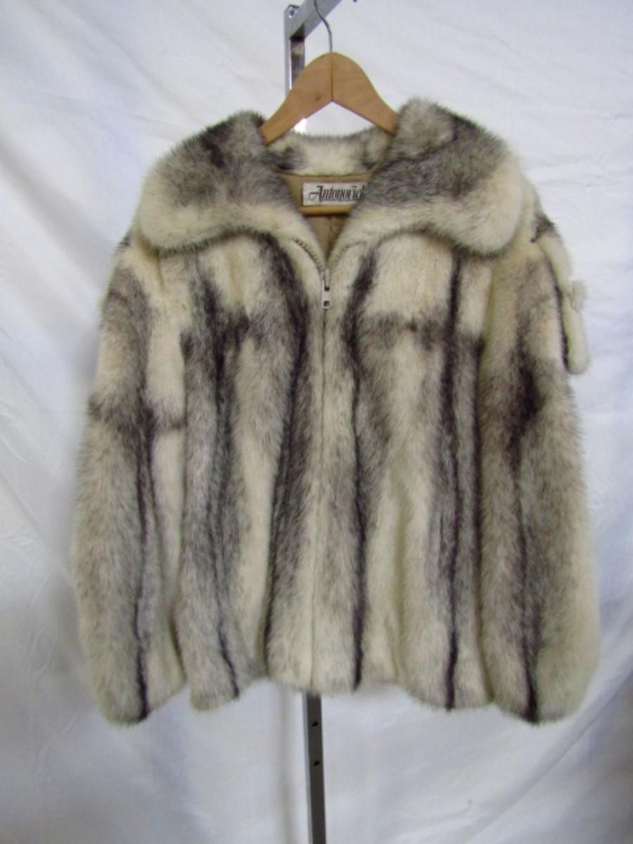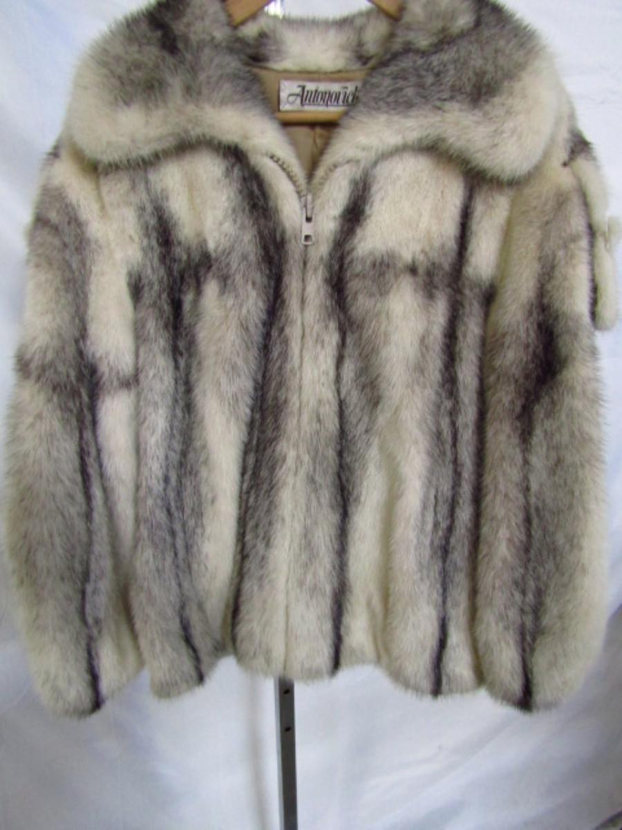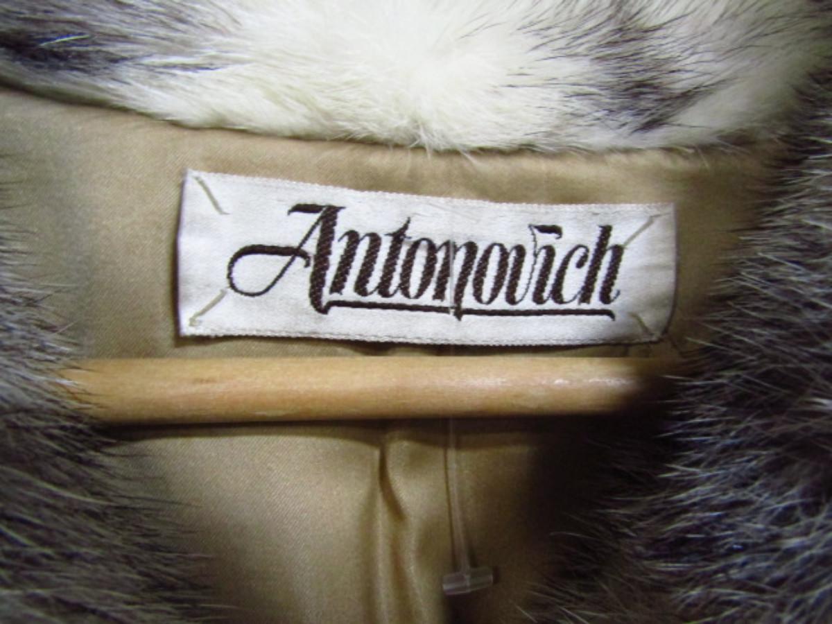 Ladies Fur Coat by Antonovich. Approximate measurements: Bust: 41 inches, Sleeve Length: 22 inches, Length: 27 inches.