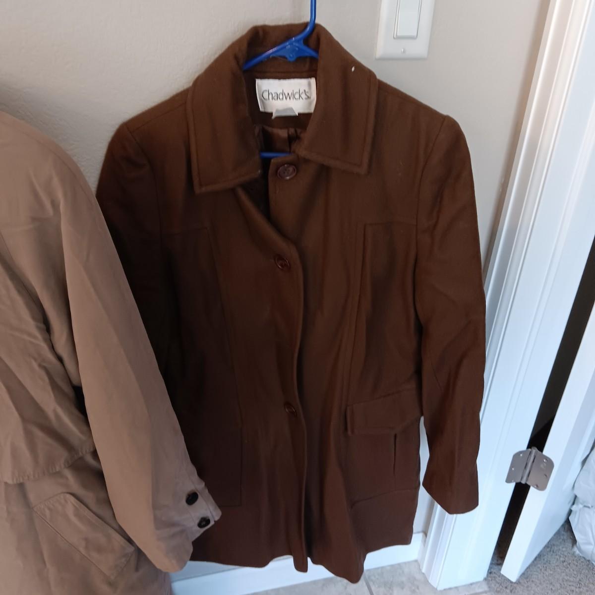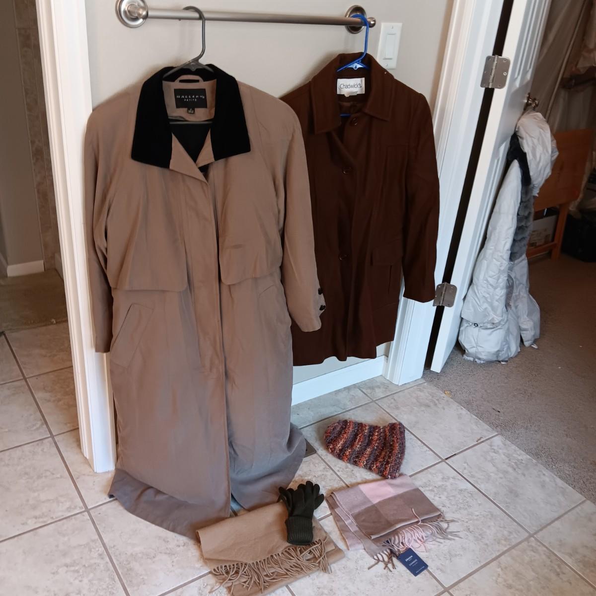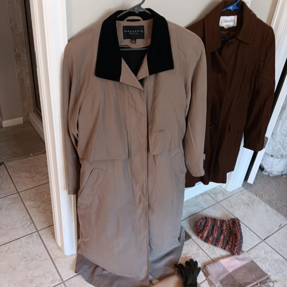 LADIES GALLERY PETITE TRENCH COAT (5), CHADWICK'S WOOL JACKET (8) AND CASHMERE SCARF