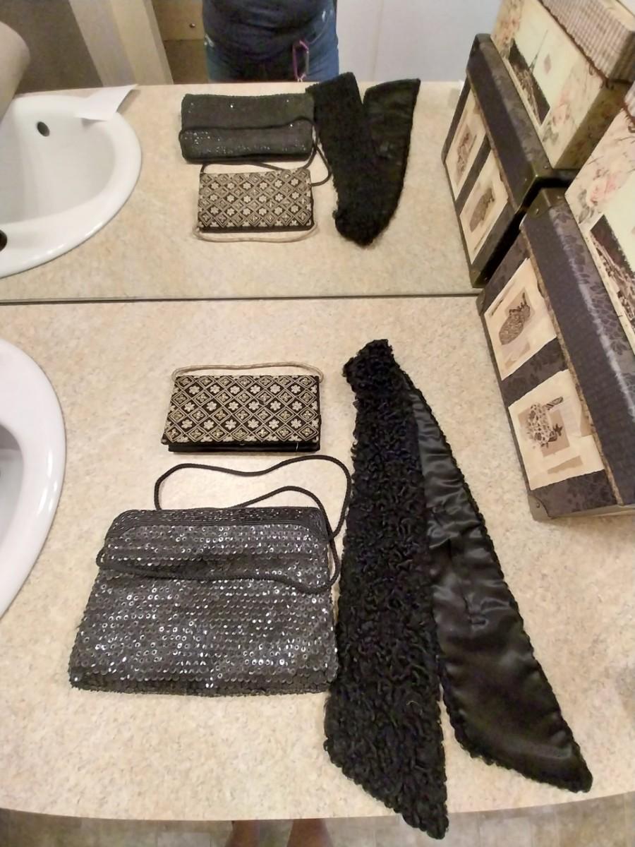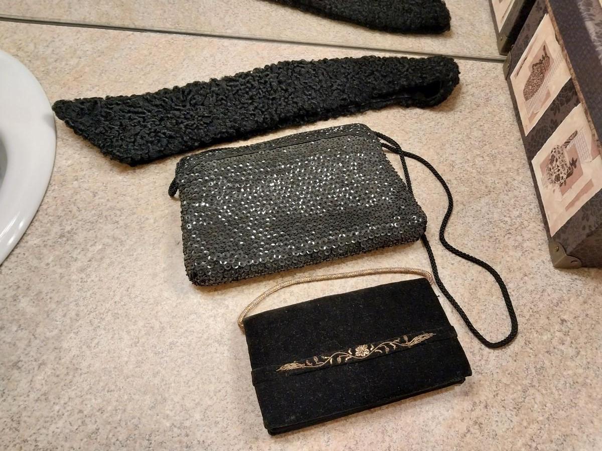 LADIES HANDBAGS AND FUR LIKE COLLAR