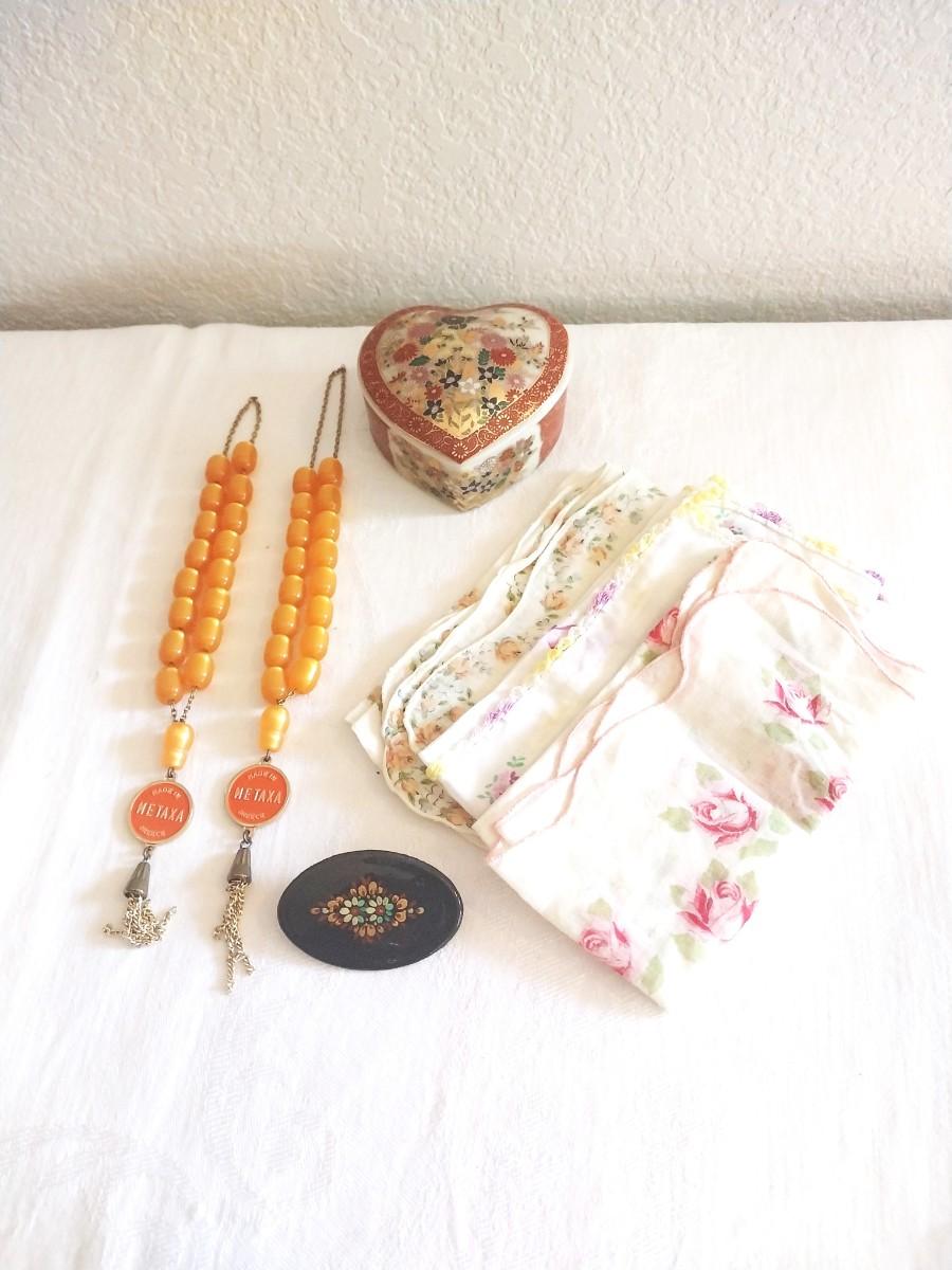 LADIES HANKIES-BROOCH-TRINKET BOX AND MORE