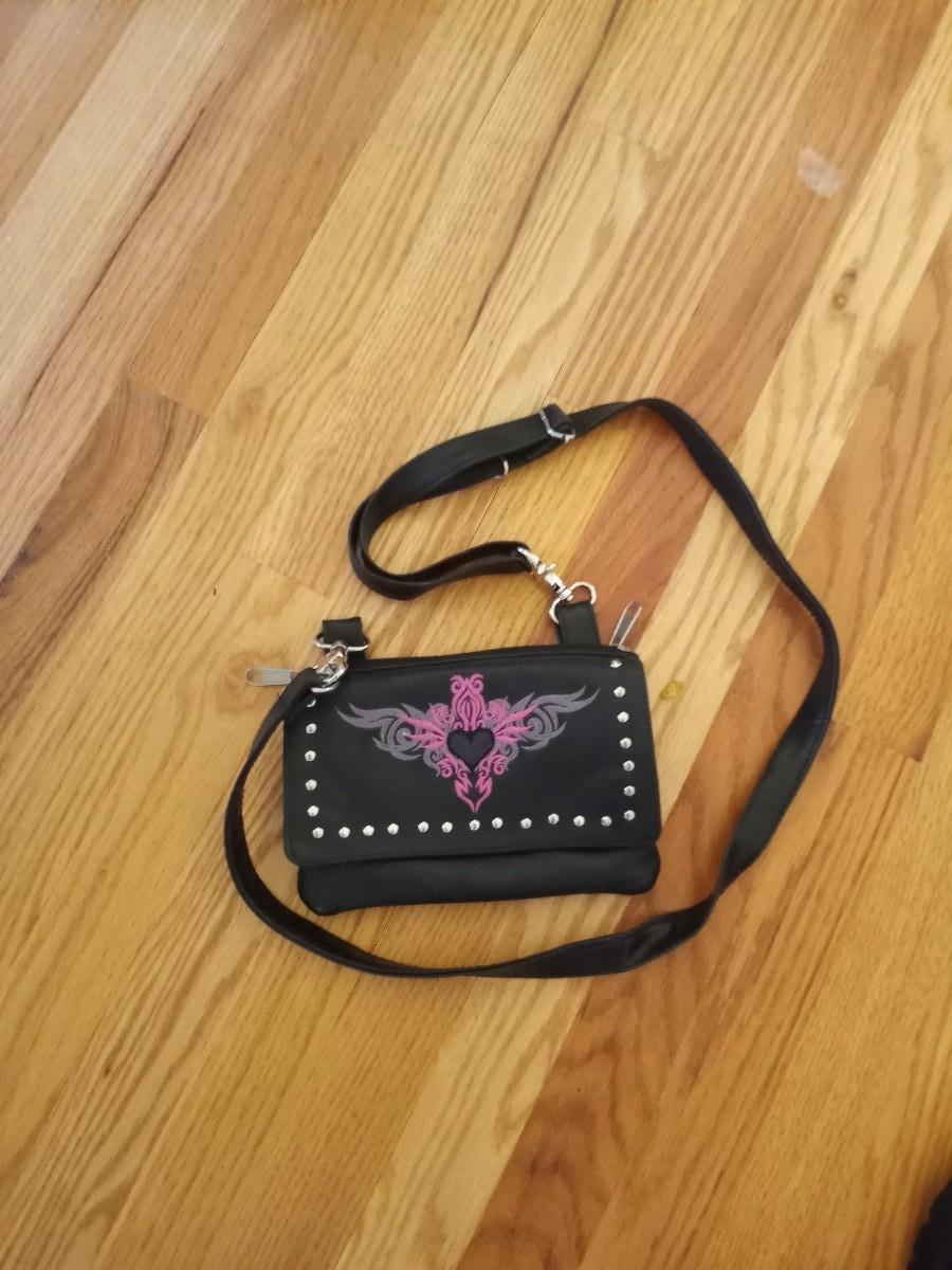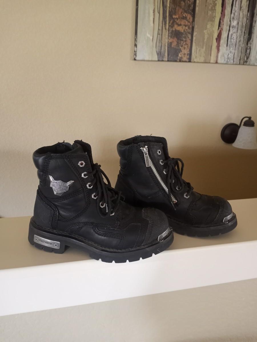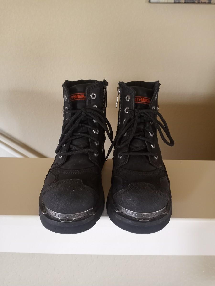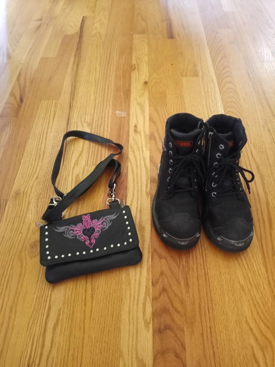 LADIES HARLEY DAVIDSON BOOTS SIZE 7 1/2 & BLACK STUDDED HANDBAG