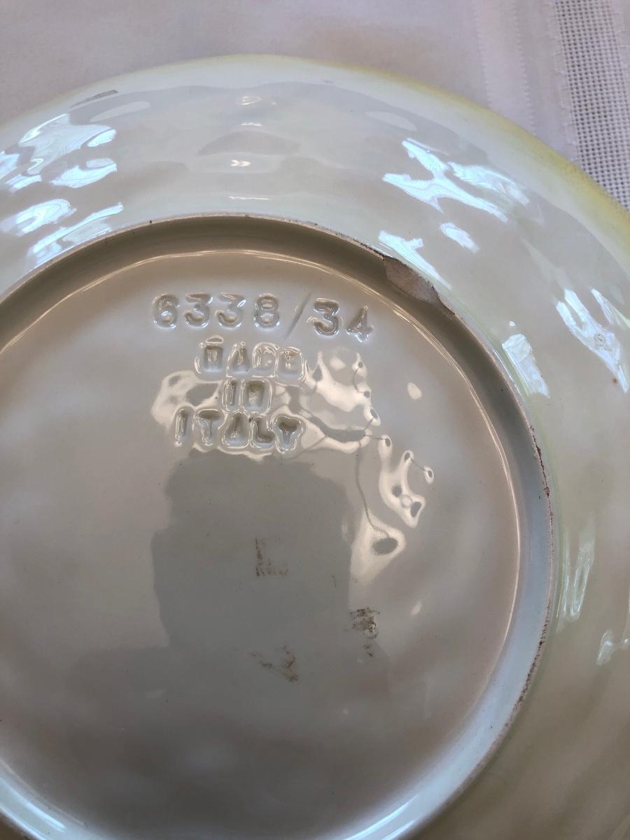 Please see pictures. Bowl is marked Made in Italy and is numbered. Has a small chigger bite on the base.