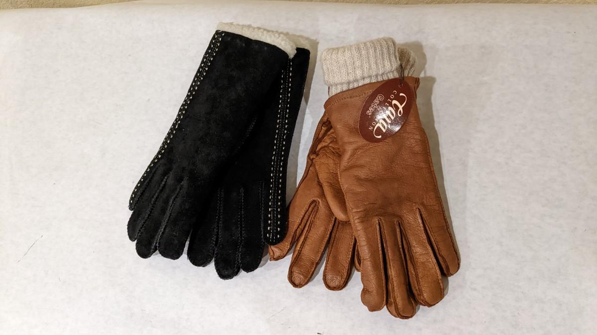 2ea, includes NWT wool lined Cara Collection gloves and split cowhide and acrylic lined gloves, both size medium