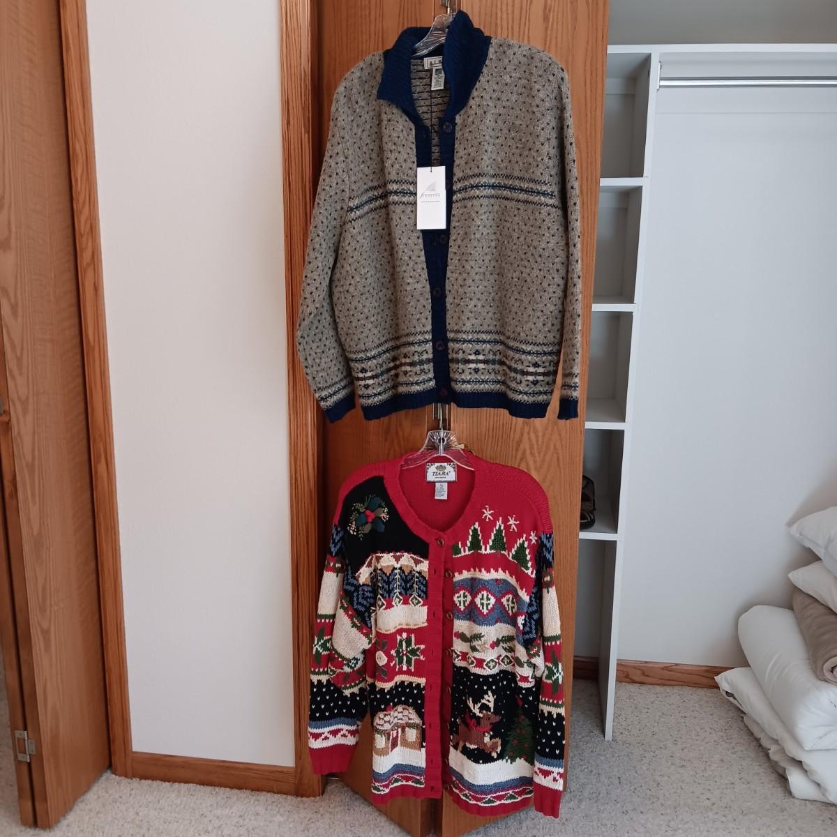 LADIES LL BEAN 100% WOOL SWEATER PLUS A CHRISTMAS SWEATER SIZE XL