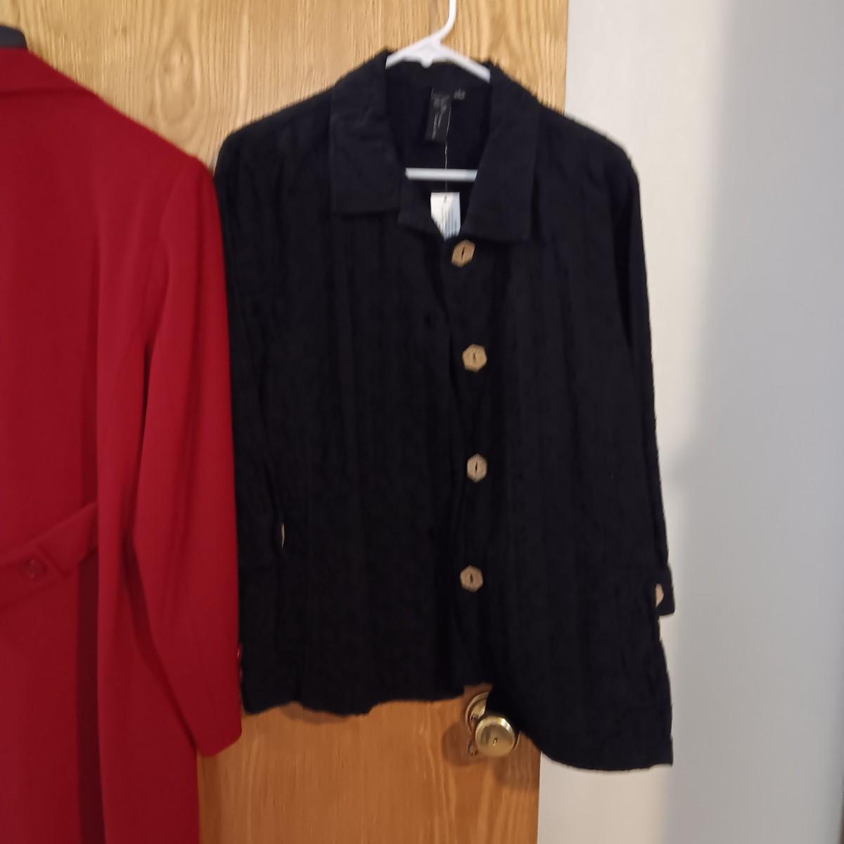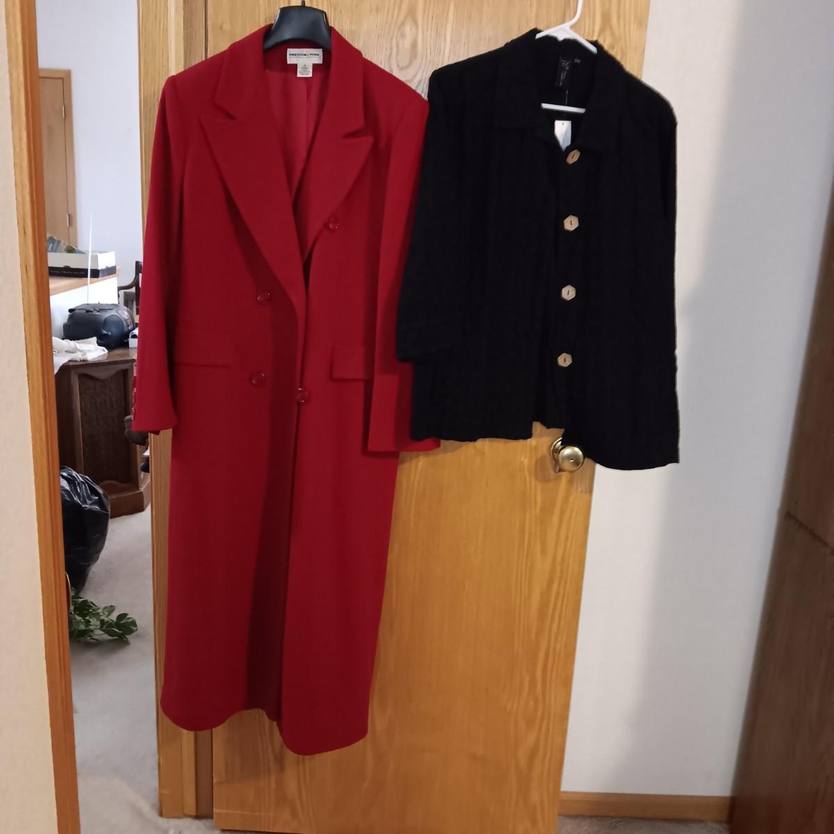 LADIES LONG DRESS COAT (14) AND A NEW LIGHT WEIGHT JACKET (L)