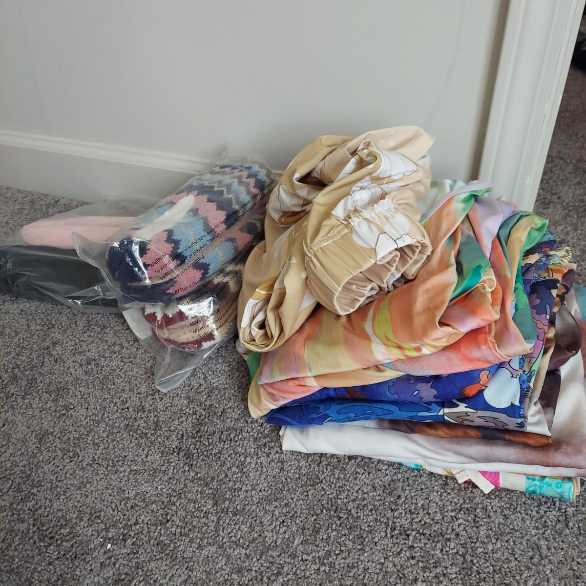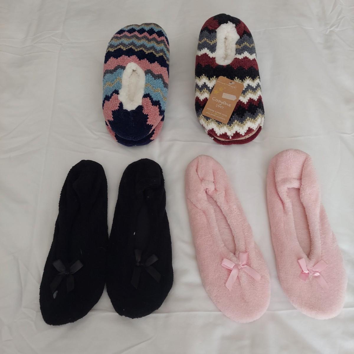 Lot includes six matching loungewear sets and four pairs of slippers. Please see photos for brands and sizes. Shipping available