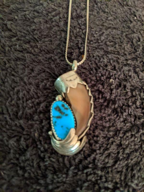 Ladies necklace turqouise pendant. Sterling silver