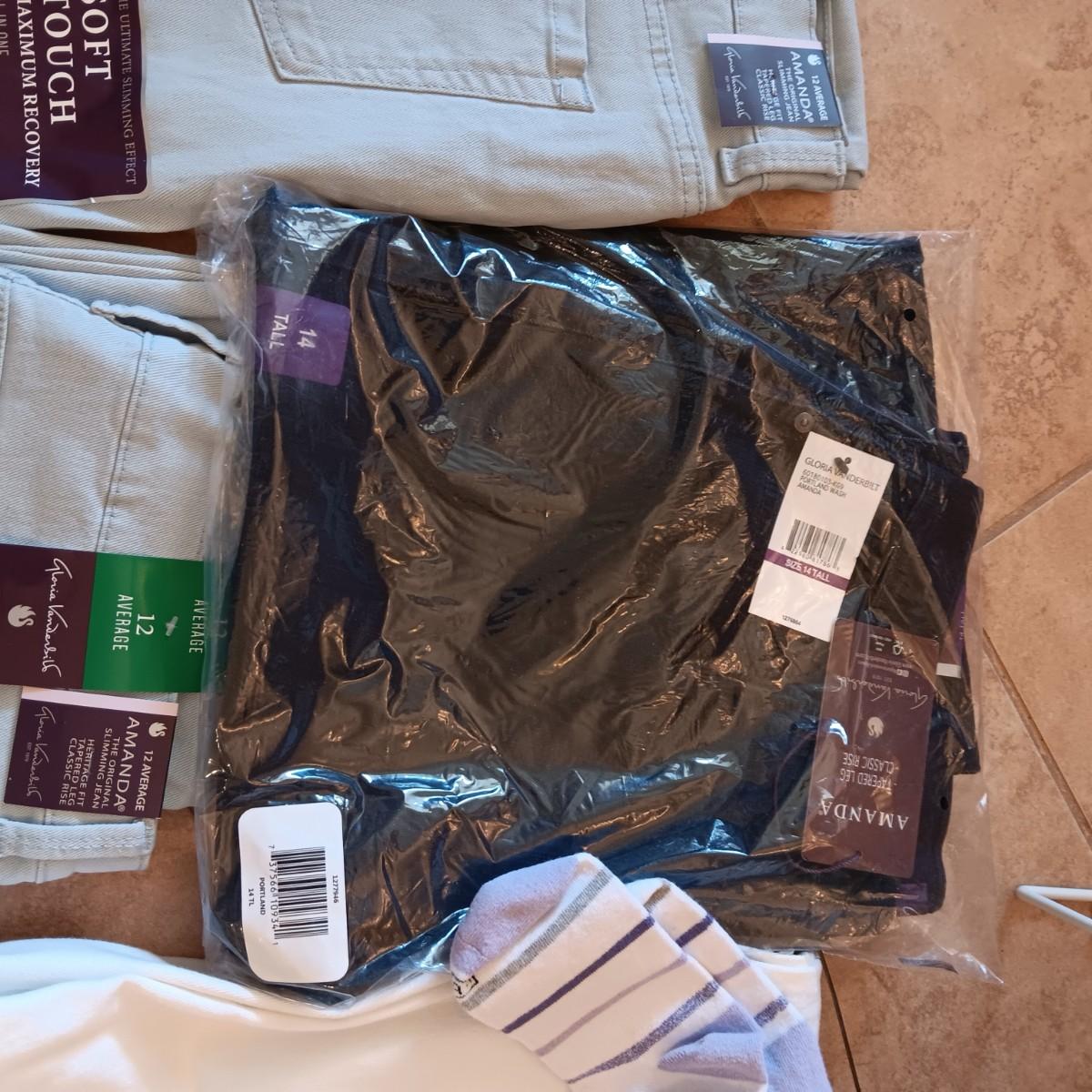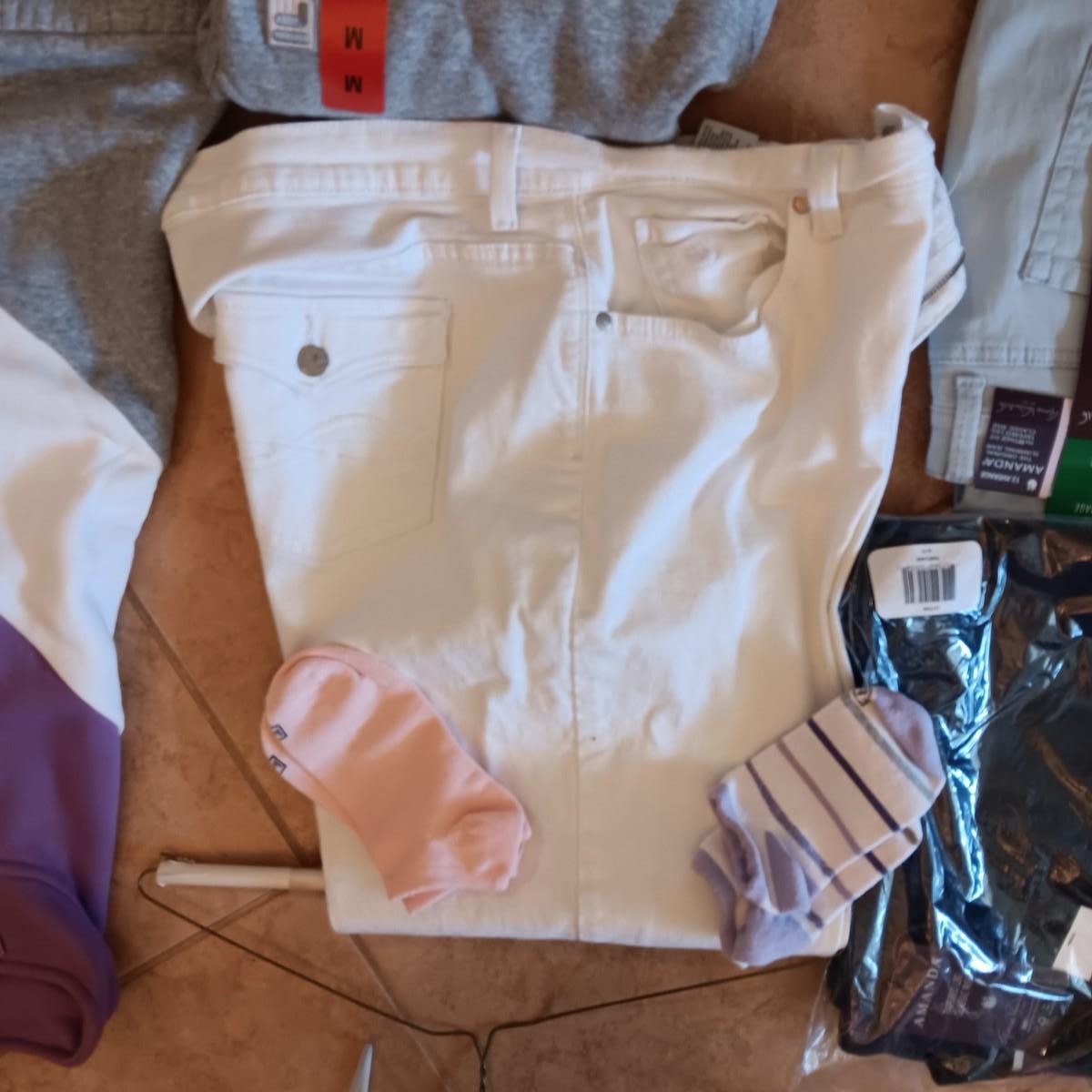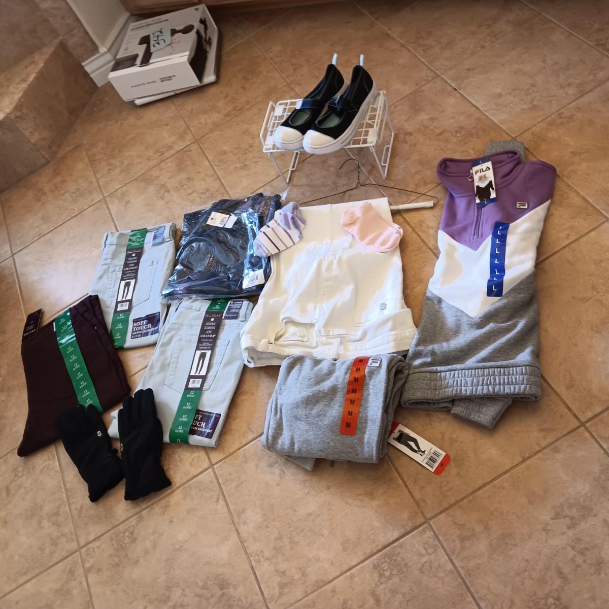 LADIES NEW PANTS SIZE 12 & 14, NEW SWEATSHIRT (L) SWEATPANTS (M) AND SIZE 8 NIKE SHOES