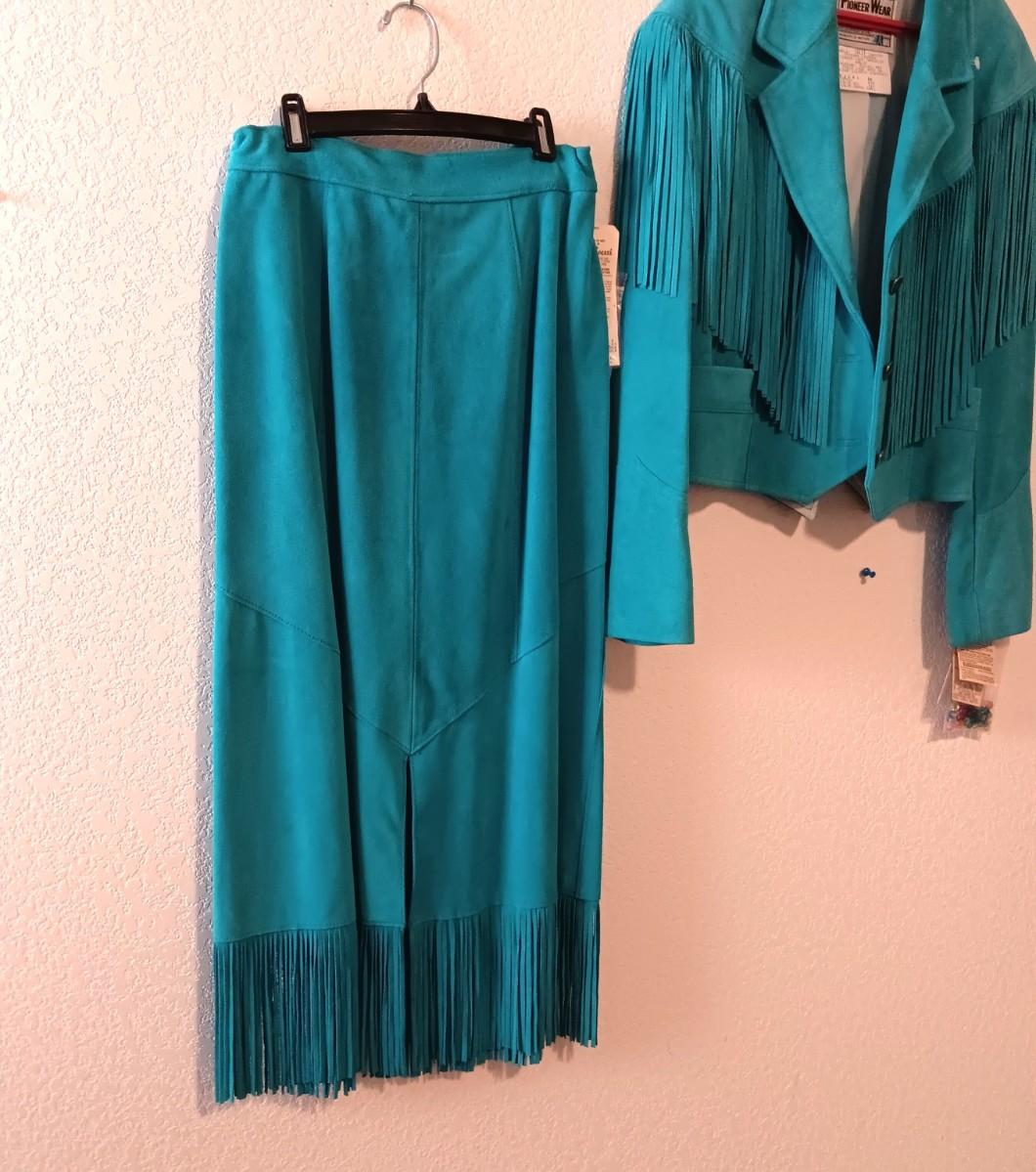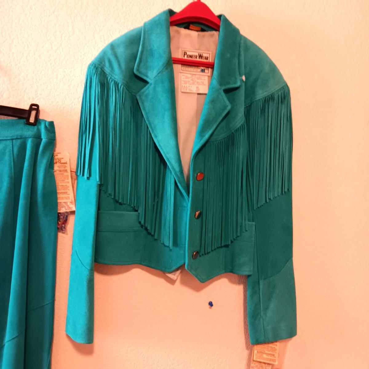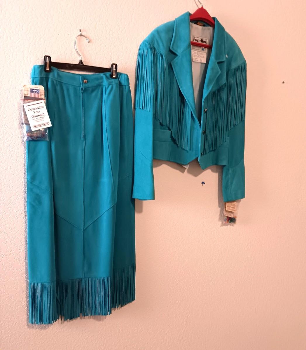 LADIES NEW SUEDE PIONEER WEAR 2 PIECE SKIRT AND JACKET SIZE 14