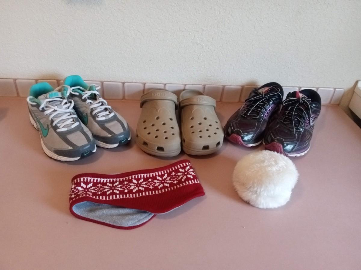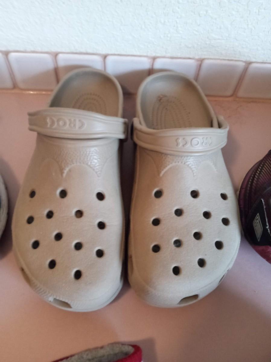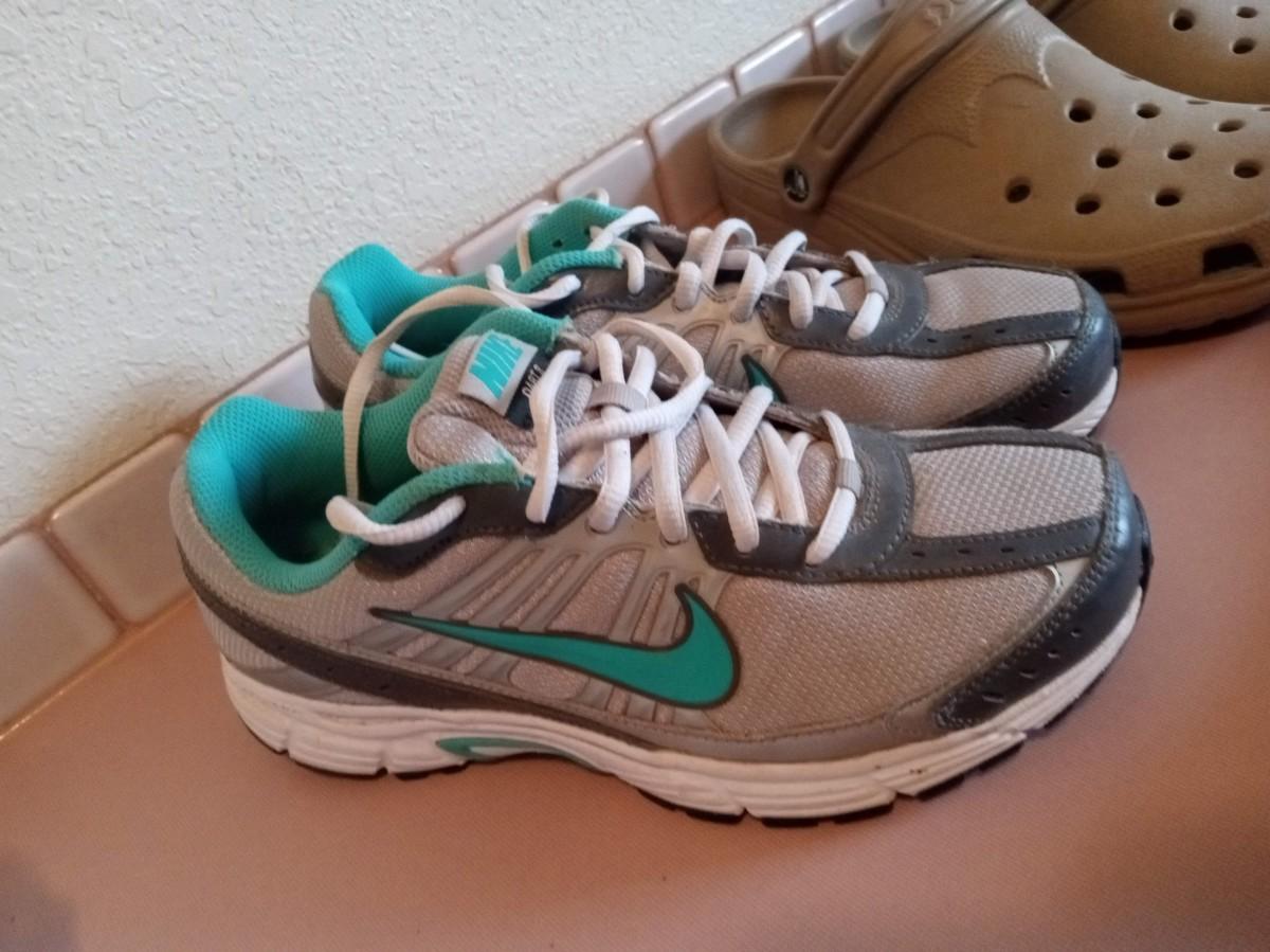 NIKE'S ARE SIZE 8, BROOKS ARE 7.5, NO SIZE SEEN ON THE CROCS