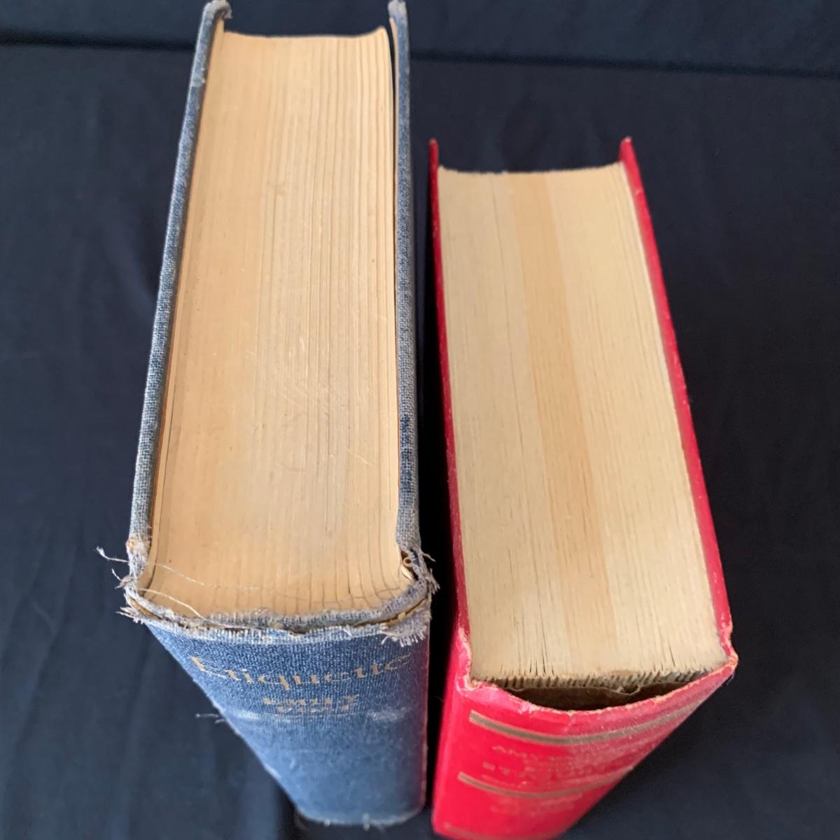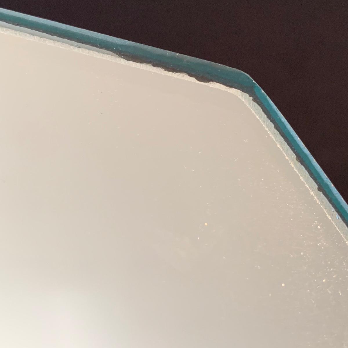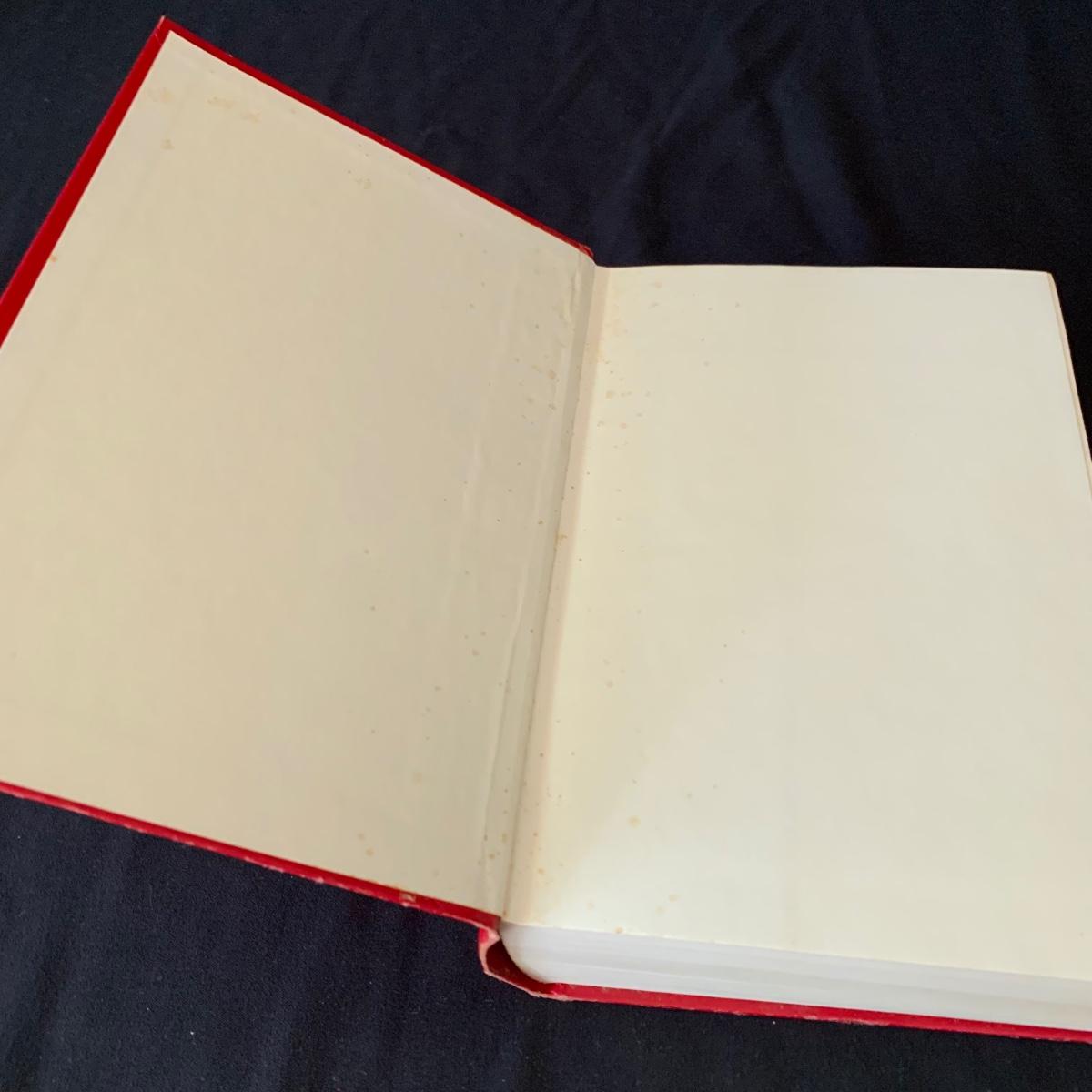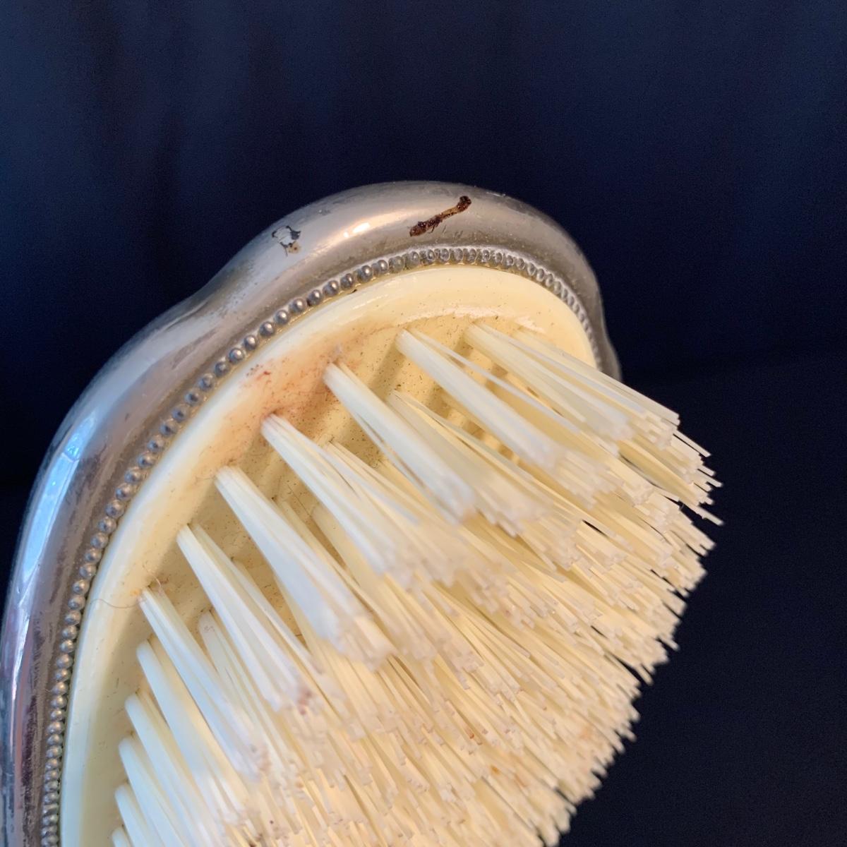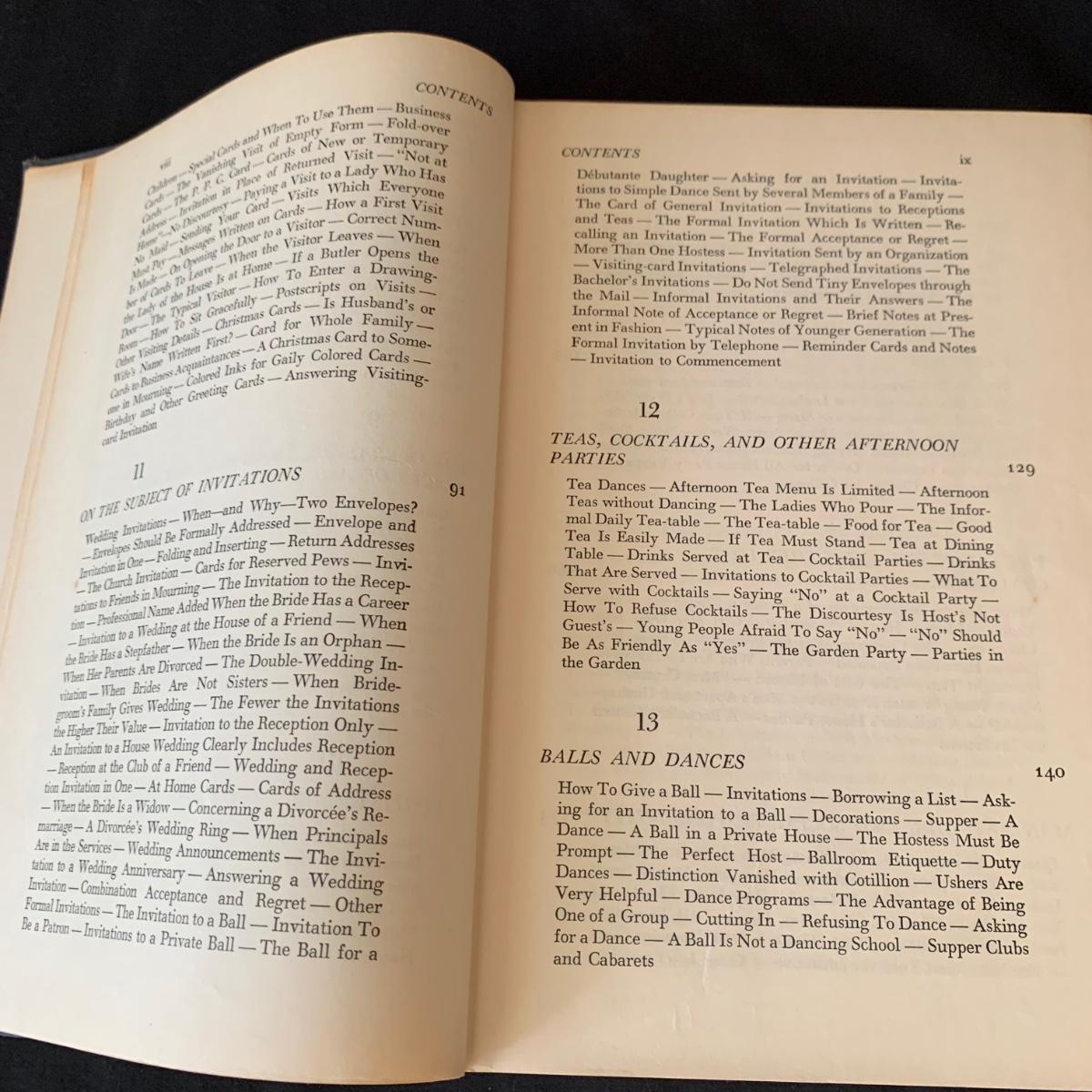 This lovely collection of items includes an octagonal tabletop display mirror from the Carolina Mirror Corporation, as well as a set of silver-toned metal accessories, a smaller round ornate table mirror, a golden trinket box, a hexagonal glass box, and two vintage etiquette books. The tabletop mirror measures 16” x 14” and has a flat, non-beveled edge. It is in good condition with just a small amount of wear on a corner. The glass powder jar has a sticker inside that says the lid is silver-plated. The small round golden-framed tabletop mirror is 5.5”D. It has some cleanable marks on the mirror surface. The hexagonal glass box has beveled glass panels and metal joints. There’s a small chip in the glass near the hinge. The books are a bit used, and their vintage feel fits in nicely with the theme. Shipping available.