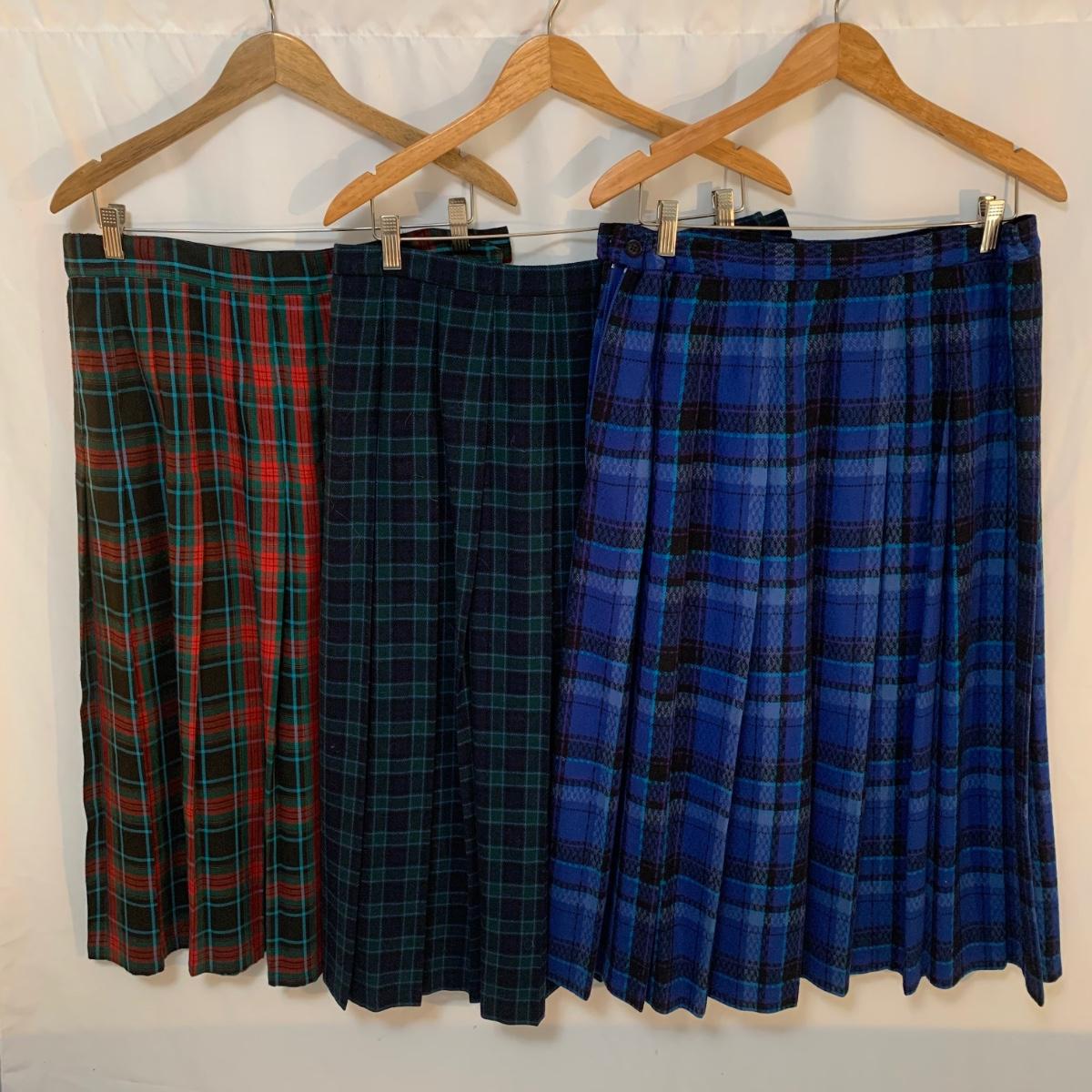 Skirts feature beautiful high end wool with lovey plaid patterns, they appear to be in good condition. See photos for more details.