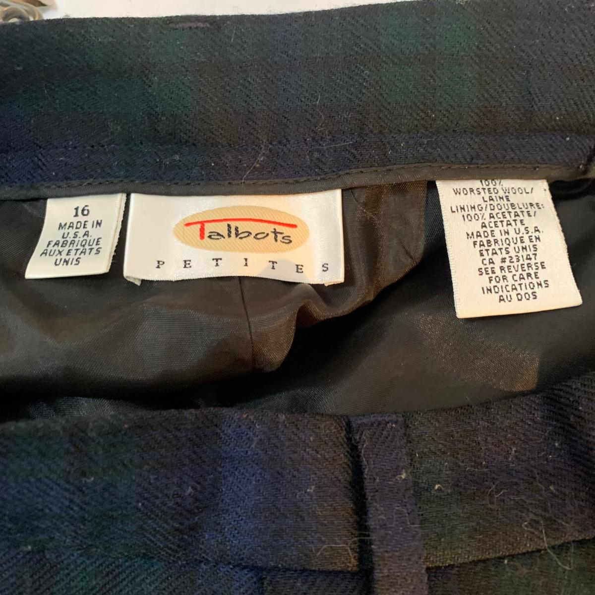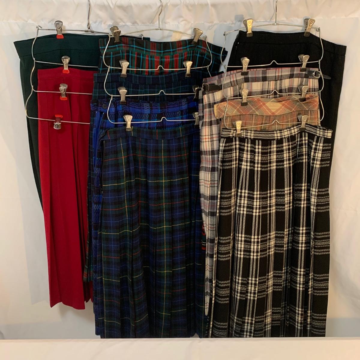 Lot includes ten women’s wool skirts and eight pairs of women’s dress pants. Brands include, Pendleton 100% Wool, Tartan Wool, Deans of Scotland, Koret of California and more. Sizes 14-18. Women’s pants include brands Talbots, Norm Thompson, and more. Sizes range from 12P-16.