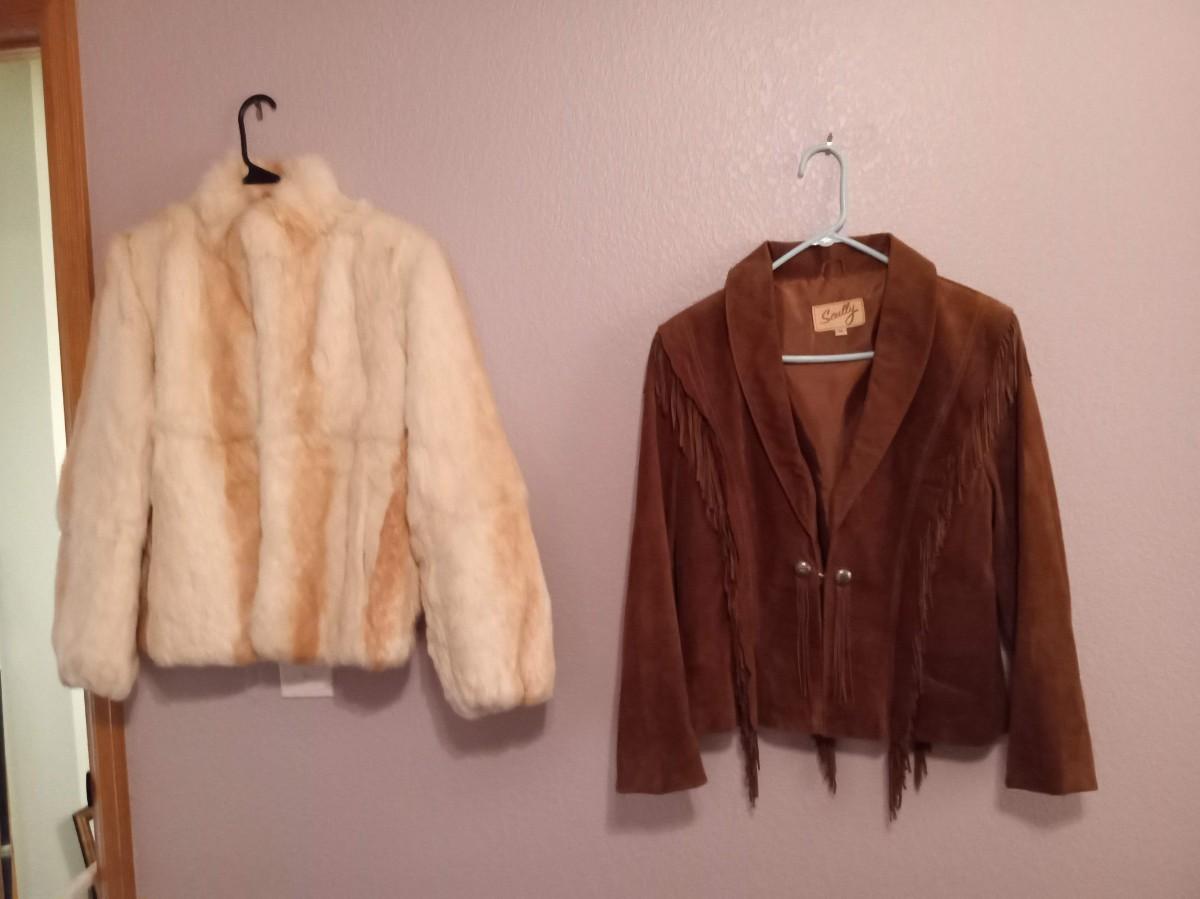 LADIES RABBIT SIZE MED AND LEATHER XL JACKETS