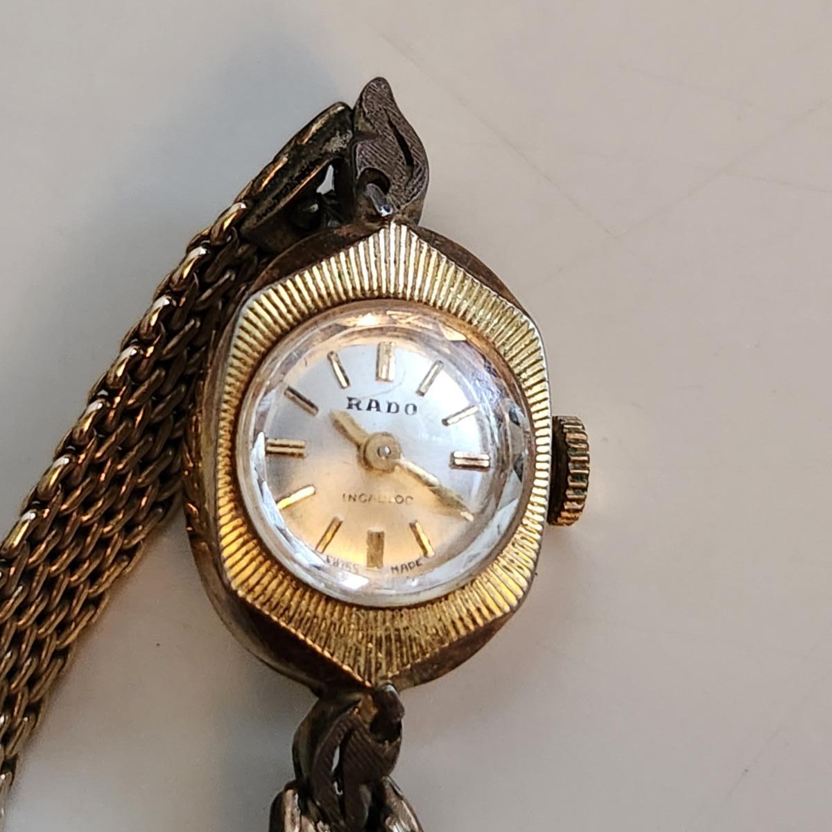 This auction lot is for a Ladies Rado Gold Watch. The watch is marked 10KGF. The very pretty watch band to which it is attached is marked Speidel and also marked 10KGF. Rado watches are Swiss made - the watch is not running at this time. This watch is marked Incabloc. For many collectors and horological enthusiasts alike, the presence of an Incabloc system in a watch is indicative of quality. This shows that the watchmaker has taken some precautionary methods to protect the movement against shocks, which allows the watch to properly function for many years to come.