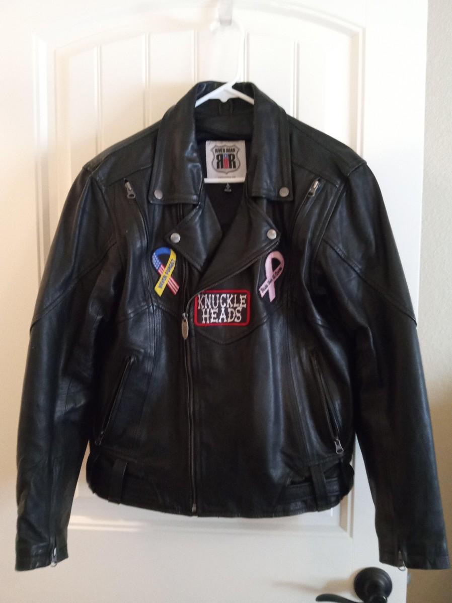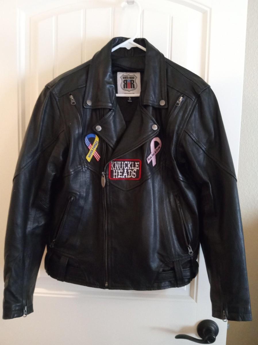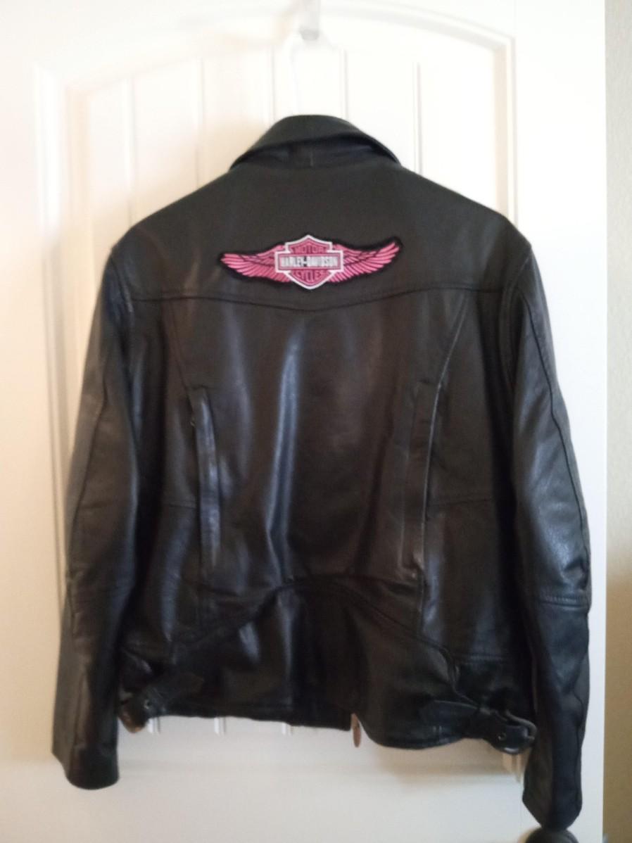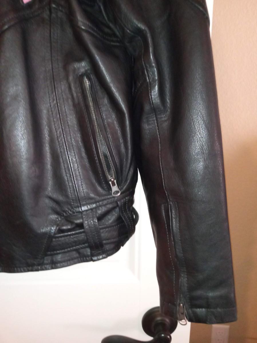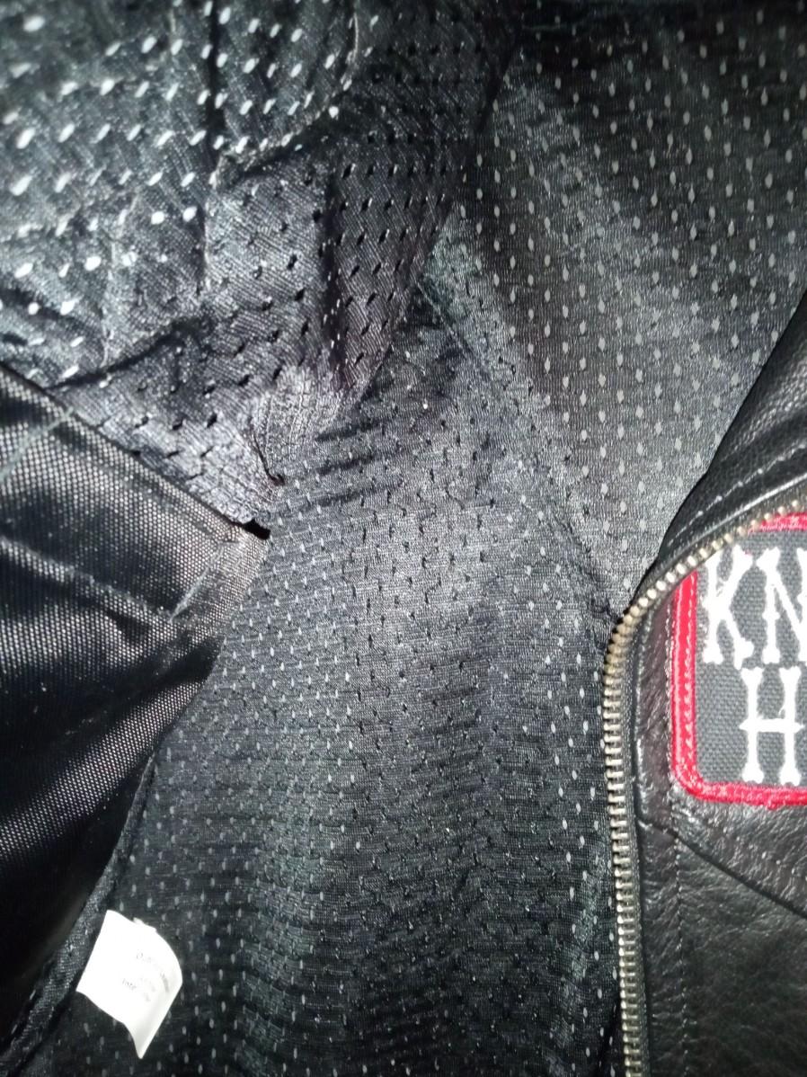 SIZE LARGE, THERE IS A PADDED PLATE IN THE BACK OF THE JACKET, IT ALSO HAS A PINK REMOVABLE LINER