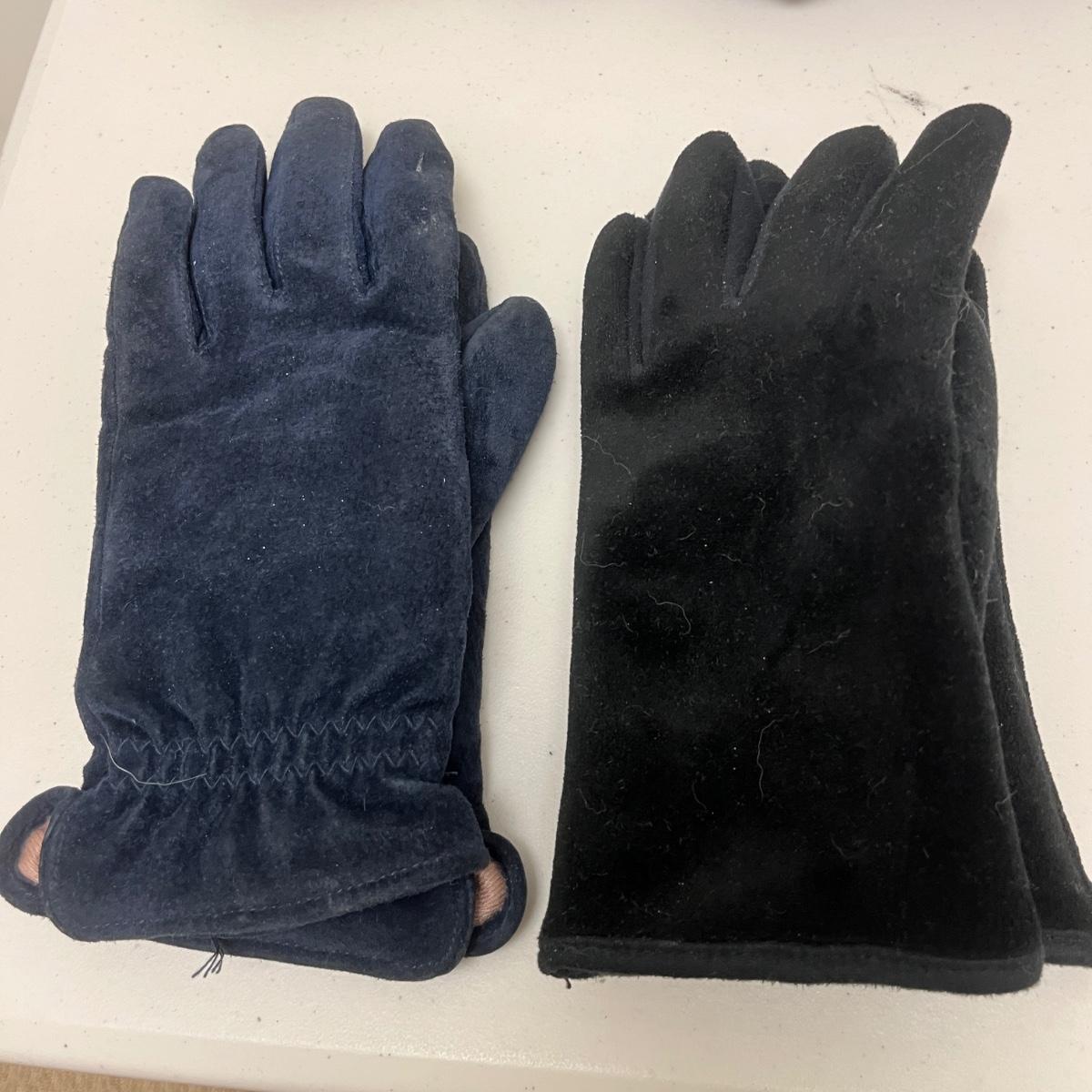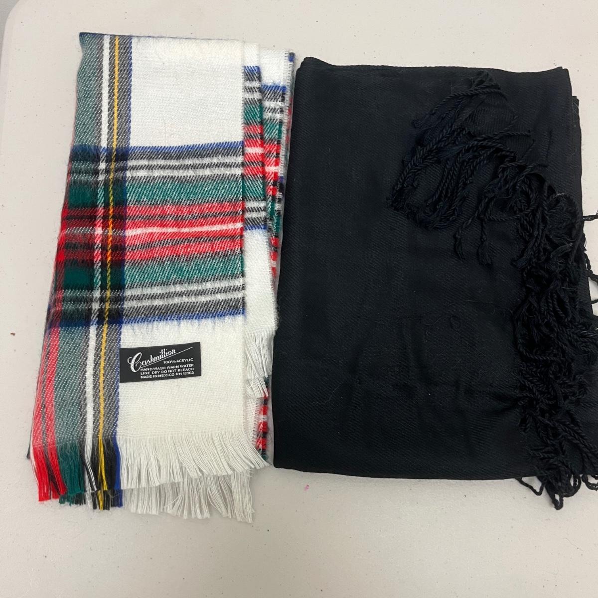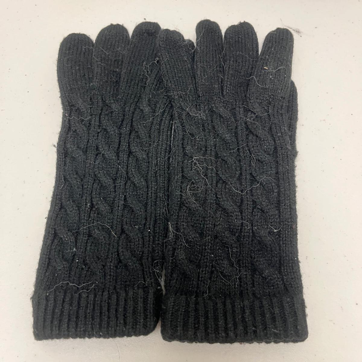 Lot includes ladies leather gloves, fabric gloves, mittens, woven hat size large, small duffel bag, two winter hats, two purses and over 10 scarves. Largest scarf measures 38” x 72”.
