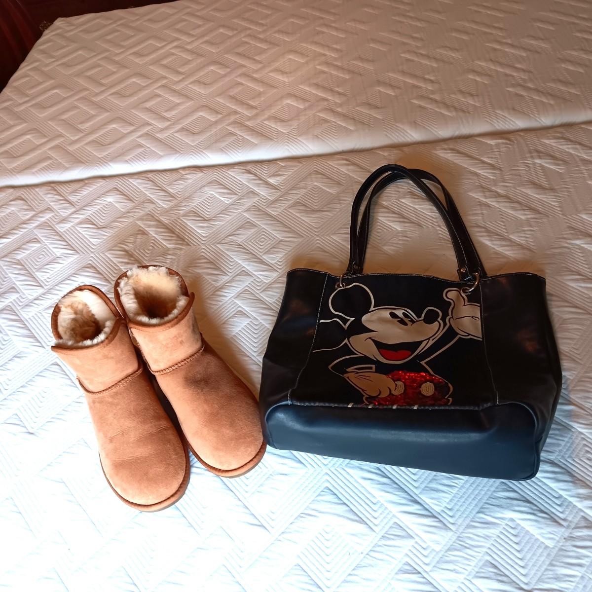LADIES SHORT BOOTS (8) AND A DISNEY MICKEY MOUSE BAG