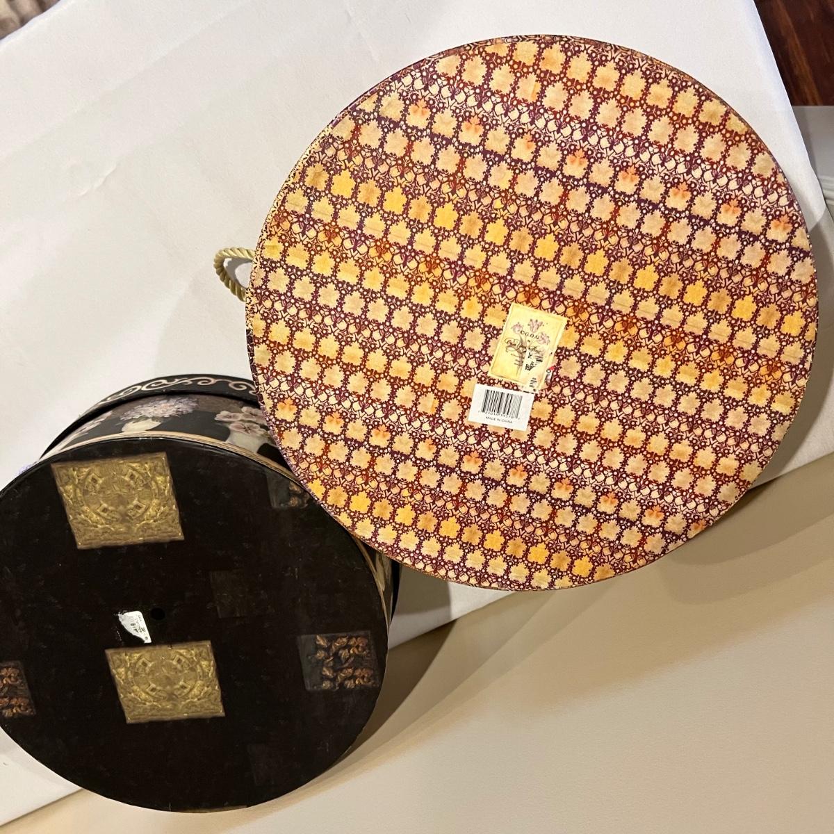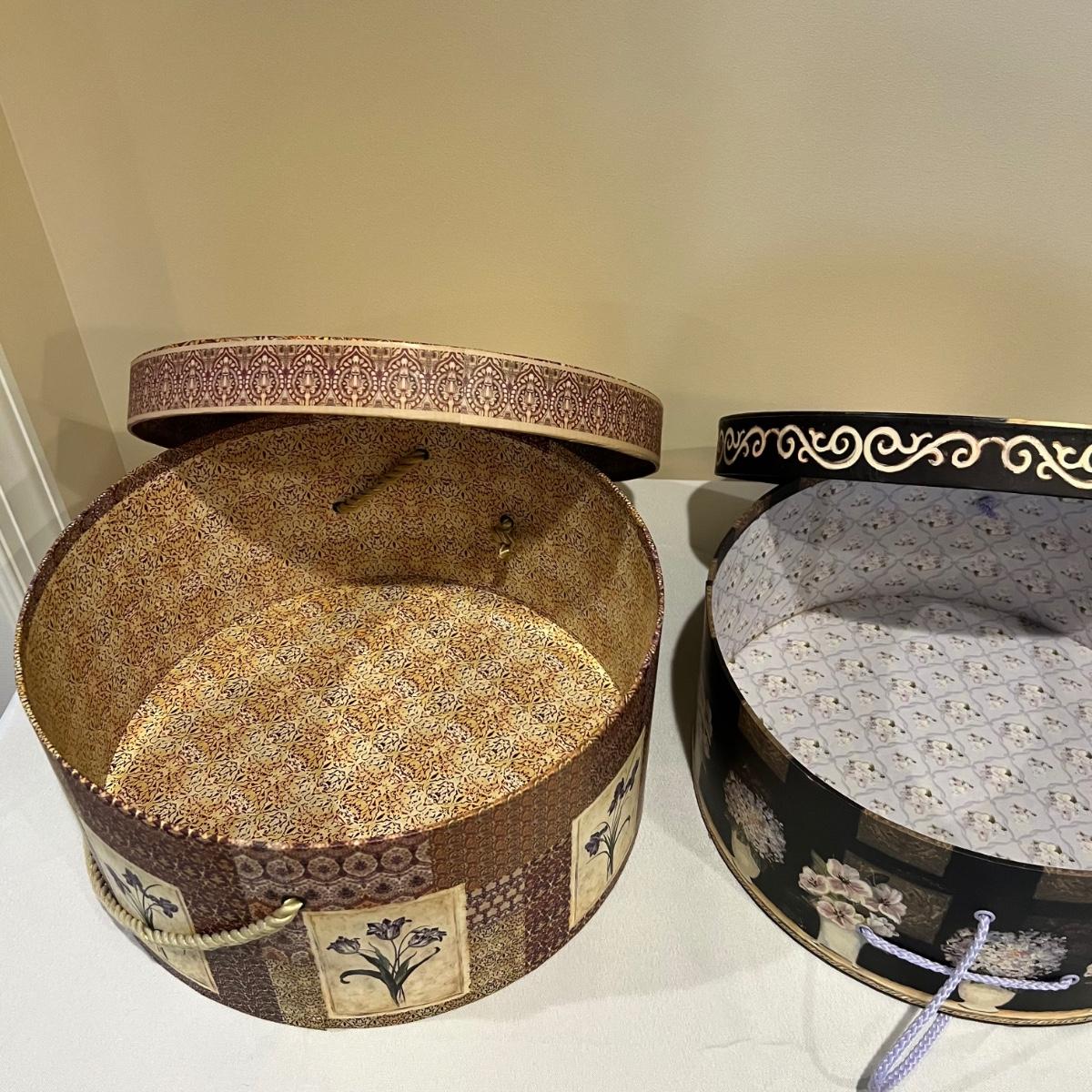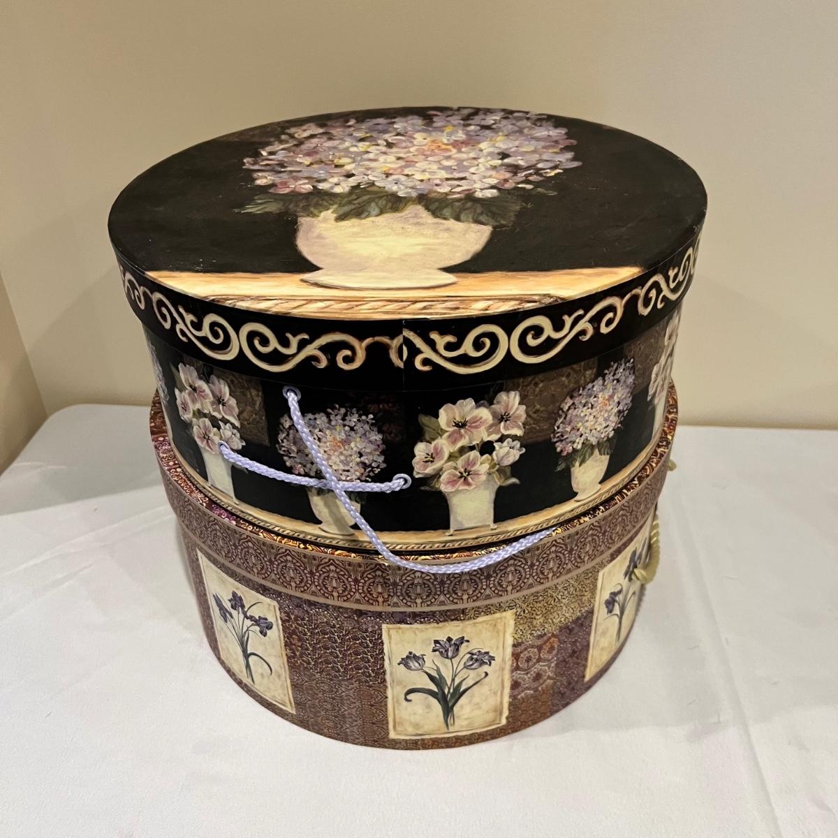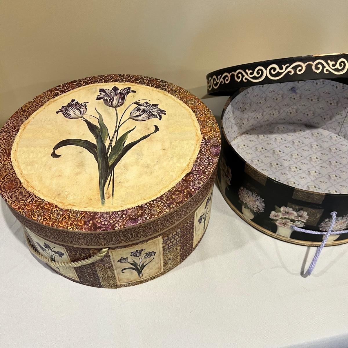 Five summer hats all appear to be size 7.5. Also included are two hatboxes.