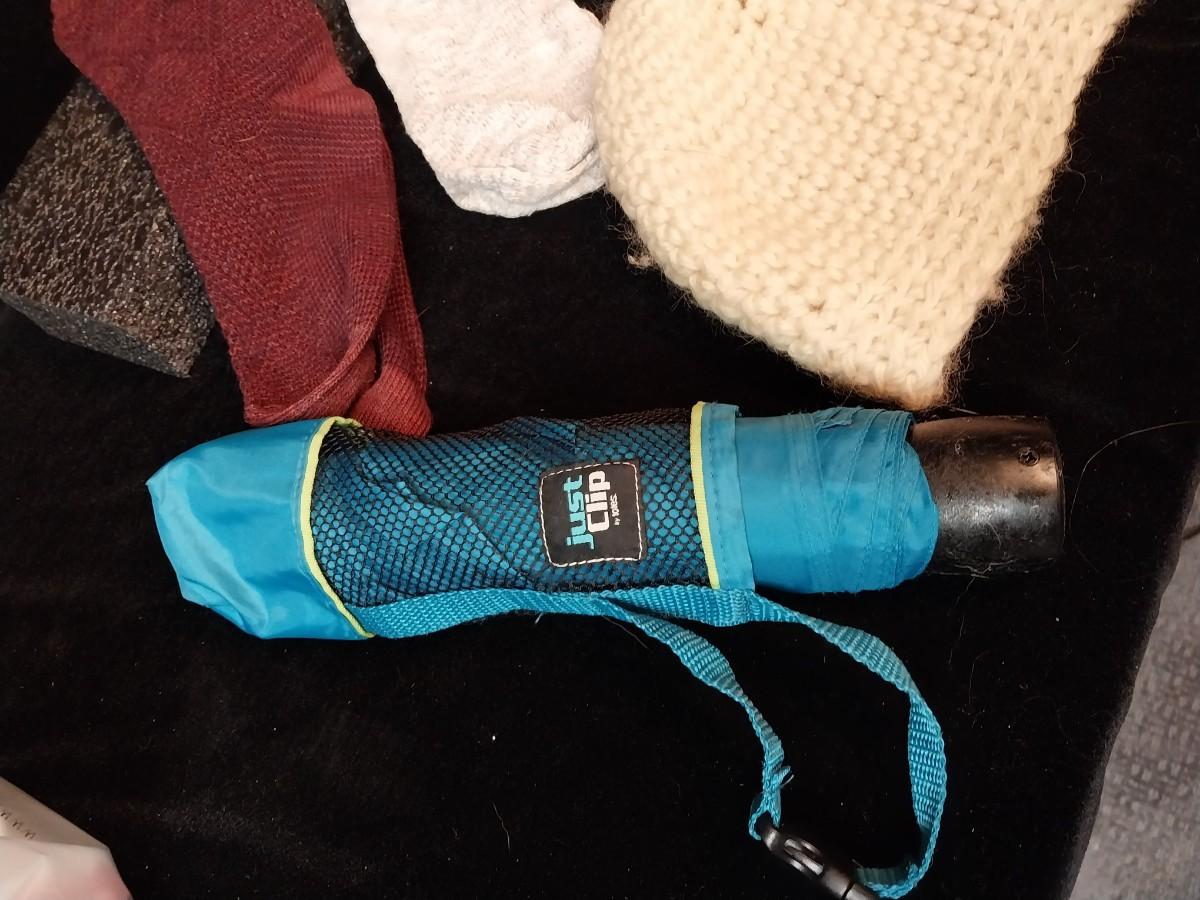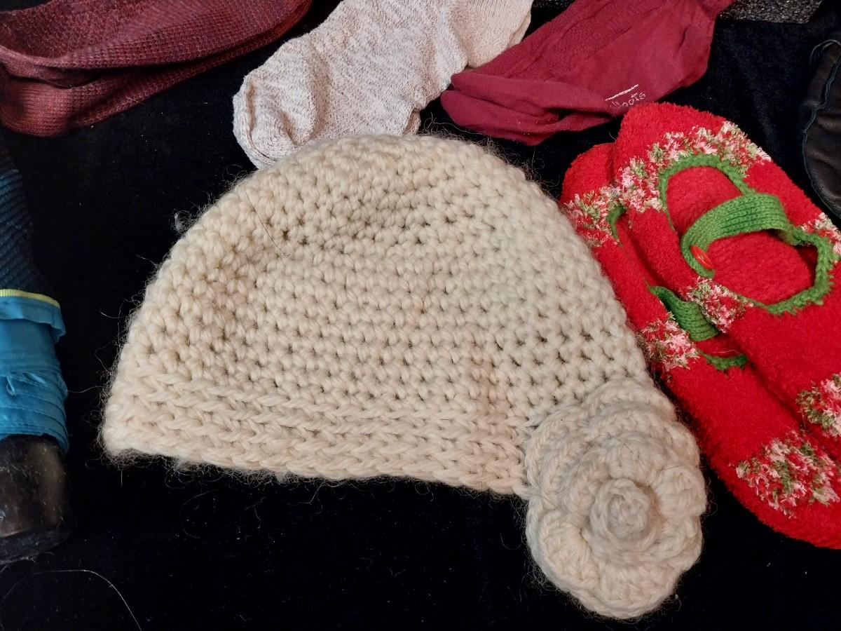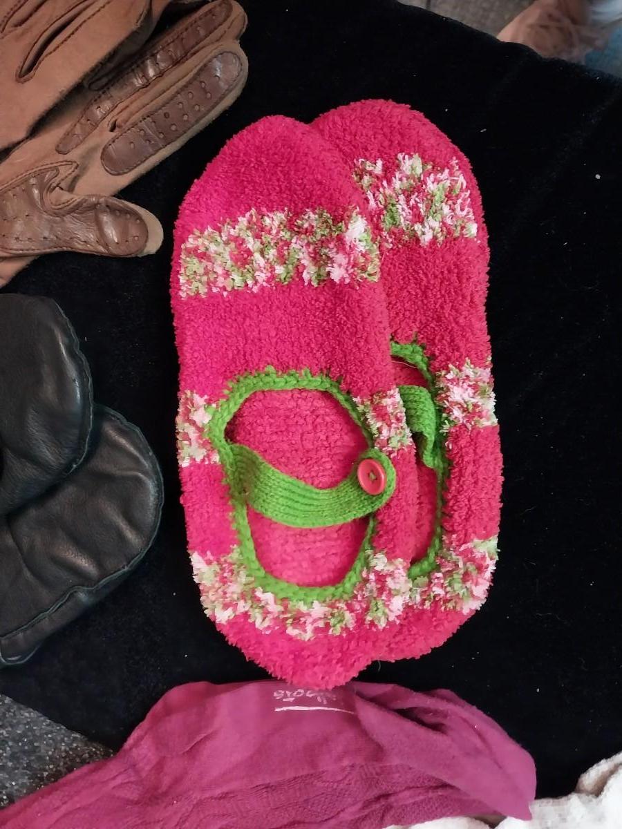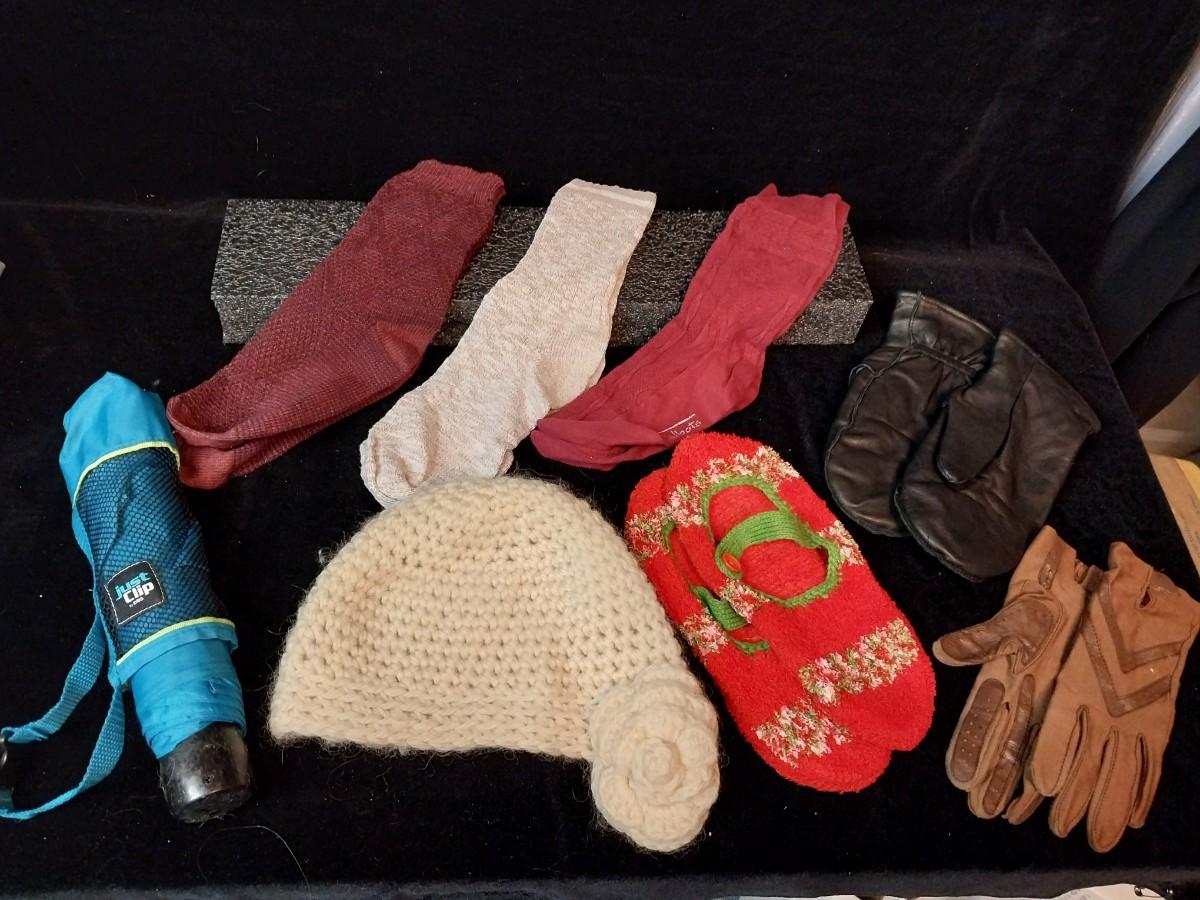 LADIES SOCKS, KNIT HAT, GLOVES, SLIPPERS AND UMBRELLA