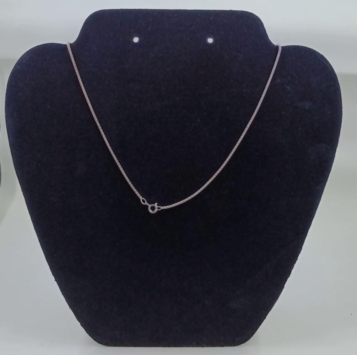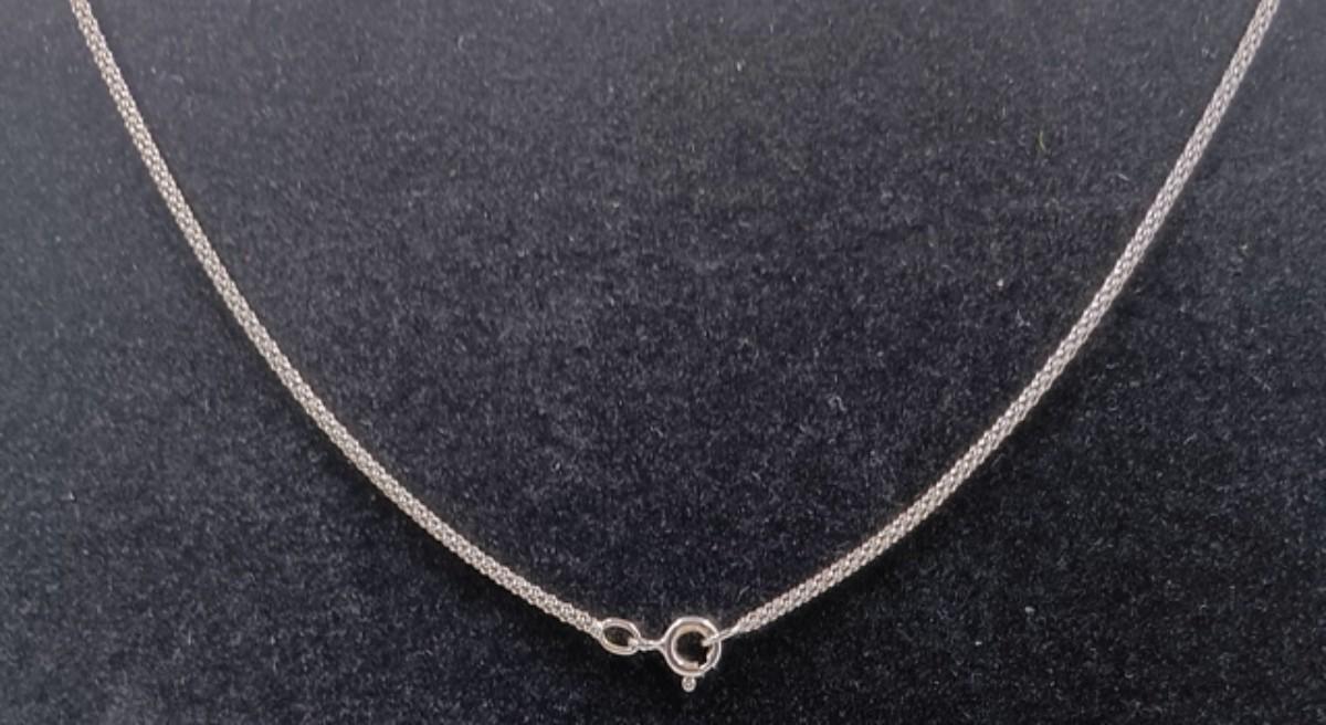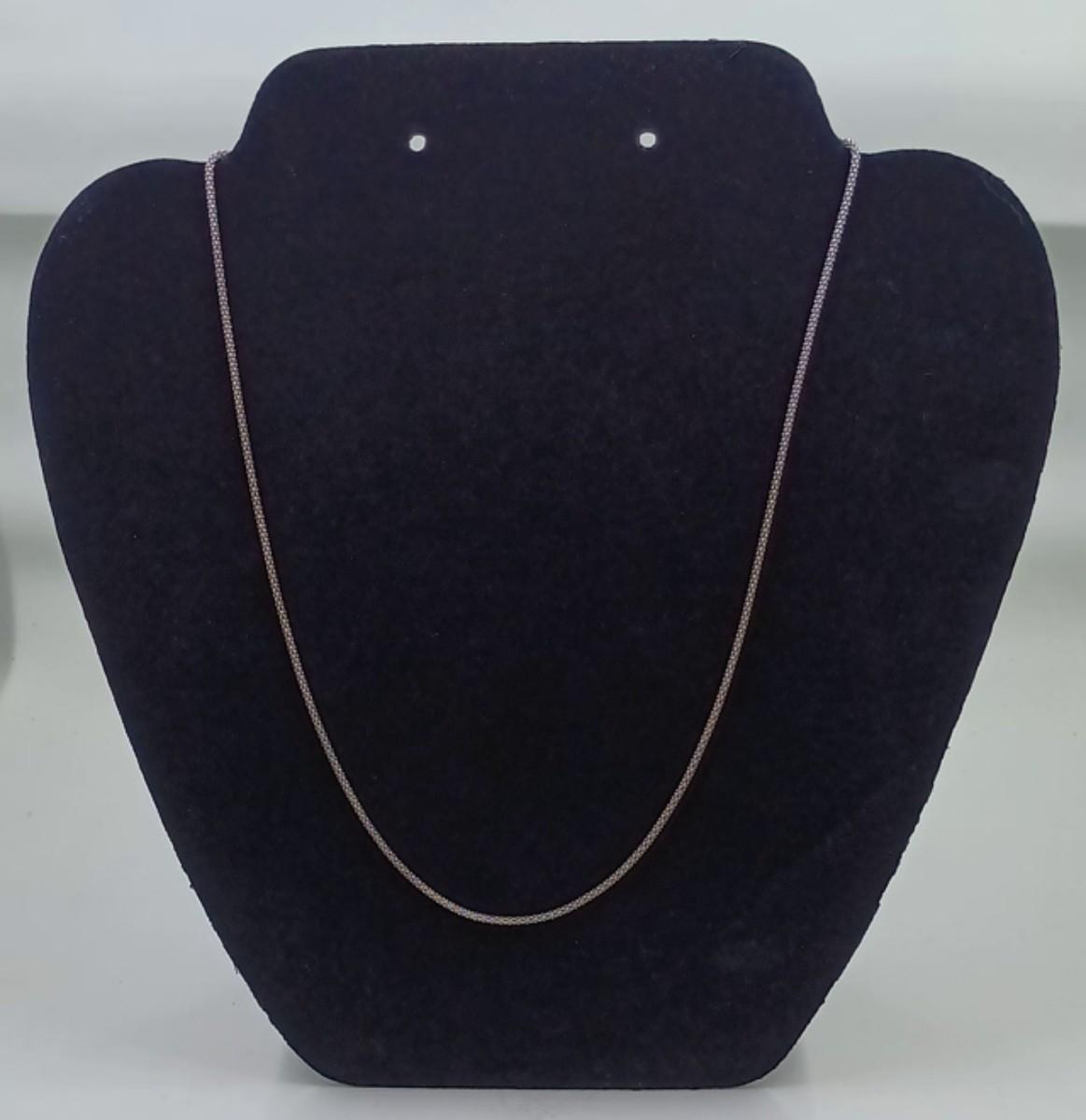 This ladies sterling silver necklace is marked 925 and measures approximately 18" long.