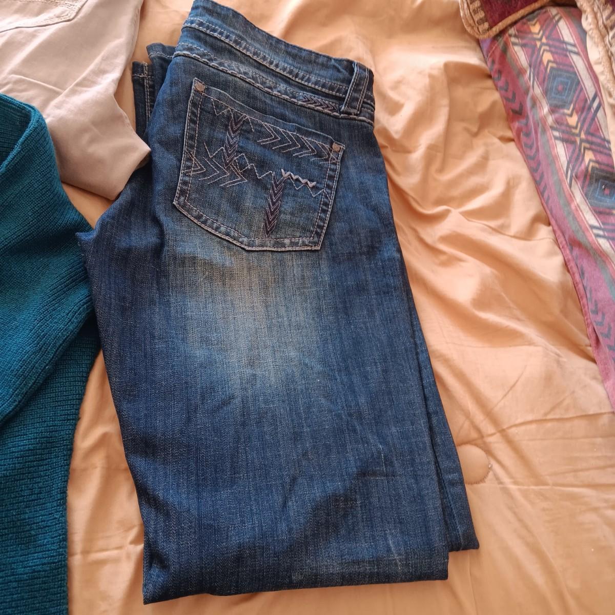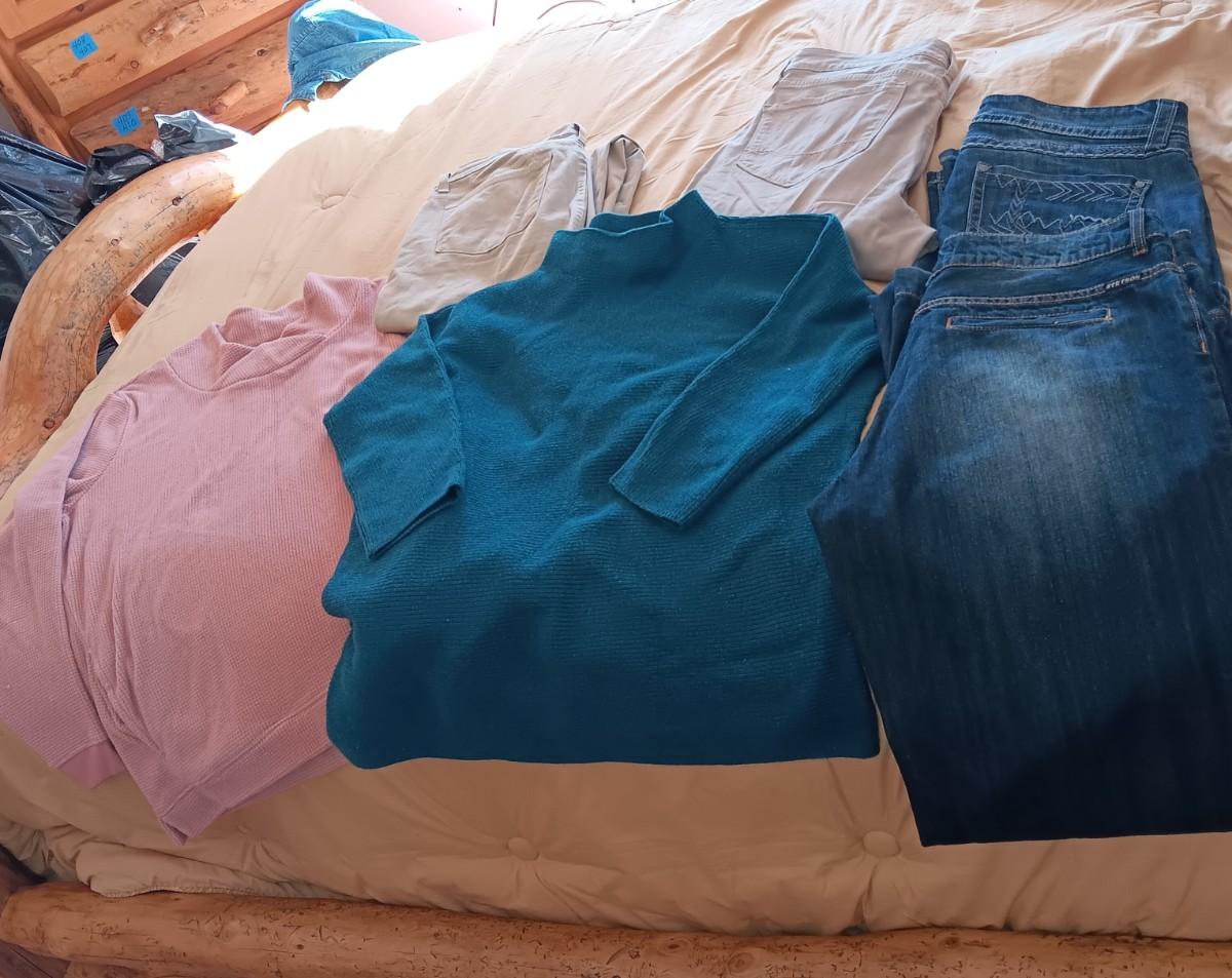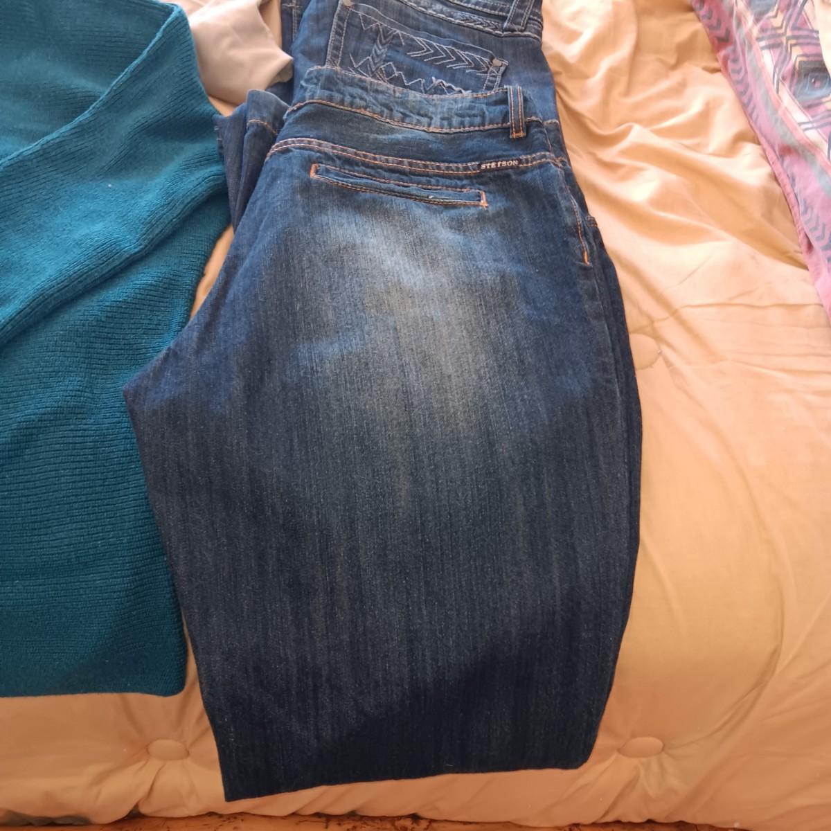 LADIES STETSON JEANS AND PANTS (14), 2 LARGE SHIRTS
