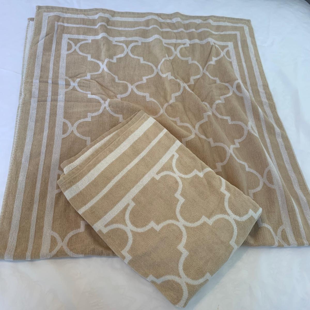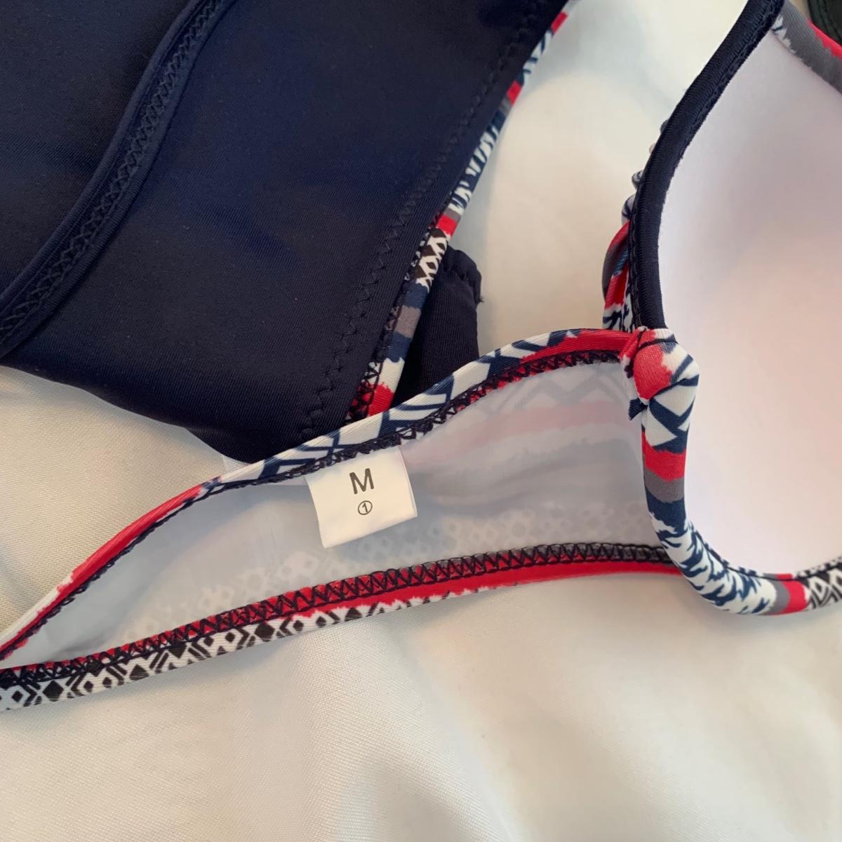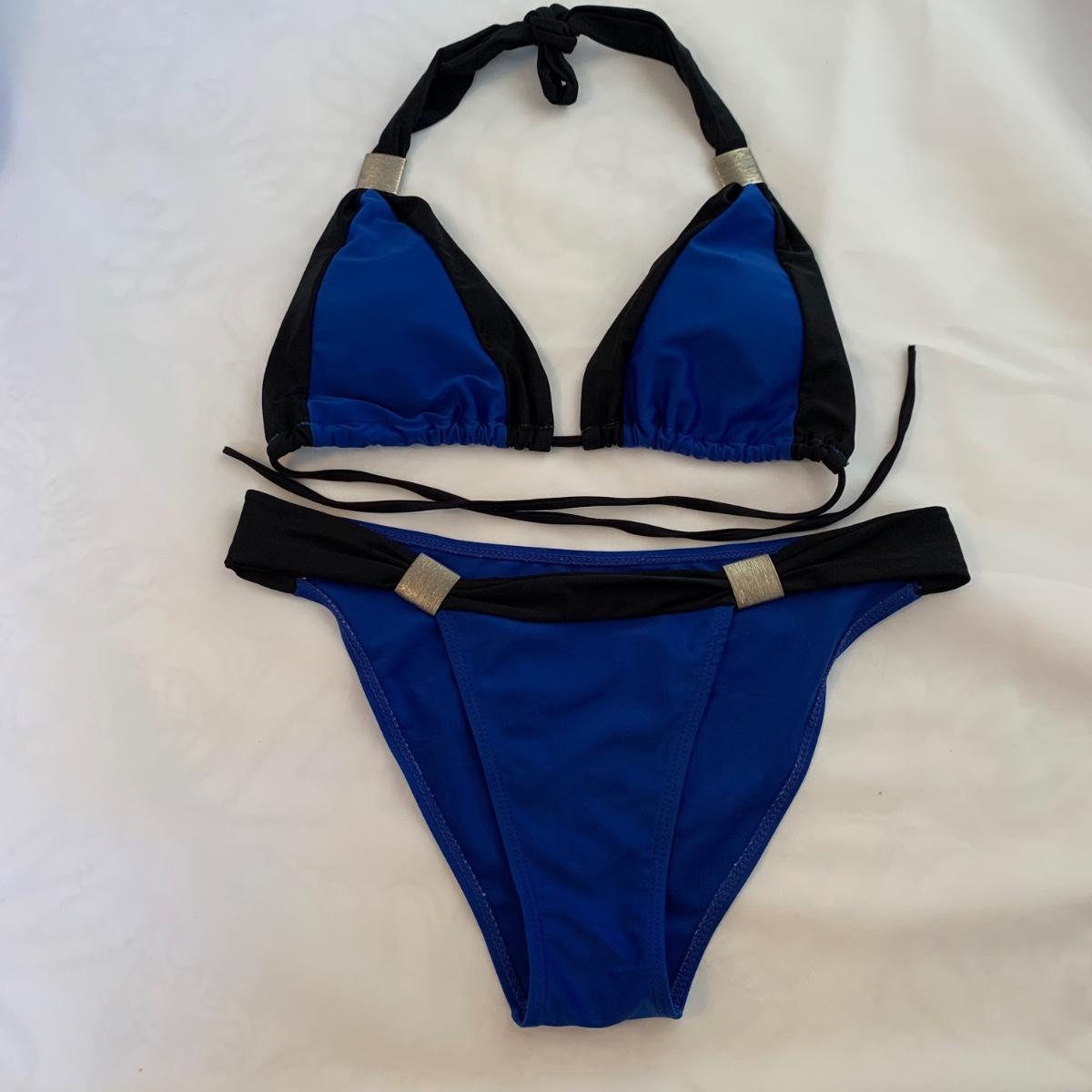 Nine ladies swimsuits, mostly size S or M. There are four bikinis, two tankinis, and three one piece suits. Any tags found were photographed. Also included is a Lancôme bag and four beach towels. The striped towels are designed to hang over a beach chair. Shipping available. Shipping can be costly. We suggest contacting our preferred local shipping provider, Postage Express, with dimensions and getting an estimate before bidding: (828) 670-5501 or postageexpress@yahoo.com.